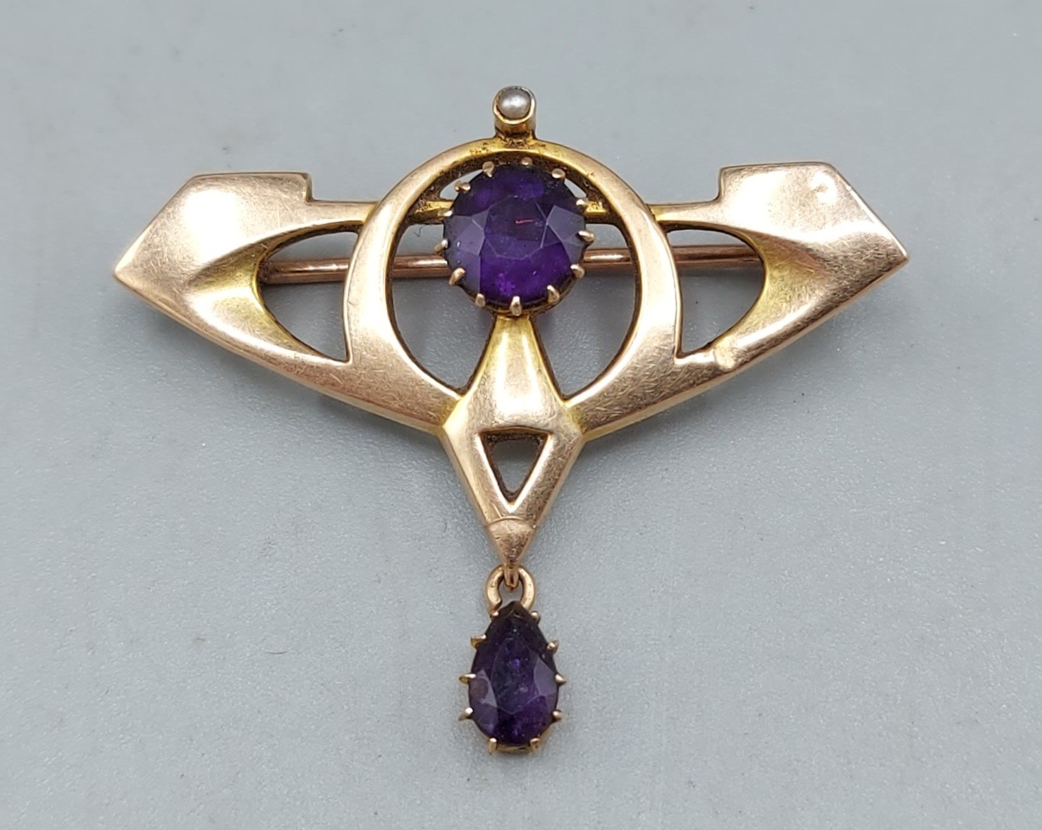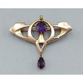 A 15ct gold Amethyst and Pearl set brooch, 2.4gms