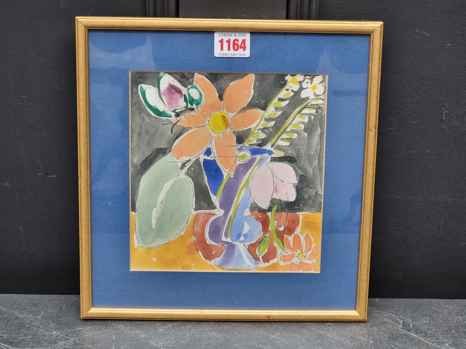 Duncan Grant, still life of flowers in a vase, initialled, pencil and watercolour, 18.5 x 17.5cm.