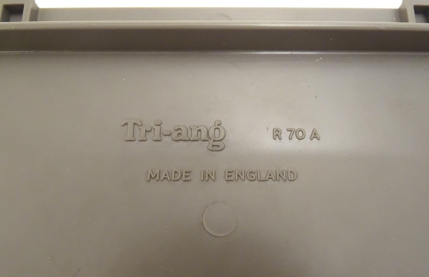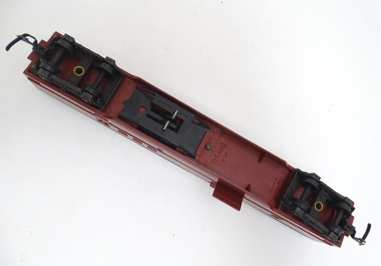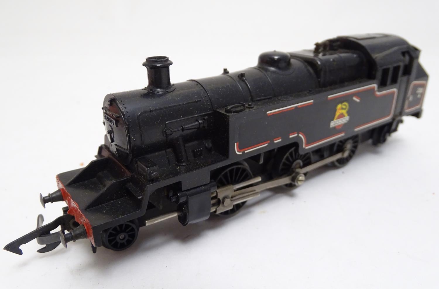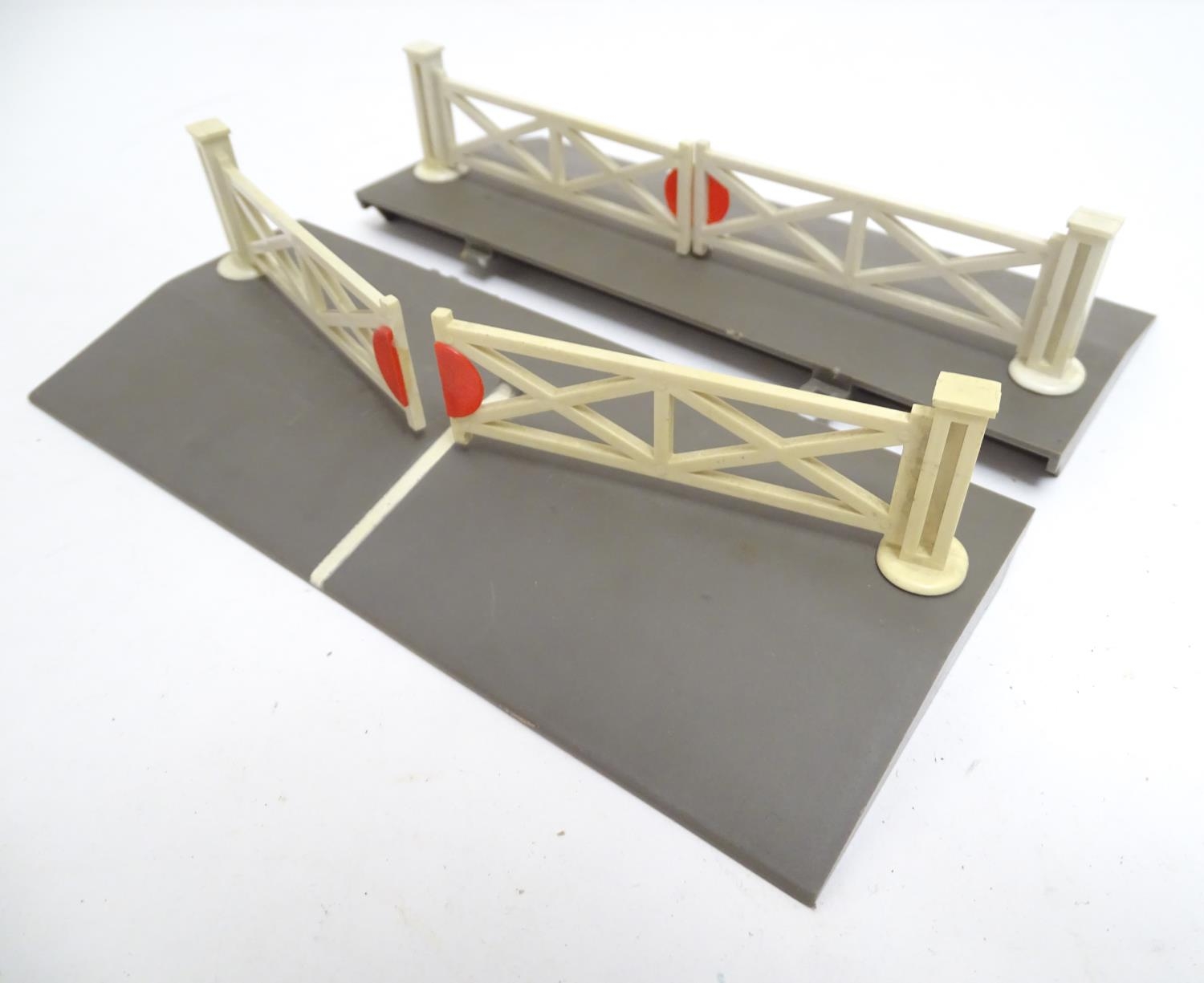 A trio of Triang Railways 00 gauge models, comprising an R59 2-6-2 Tank Loco black livery (boxed), R1109 Mail Express 3609 carriage, and R70 level crossing (boxed), with a spare box (4)