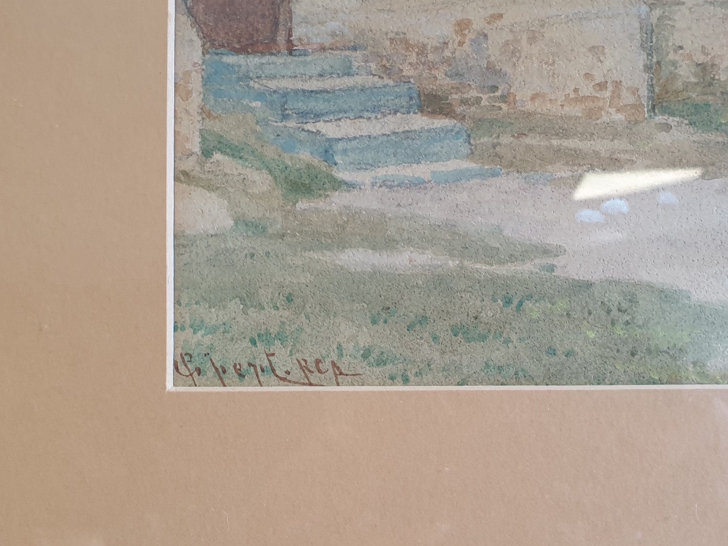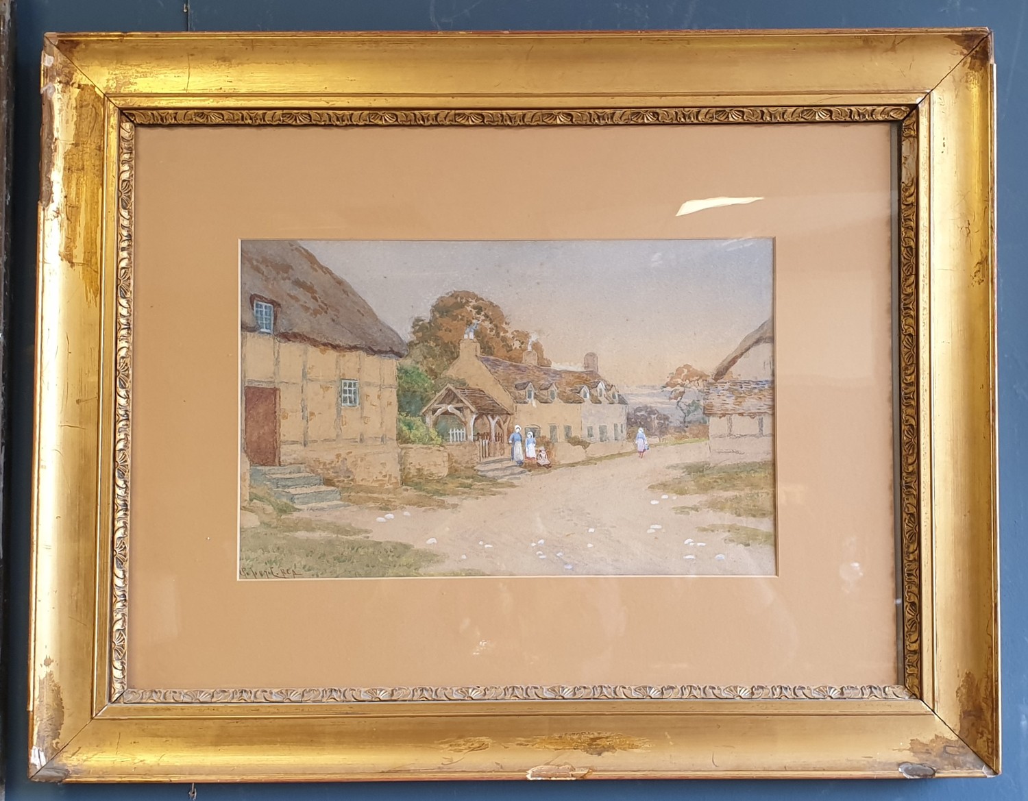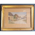Gilt Framed Watercolour - Village Scene. Signed Bottom Left. H:51 x W:66cm