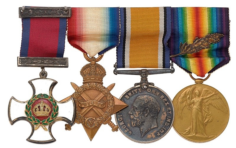 Awarded to Major David Robert Keir DSO. Comprising: Distinguished Service Order, 1914/15 Star, LIEUT D.R. KEIR R.HIGHRS, British War Medal, Victory Medal, MID Oak Leaf (Major). The group is accompanied by a quantity of research. Distinguished Service Order London Gazette 1st January 1919. MID London Gazette 28th December 1918, 9th July 1919 Major David Robert Keir DSO was a pre war Territorial soldier and in 1913 was commissioned from the Ranks into the Black Watch Royal Highlanders, serving with the 7th (Fife) Battalion. He landed in France on the 1st May 1915. On the 30th July 1916 at High Wood he was wounded with gunshot wounds to the right forearm and face. He later returned to his unit and was wounded for a second time at La Corbie on the 11th April 1918, at this time with the rank of Acting Major and second in Command of the Battalion. Surviving the war, he remained with the Battalion and resigned his commission on the 9th January 1923 with the rank of Major after serving 22 years with the Black Watch.