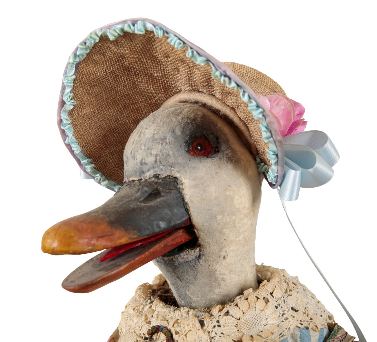A CONTINENTAL CARVED AND POLYCHROME PAINTED 'DUCK' AUTOMATON