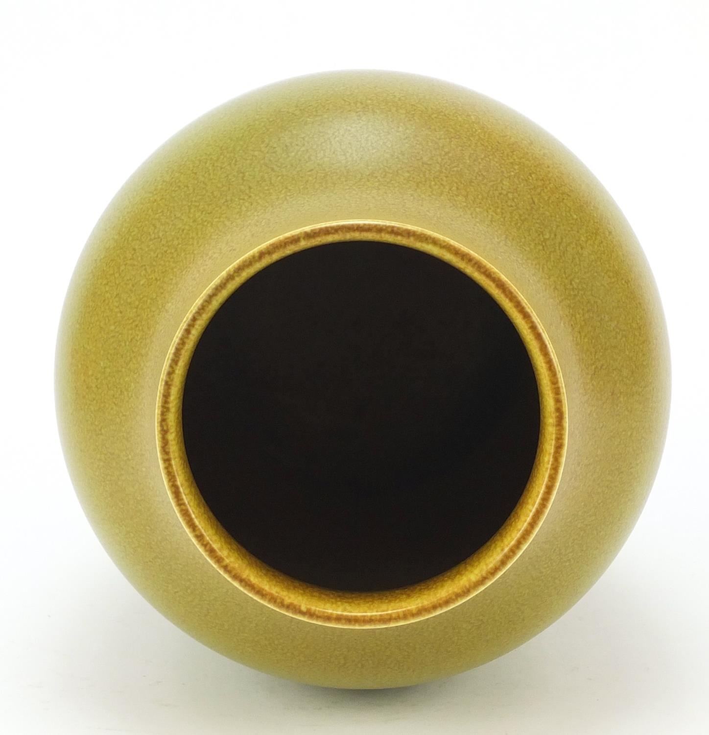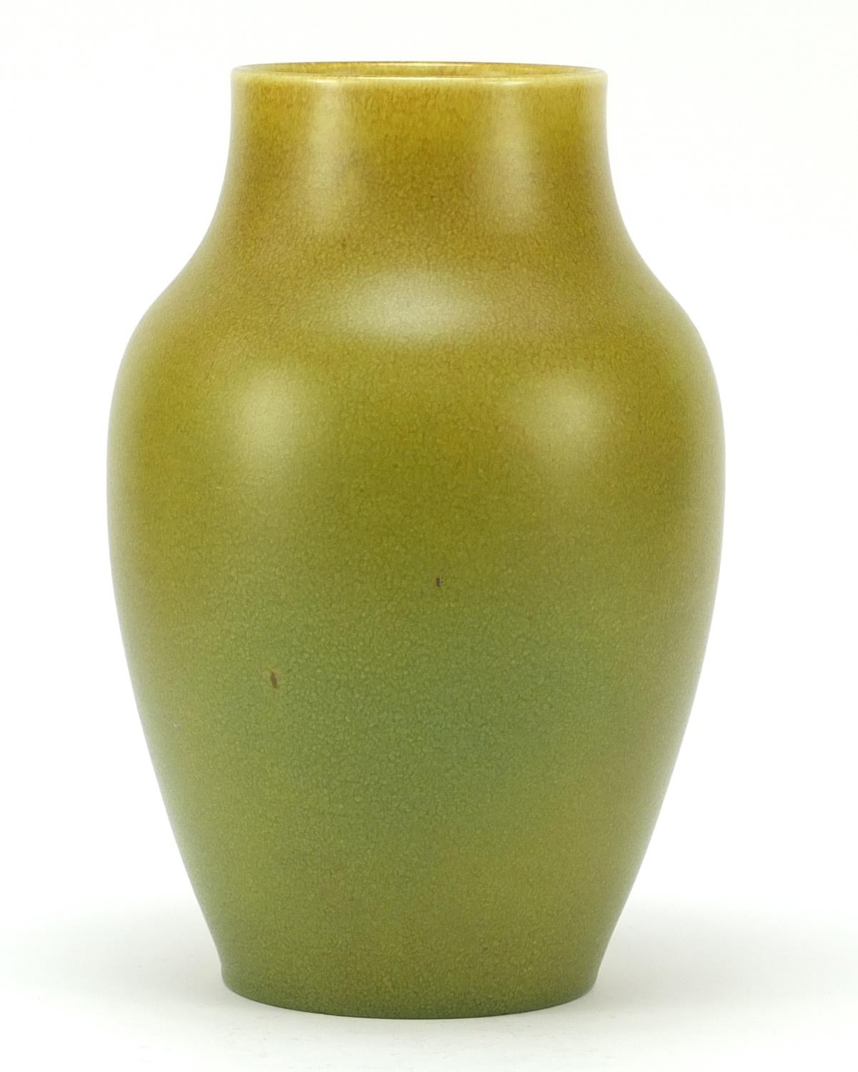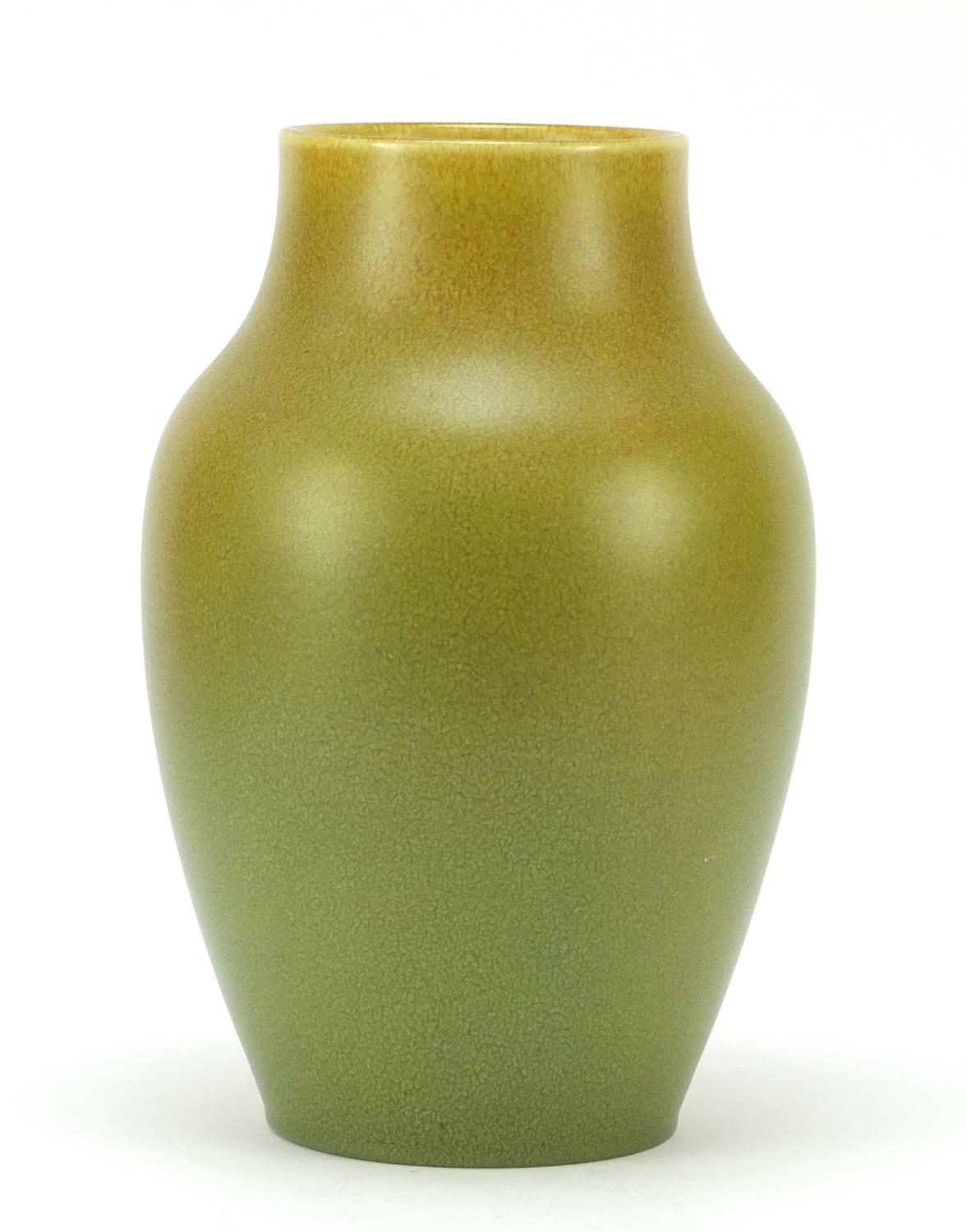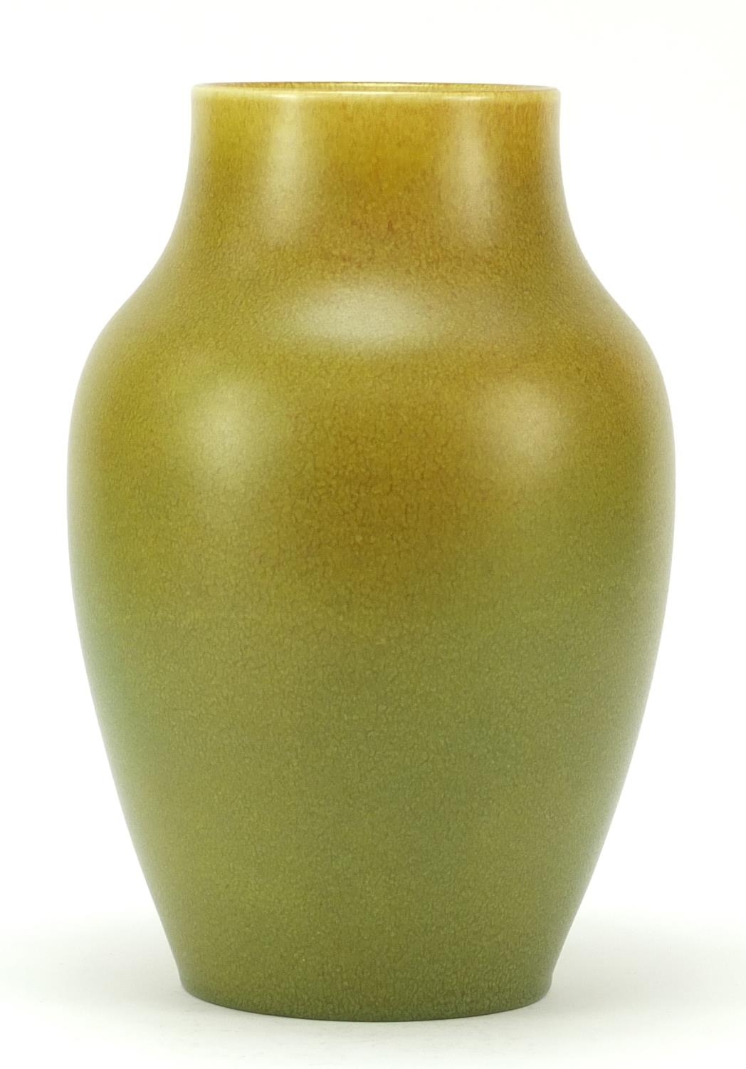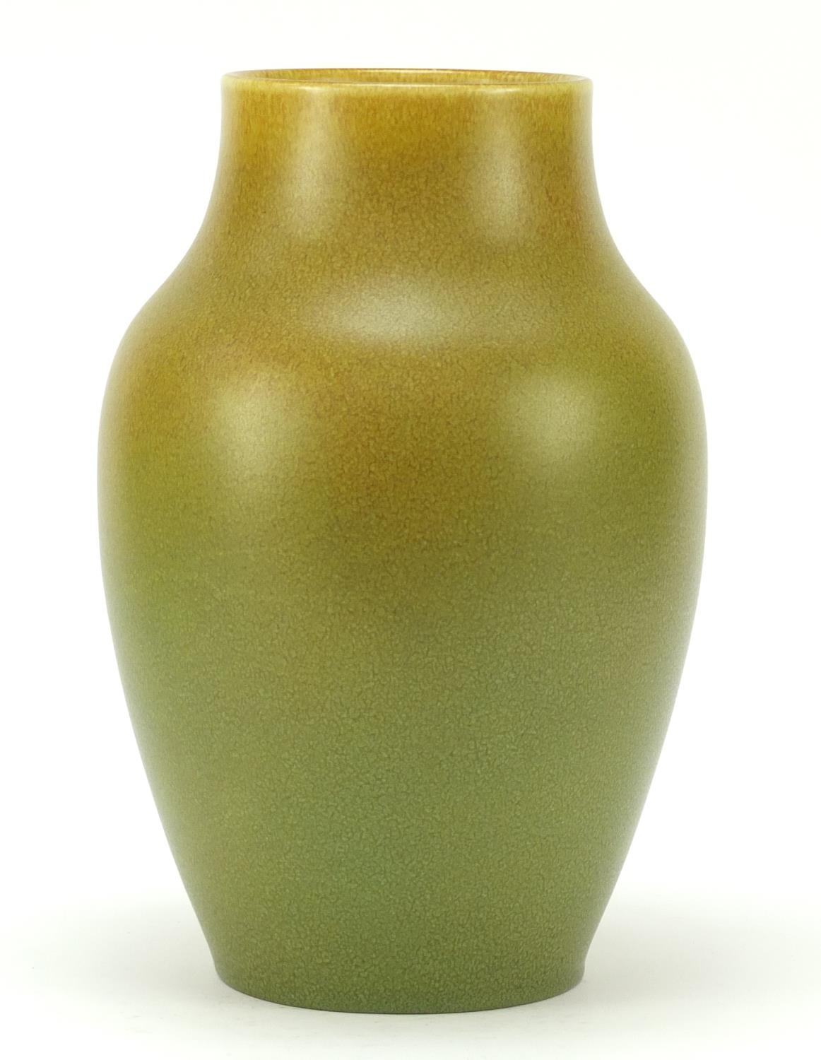 Large Pilkington's Royal Lancastrian pottery vase having a mottled yellow/green glaze, numbered 2085, 27cm high