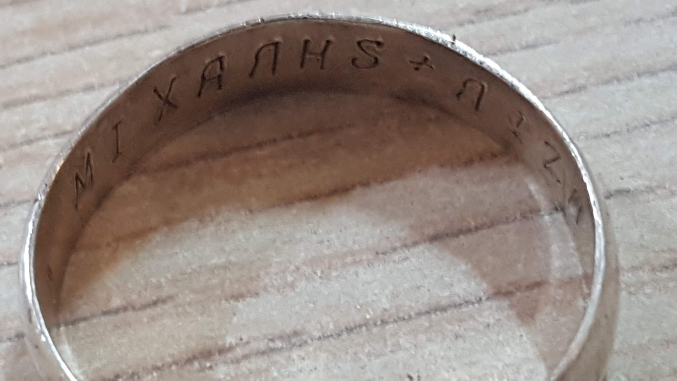 Silver Ring/Band with Engraving 'Michalis+Liza', Size V, App...