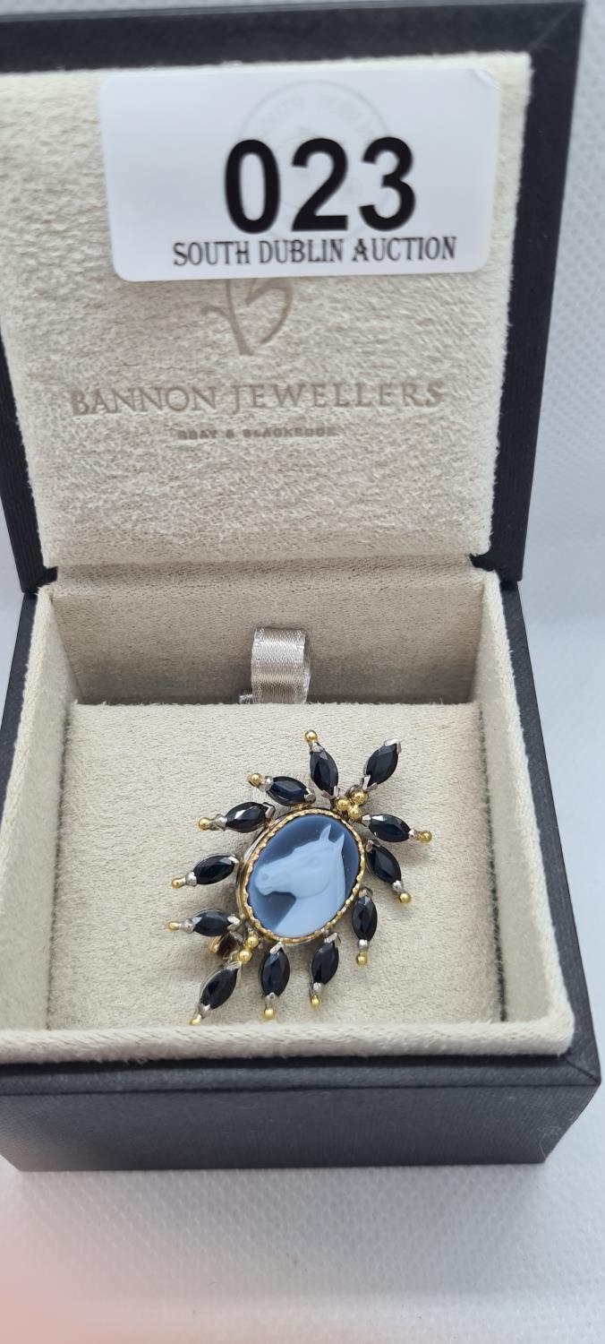 18ct Gold Sapphire Horse cameo brooch 10G Super item