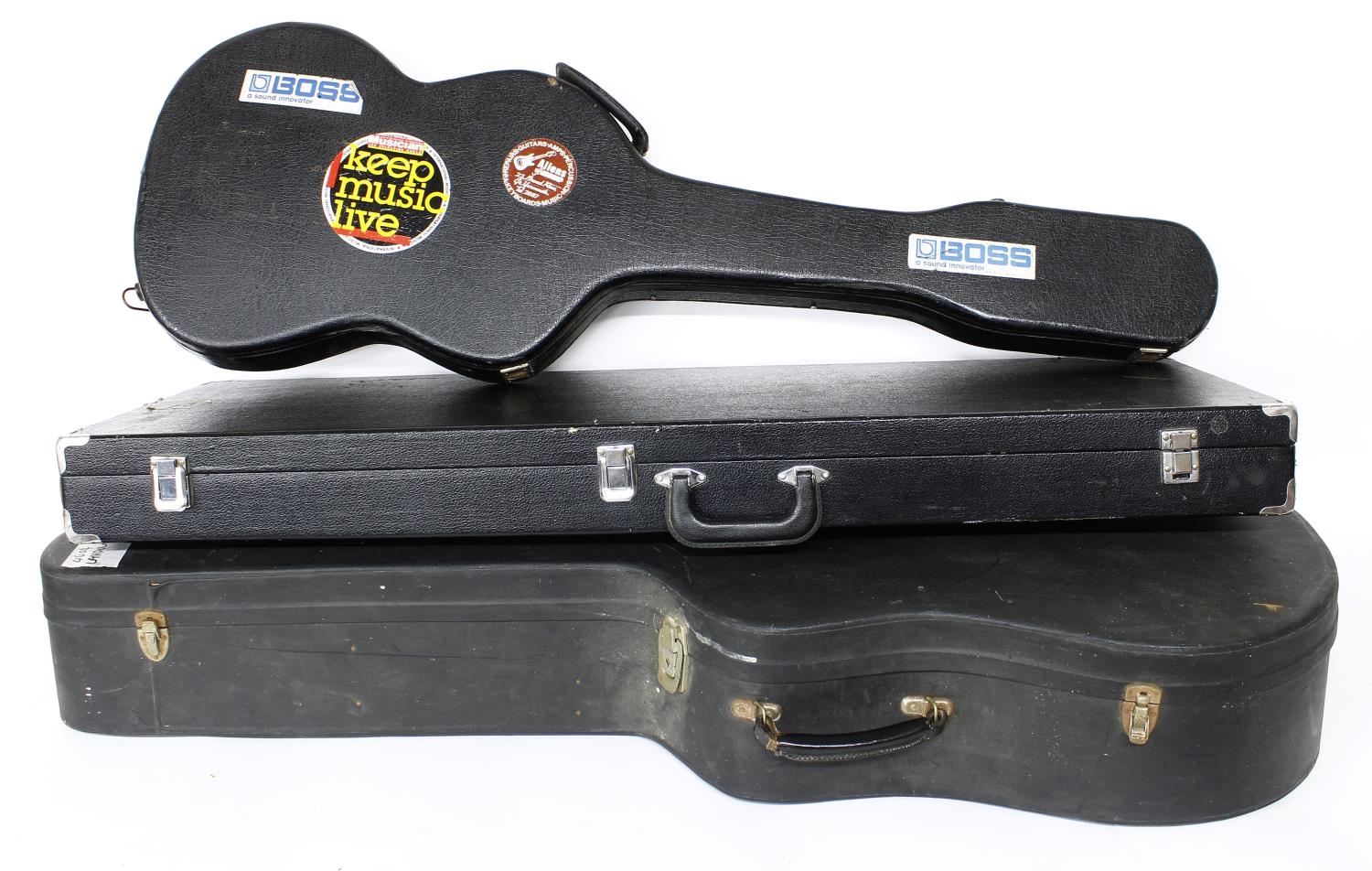 Two old electric guitar hard cases; together with an acoustic guitar hard case (3)