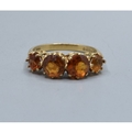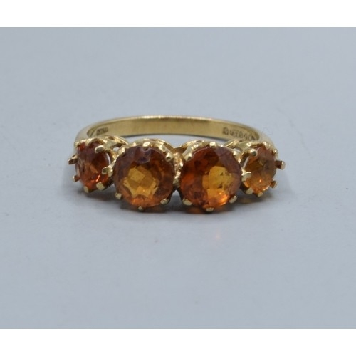9ct gold ladies vintage 4 stone Amber Citrine ring held in a claw setting size N, 3.0grams