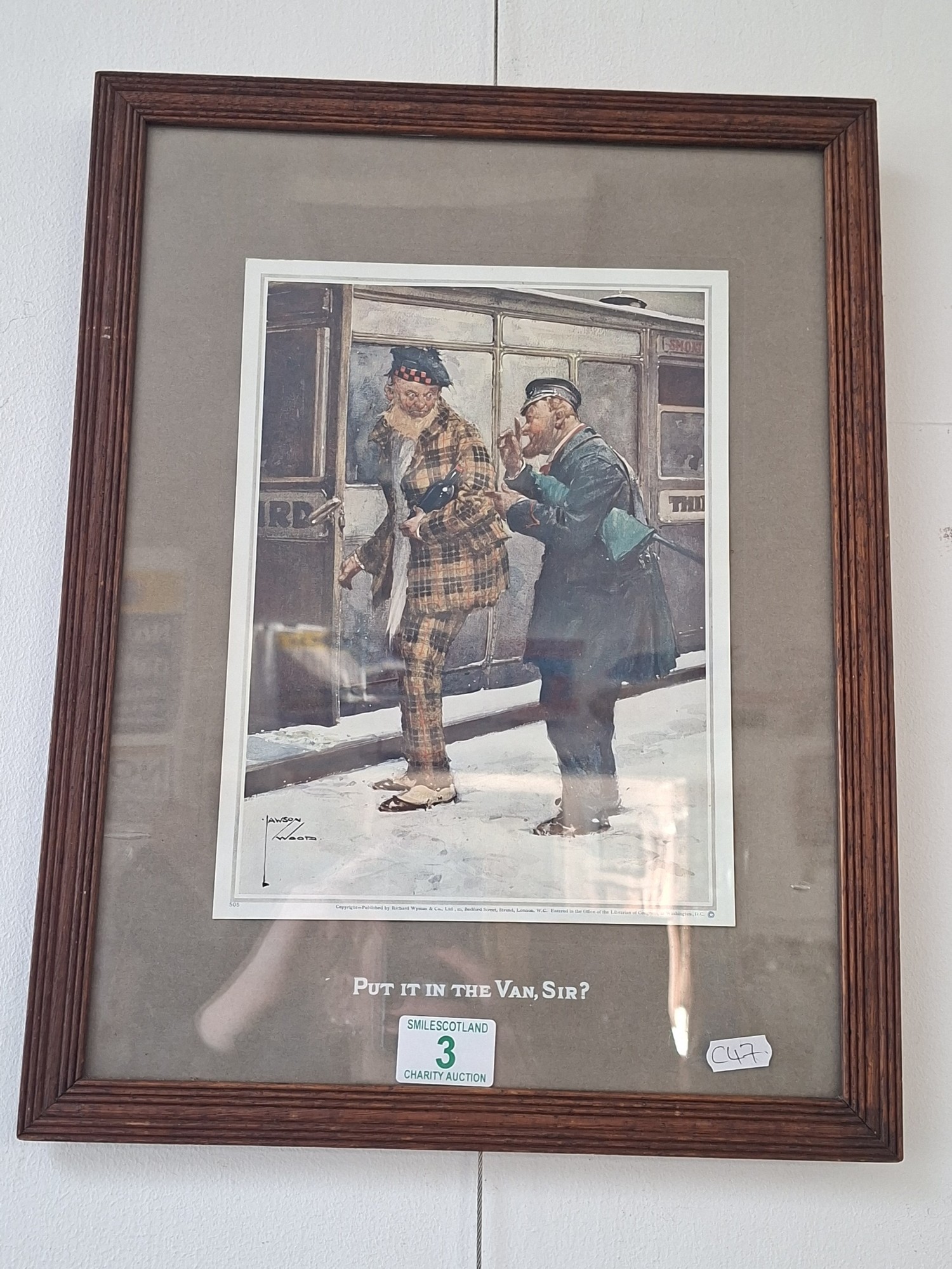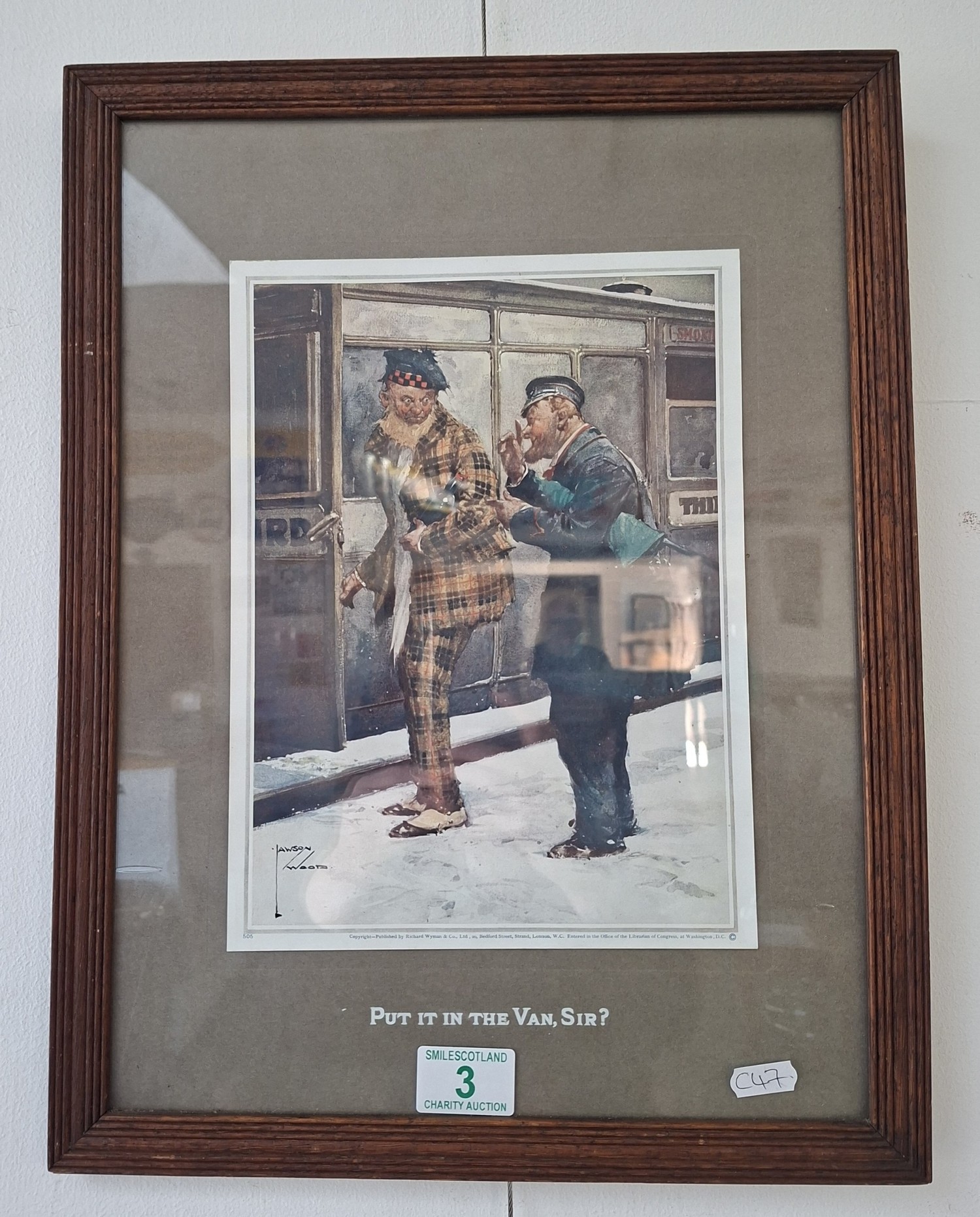 Late 1920's Lawson Wood 'Scottish' themed cartoon print 'Put it in the van Sir' 44cm x 34cm approx.
