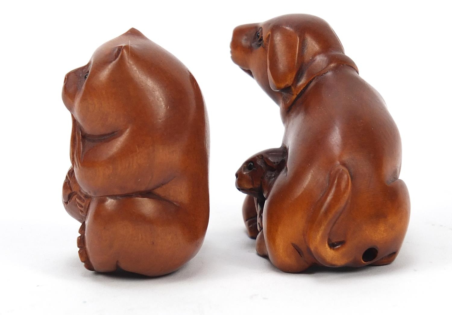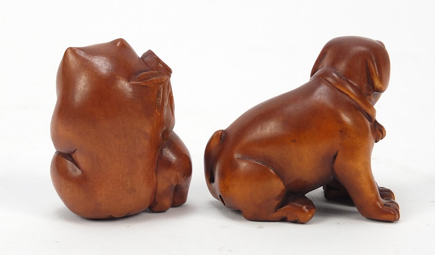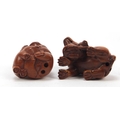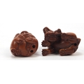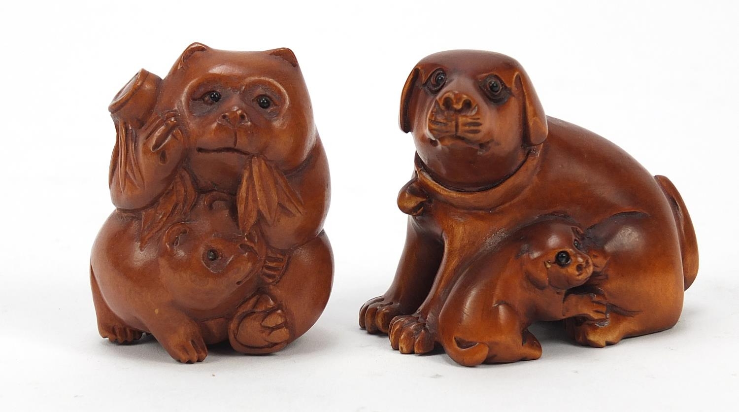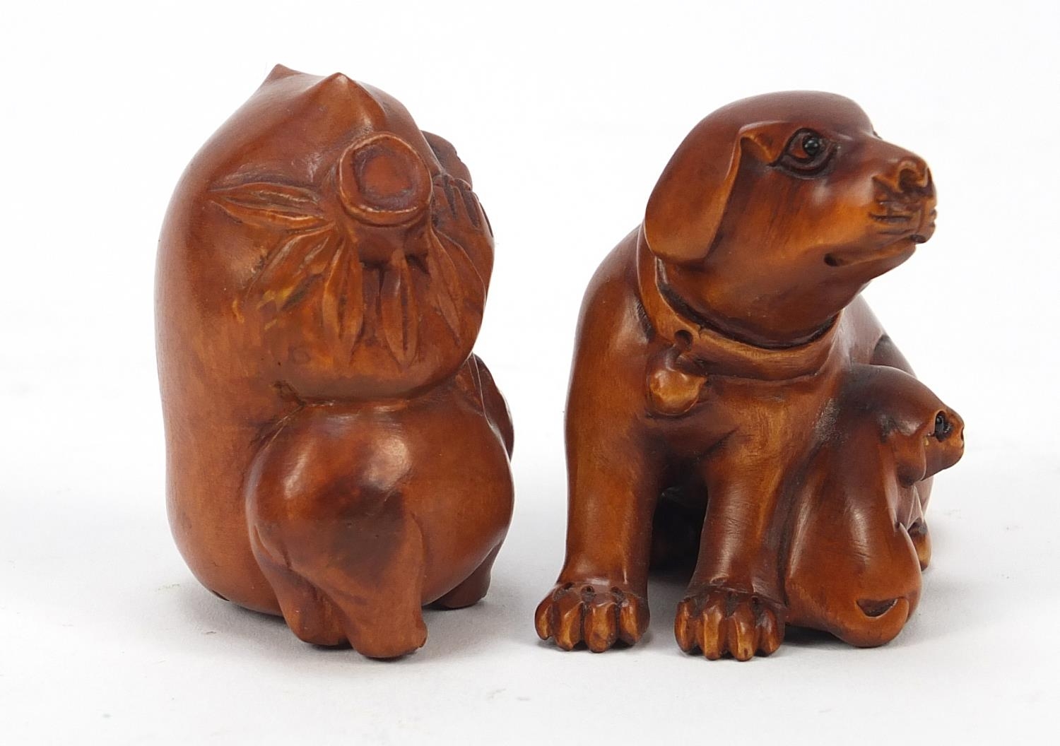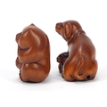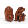 Two Japanese boxwood Netsukes including one of two dogs, the largest 4cm high
