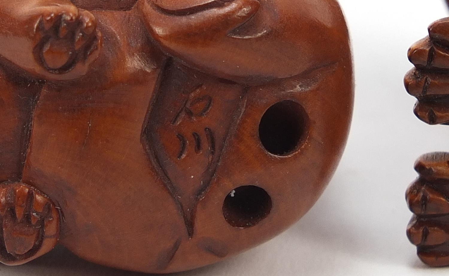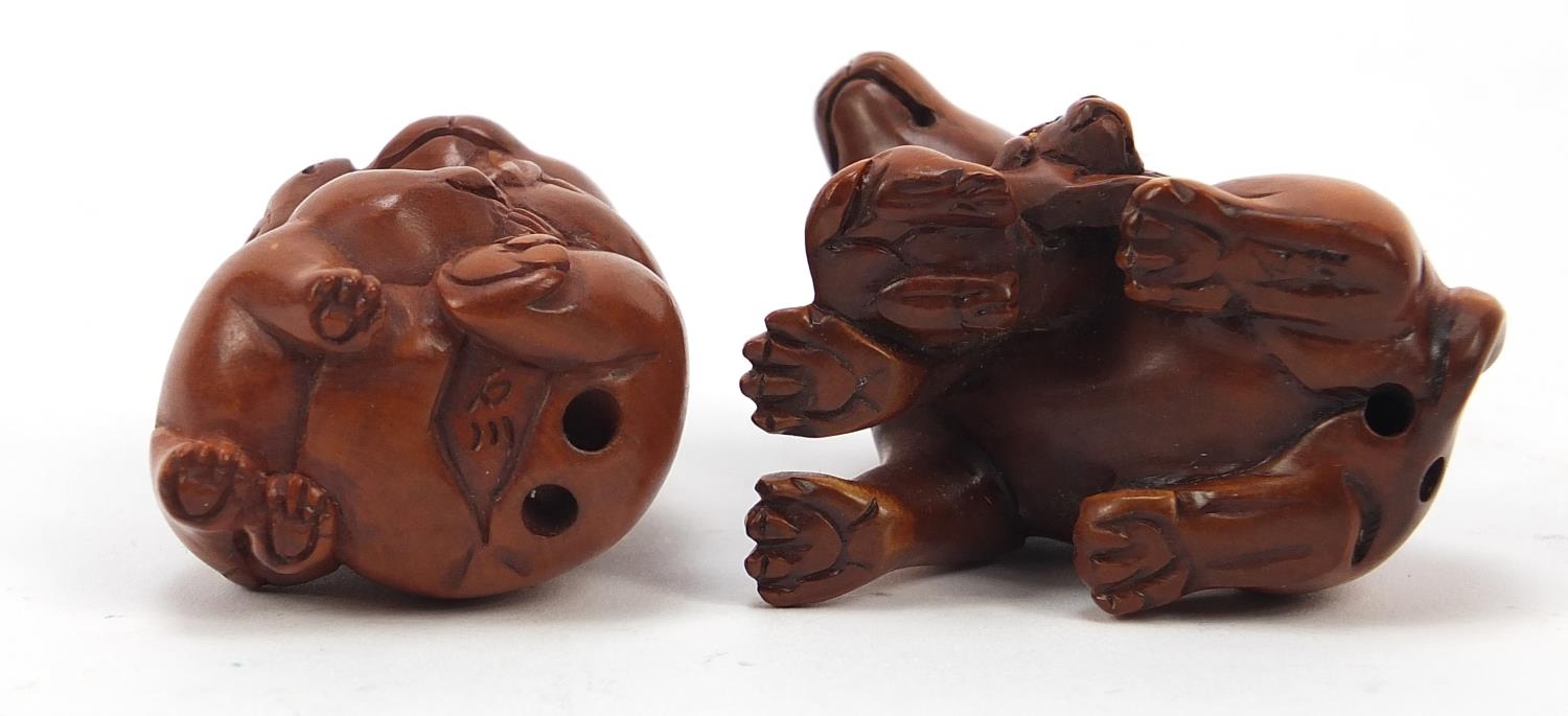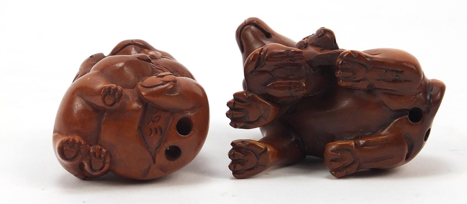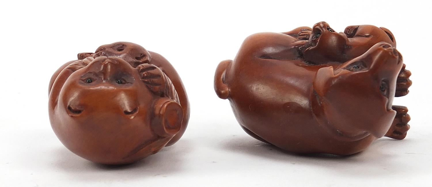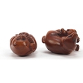 Two Japanese boxwood Netsukes including one of two dogs, the largest 4cm high