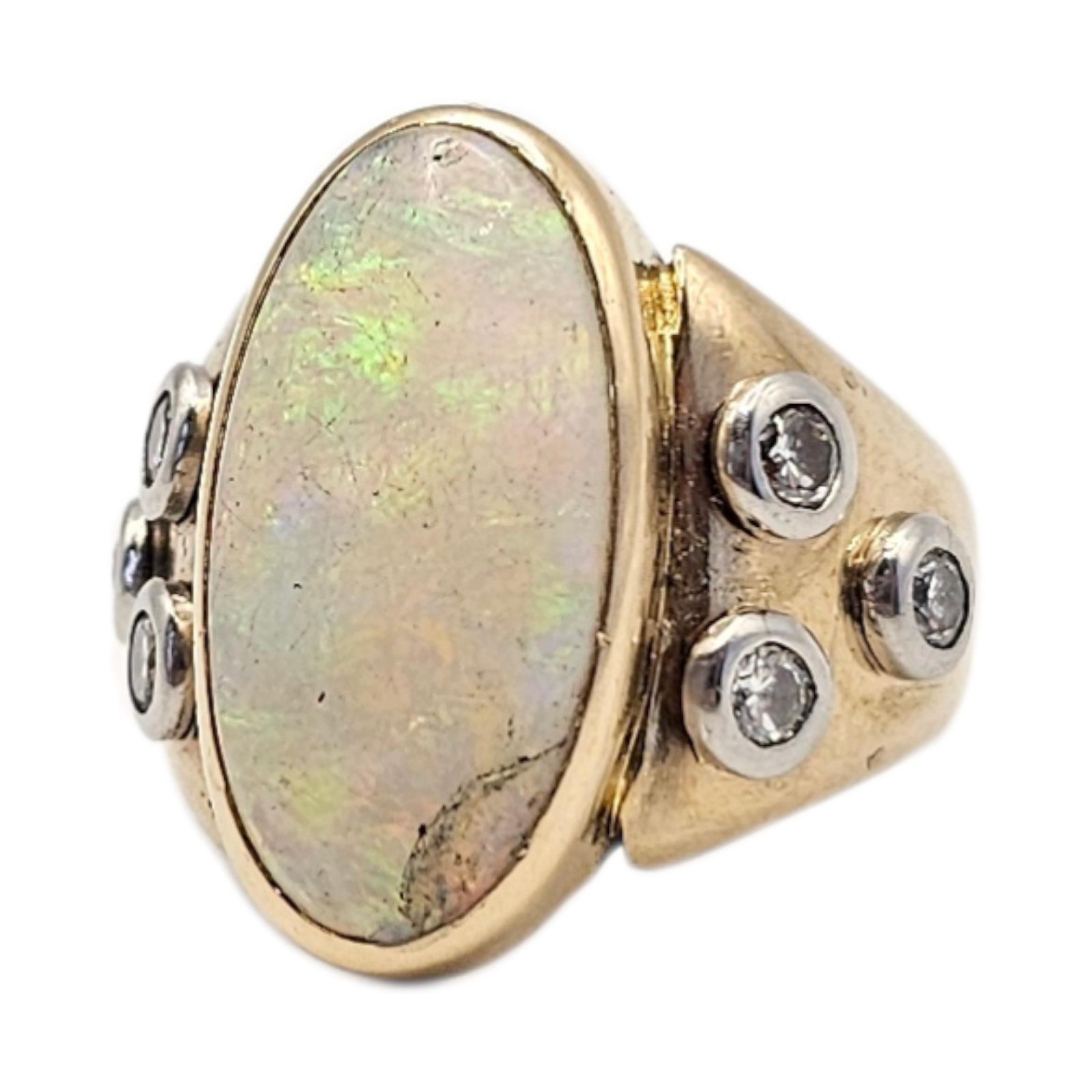 A VINTAGE 18CT GOLD OPAL AND DIAMOND RING