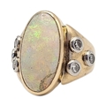 The central oval cut opal flanked with round cut diamonds.