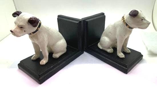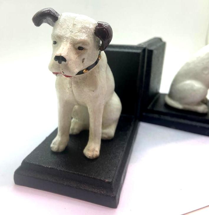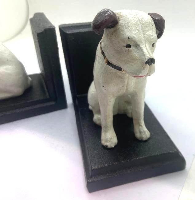 Pair of Nipper the dog cast iron bookends, H: 11 cm. P&P Group 2 (£18+VAT for the first lot and £3+VAT for subsequent lots)