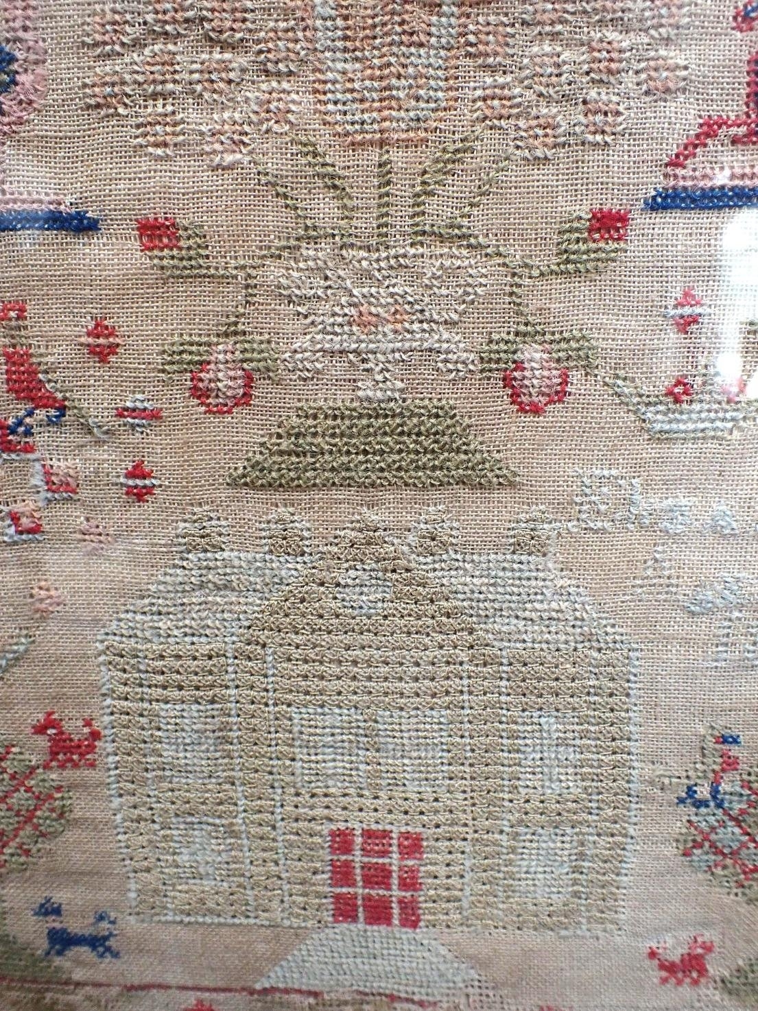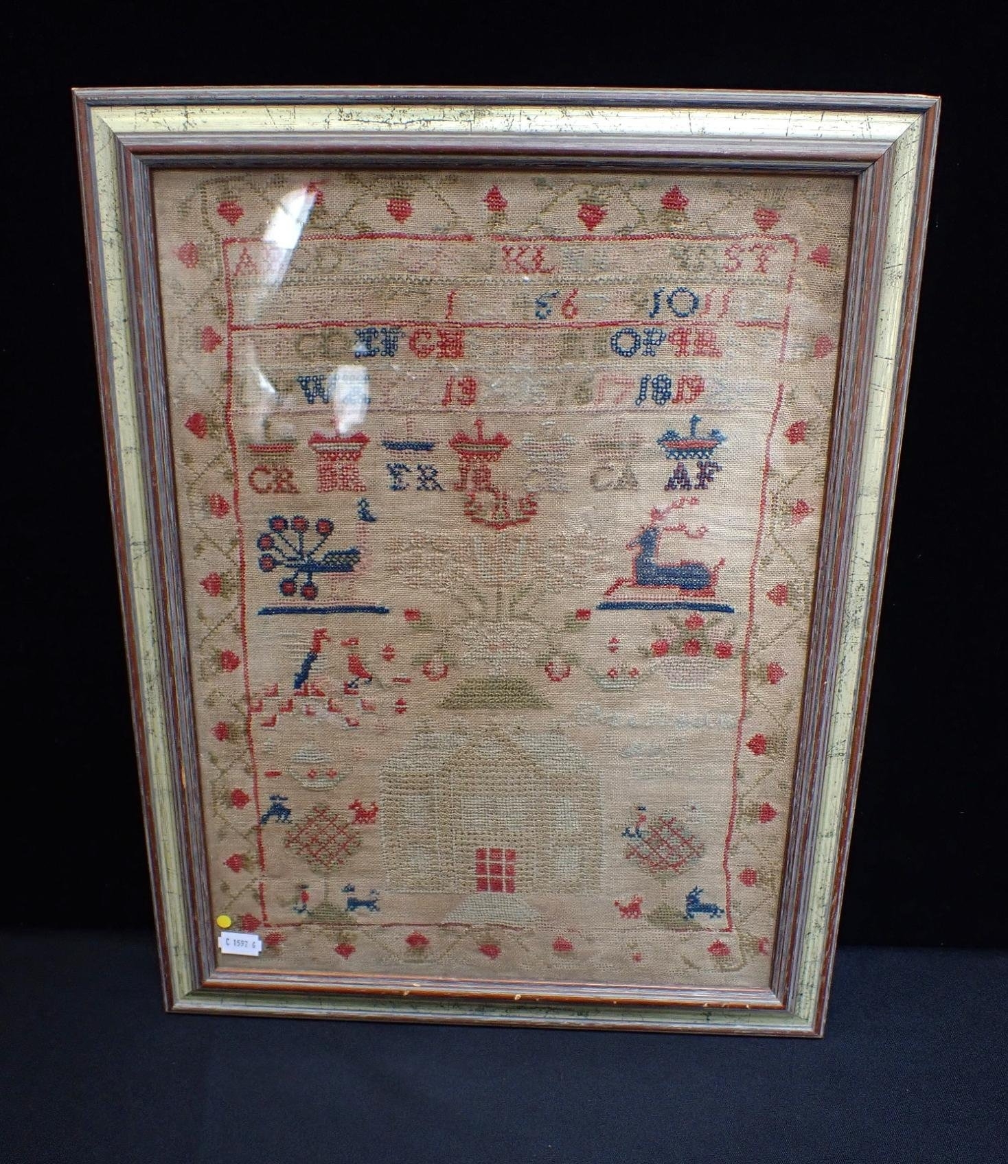 A 19th CENTURY NEEDLEWORK SAMPLEREliza...1863 (?indistinct), in a modern frame 49 x 38cm