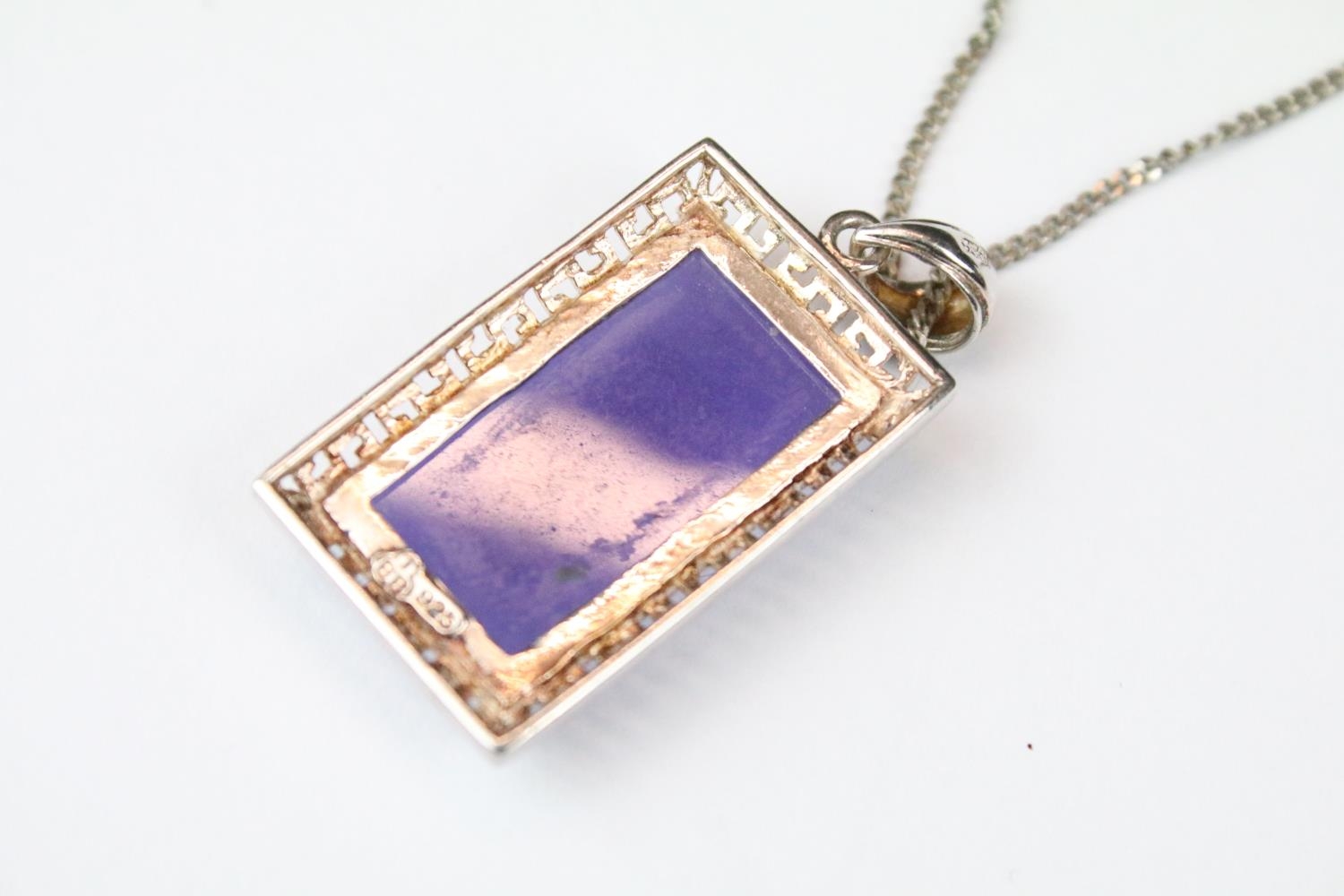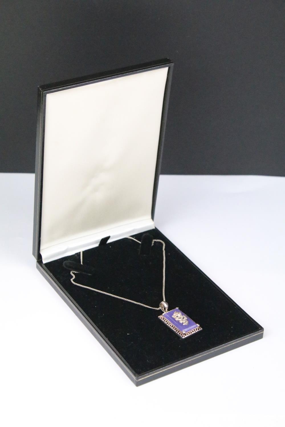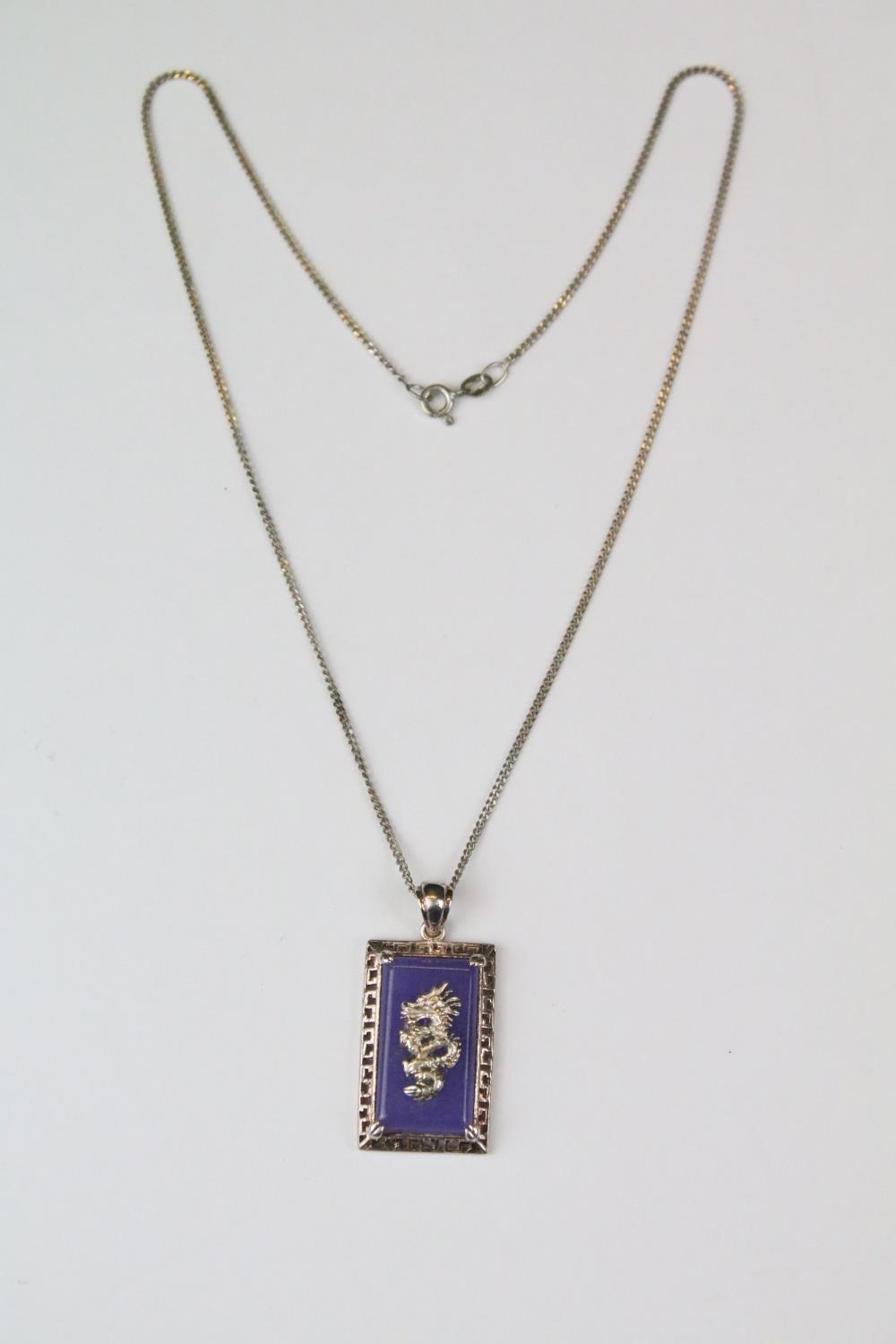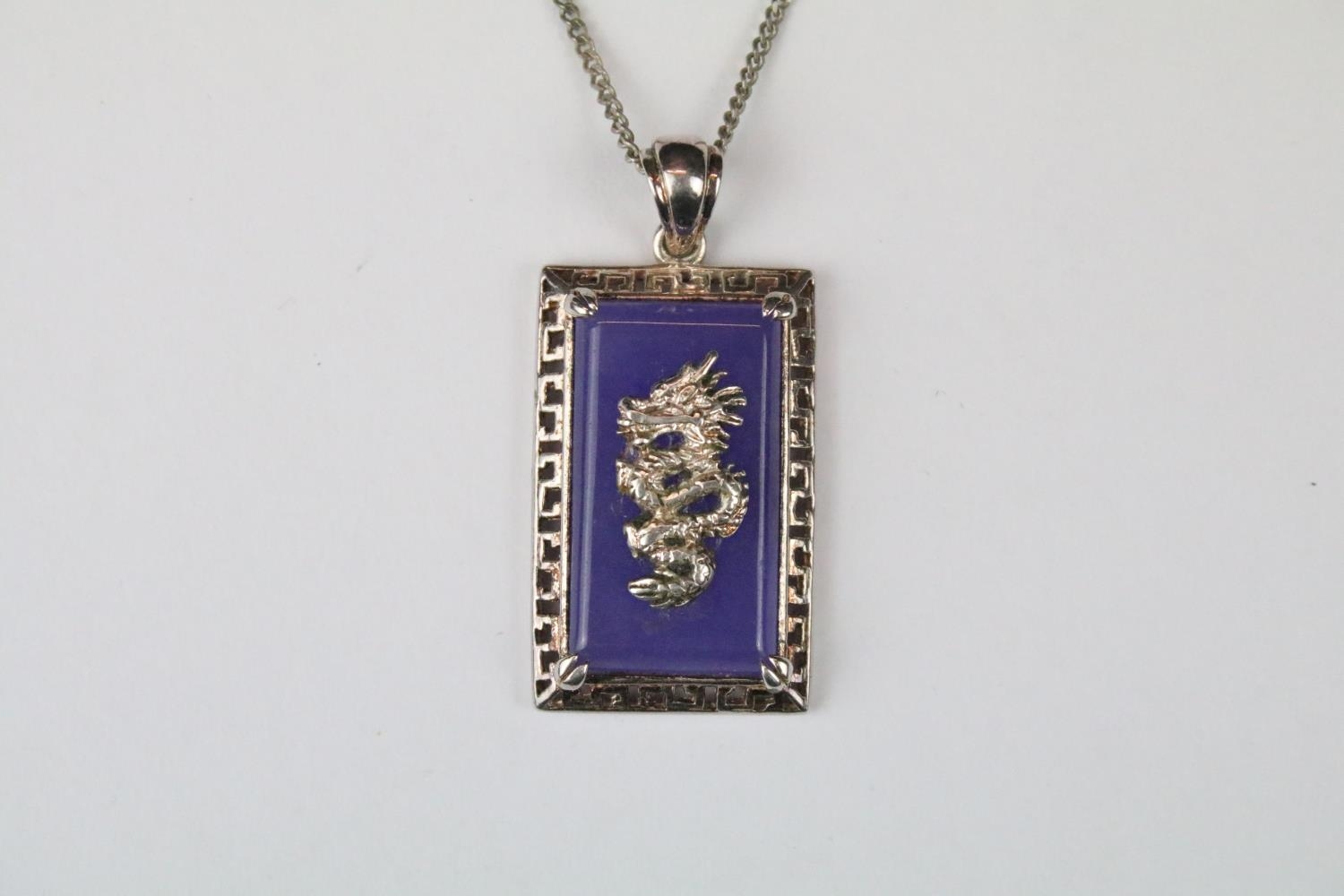 Chinese Silver and Lavender Jade Pendant on Chain with a dragon design, cased