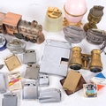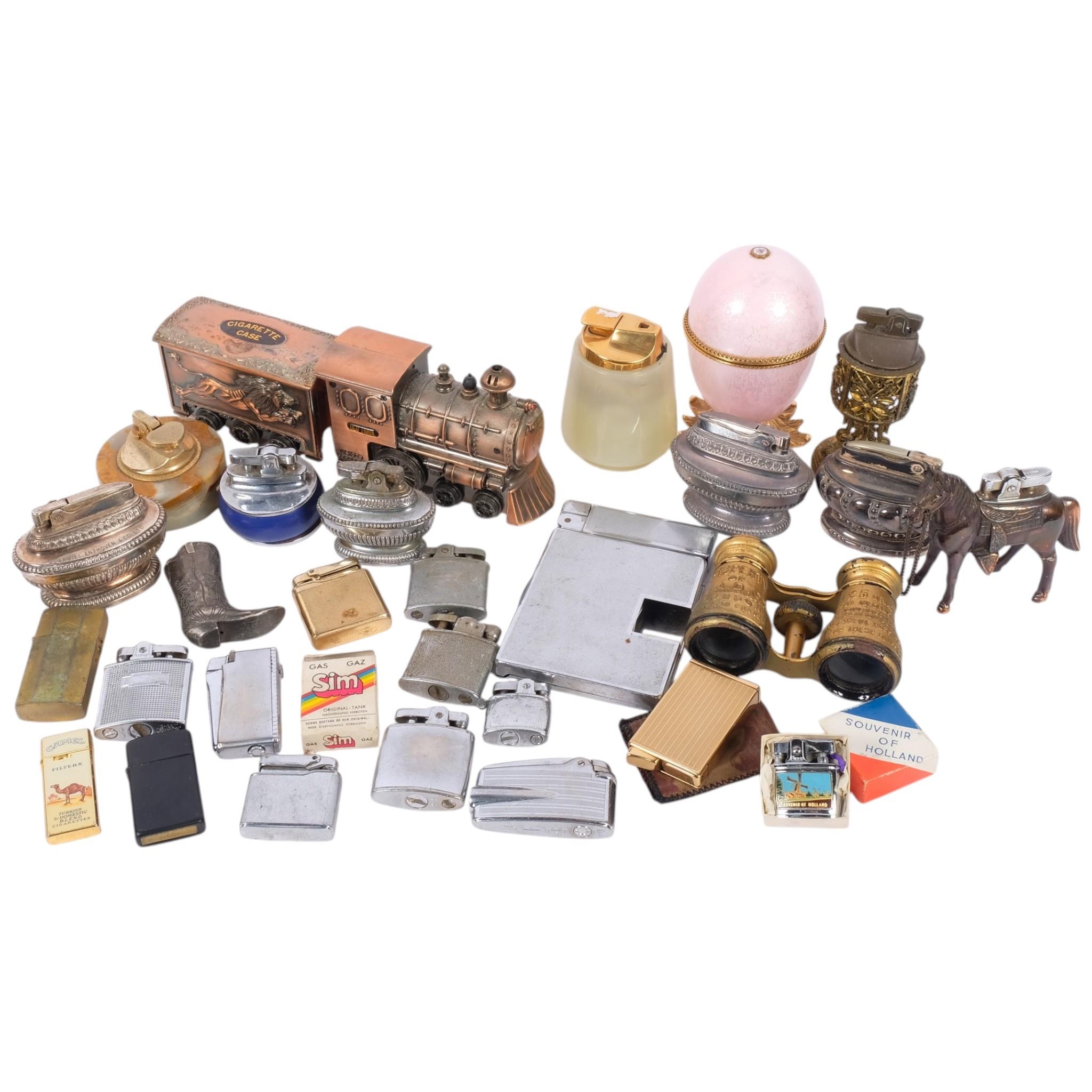 A collection of Vintage and other lighters, including silver plated Ronson table lighter, novelty lighters, pair of advertising opera glasses, etc