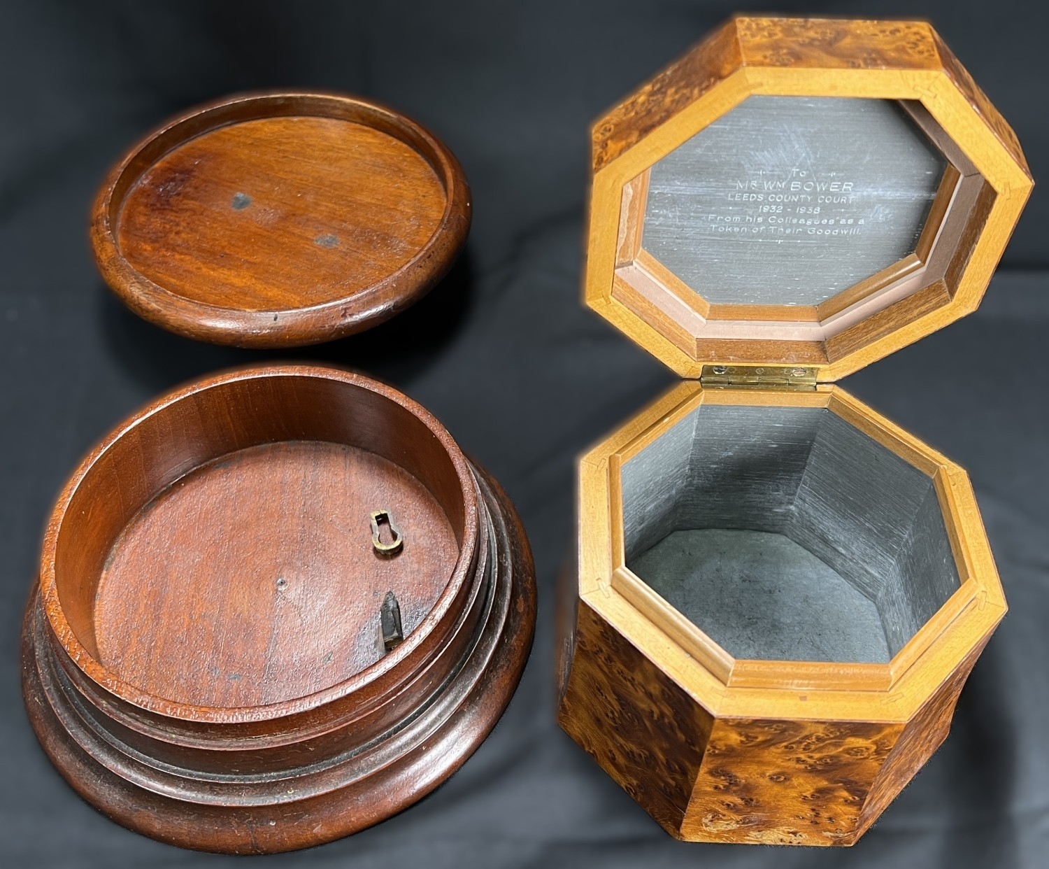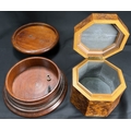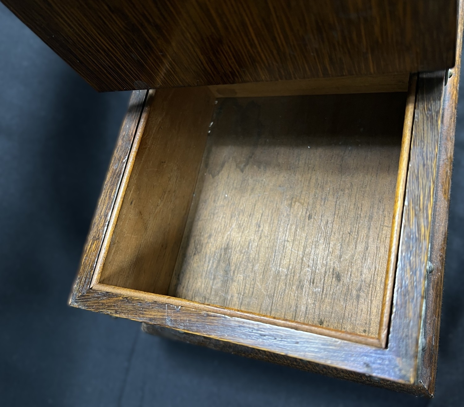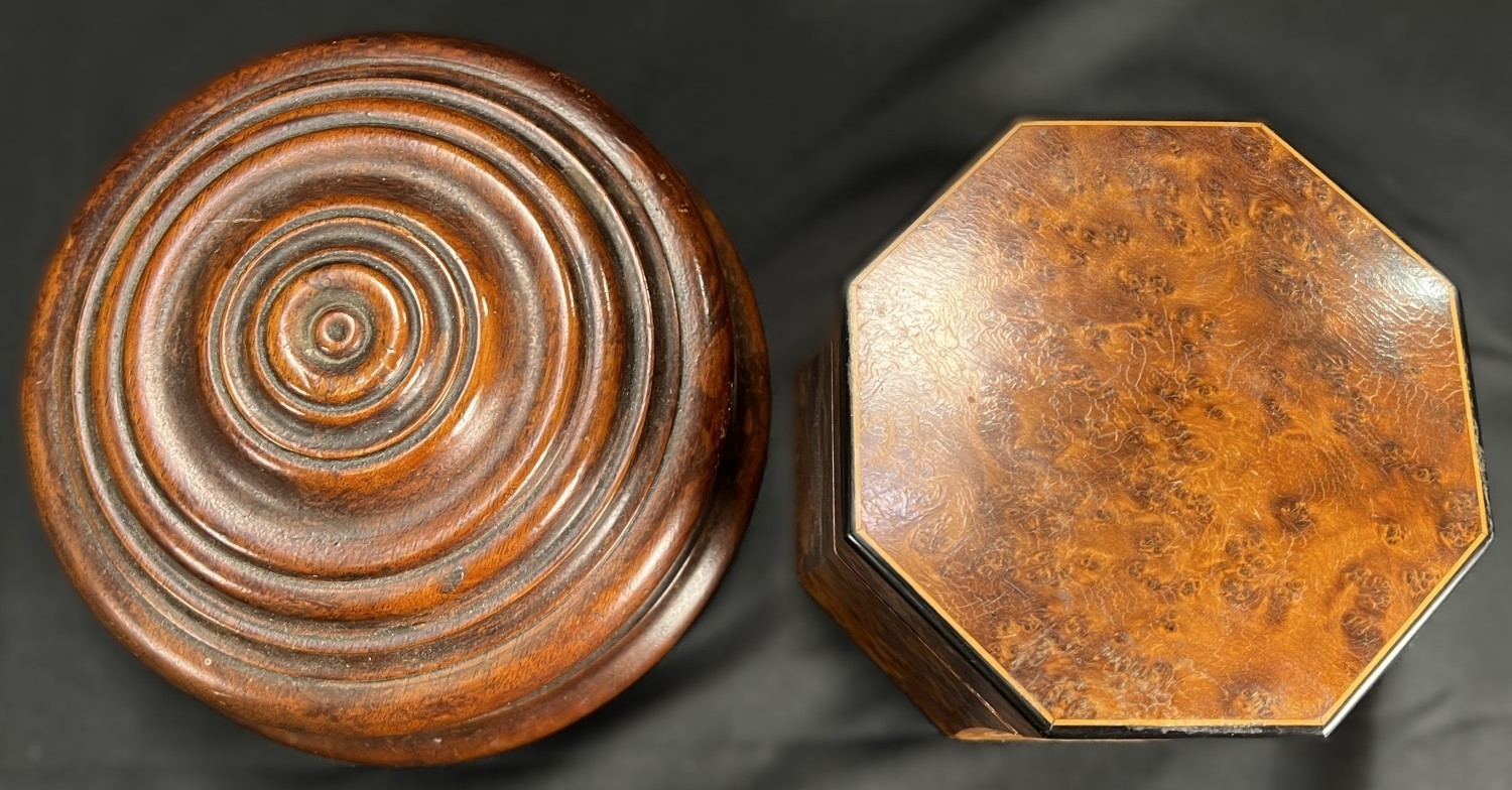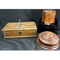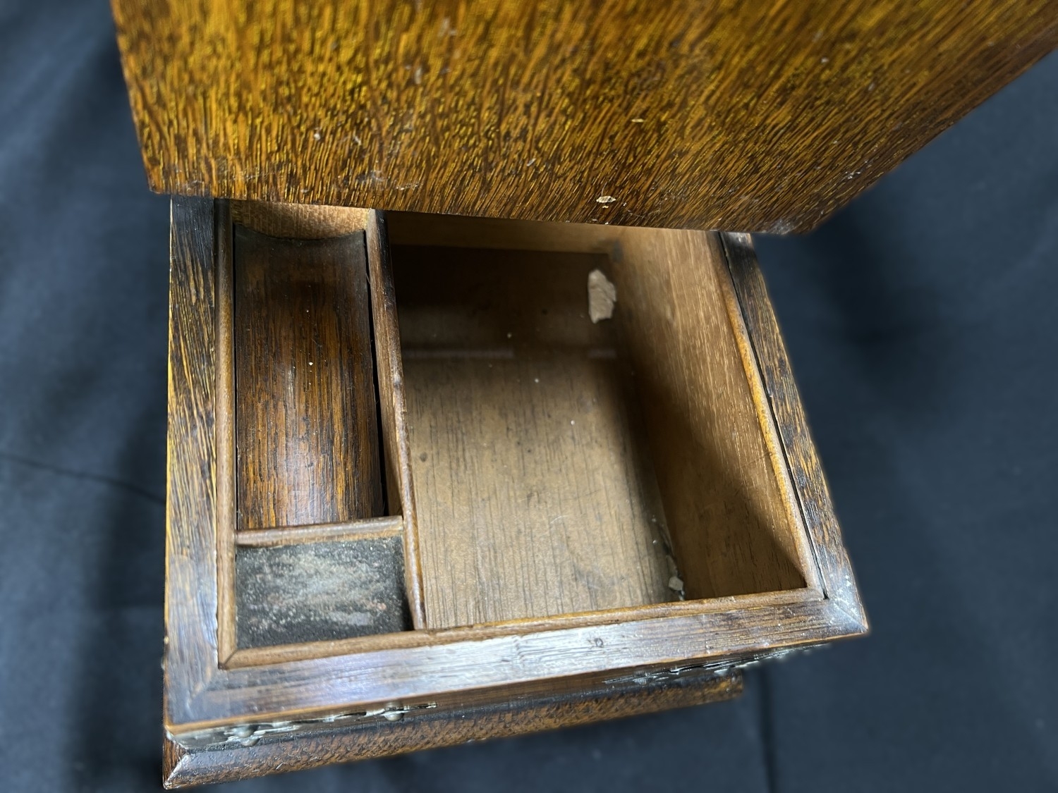 A Victorian oak humidor / smoking companion, space for cigars, cigarettes, matches etc and two other carved wooden humidors.