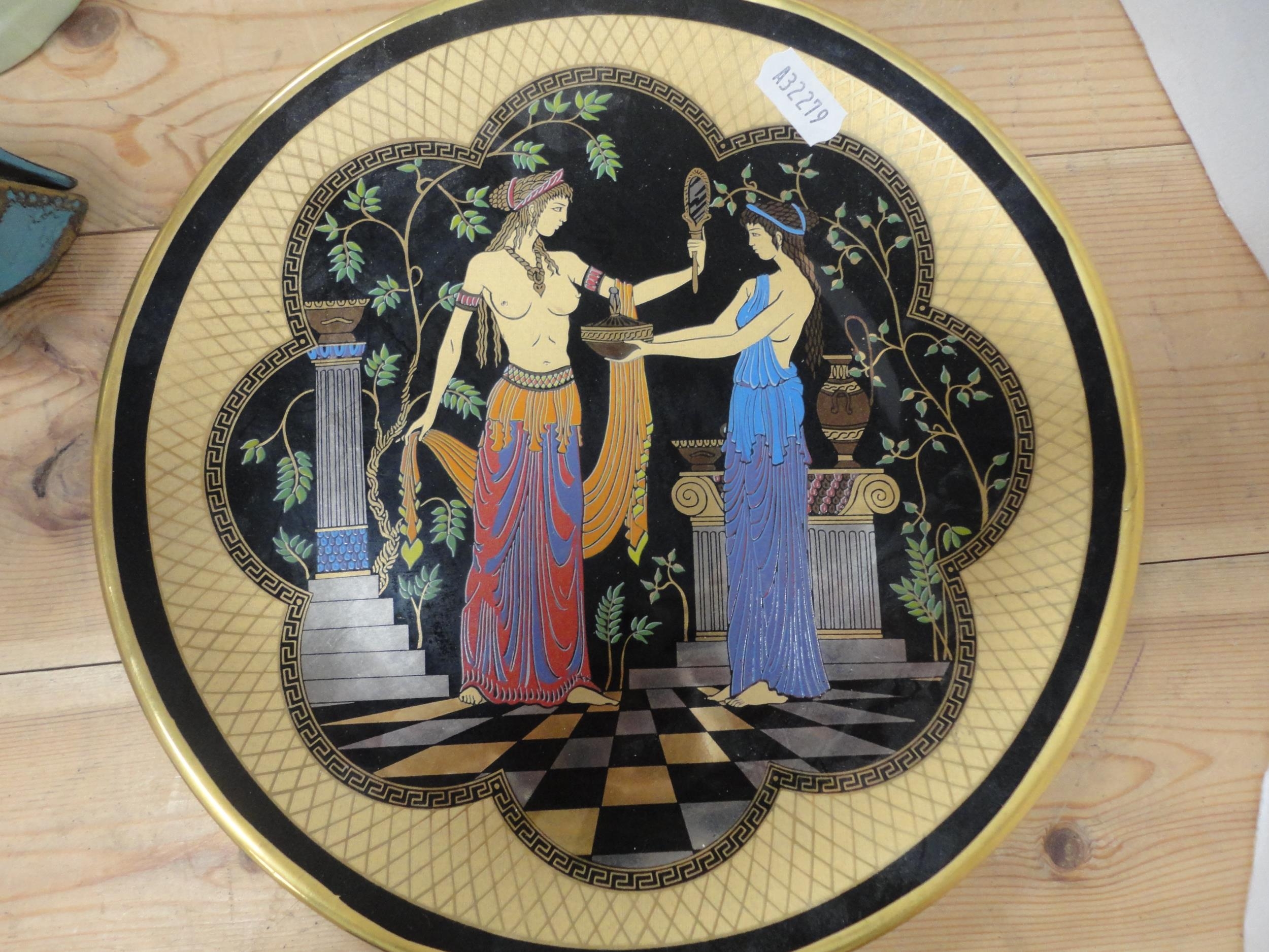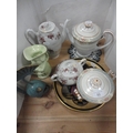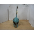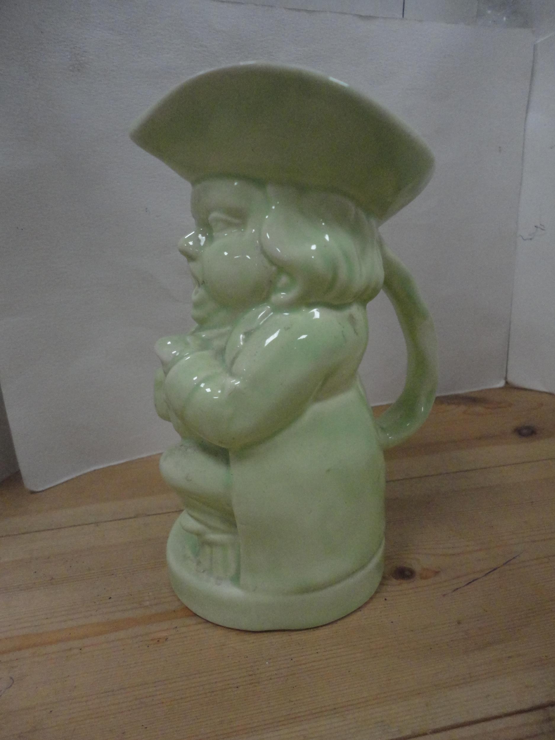 Green Burlington ware toby jug, brass table bell in the form of a hoplite helmet, coffee pots etc.