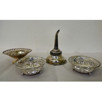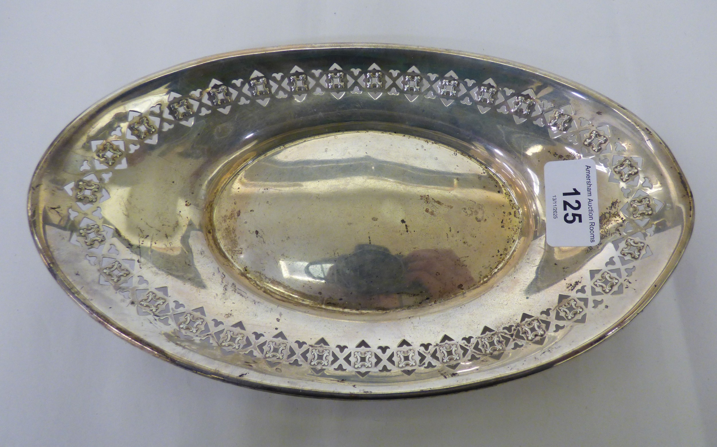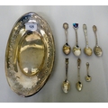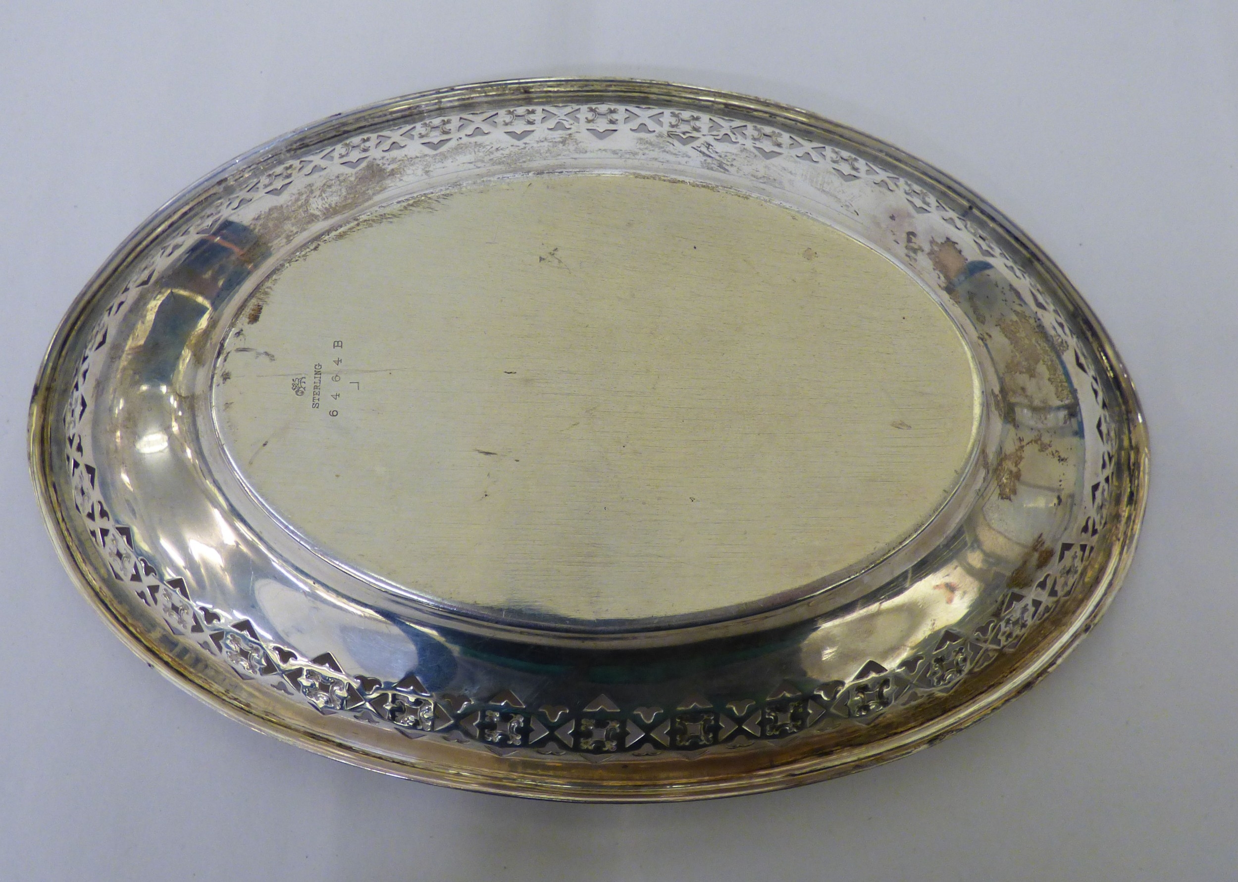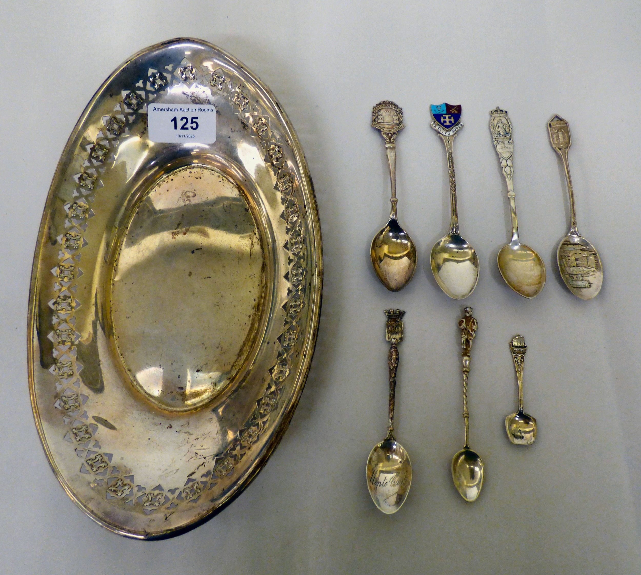 White metal collectables: to include an oval dish with pierced border stamped Sterling 10"w