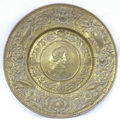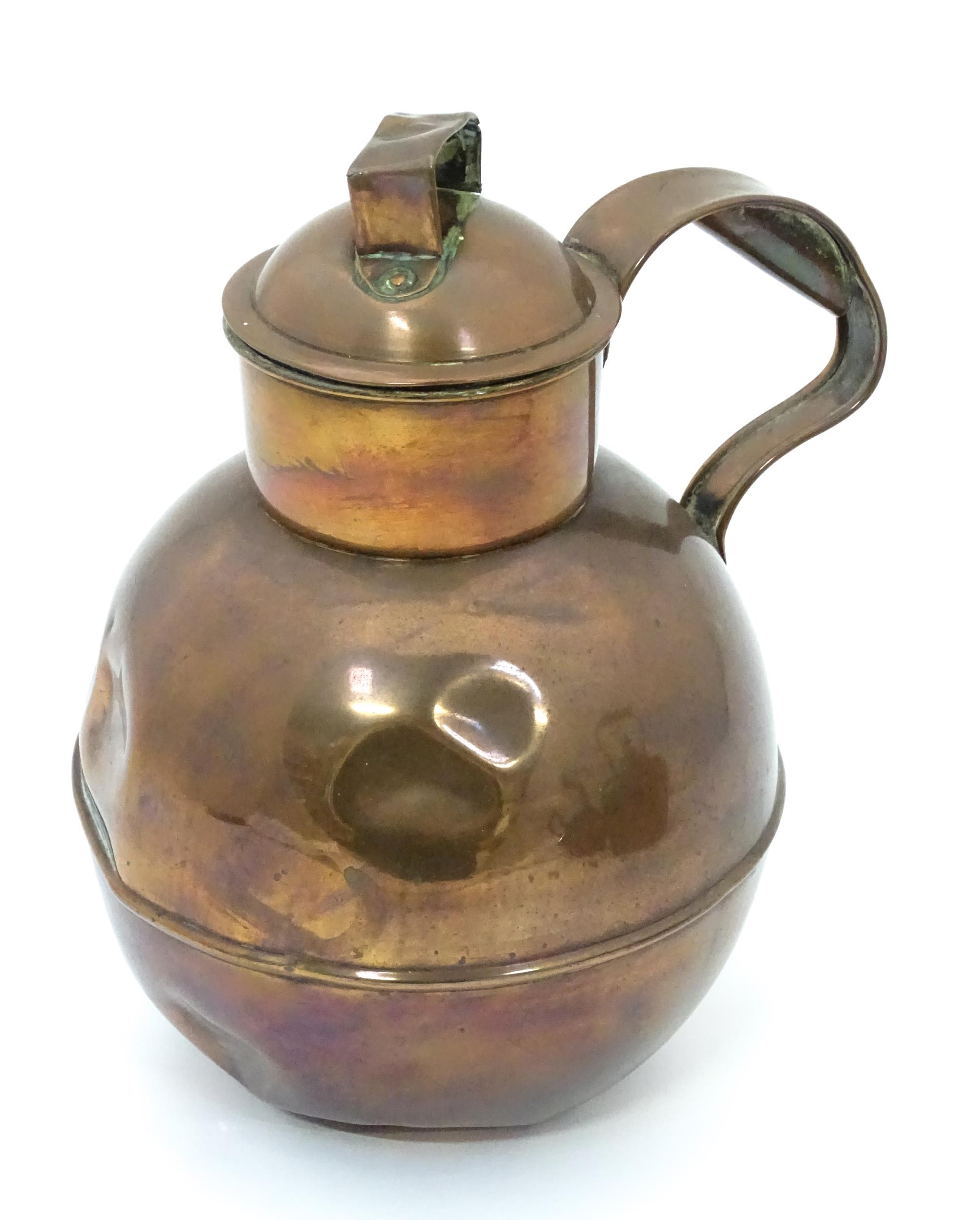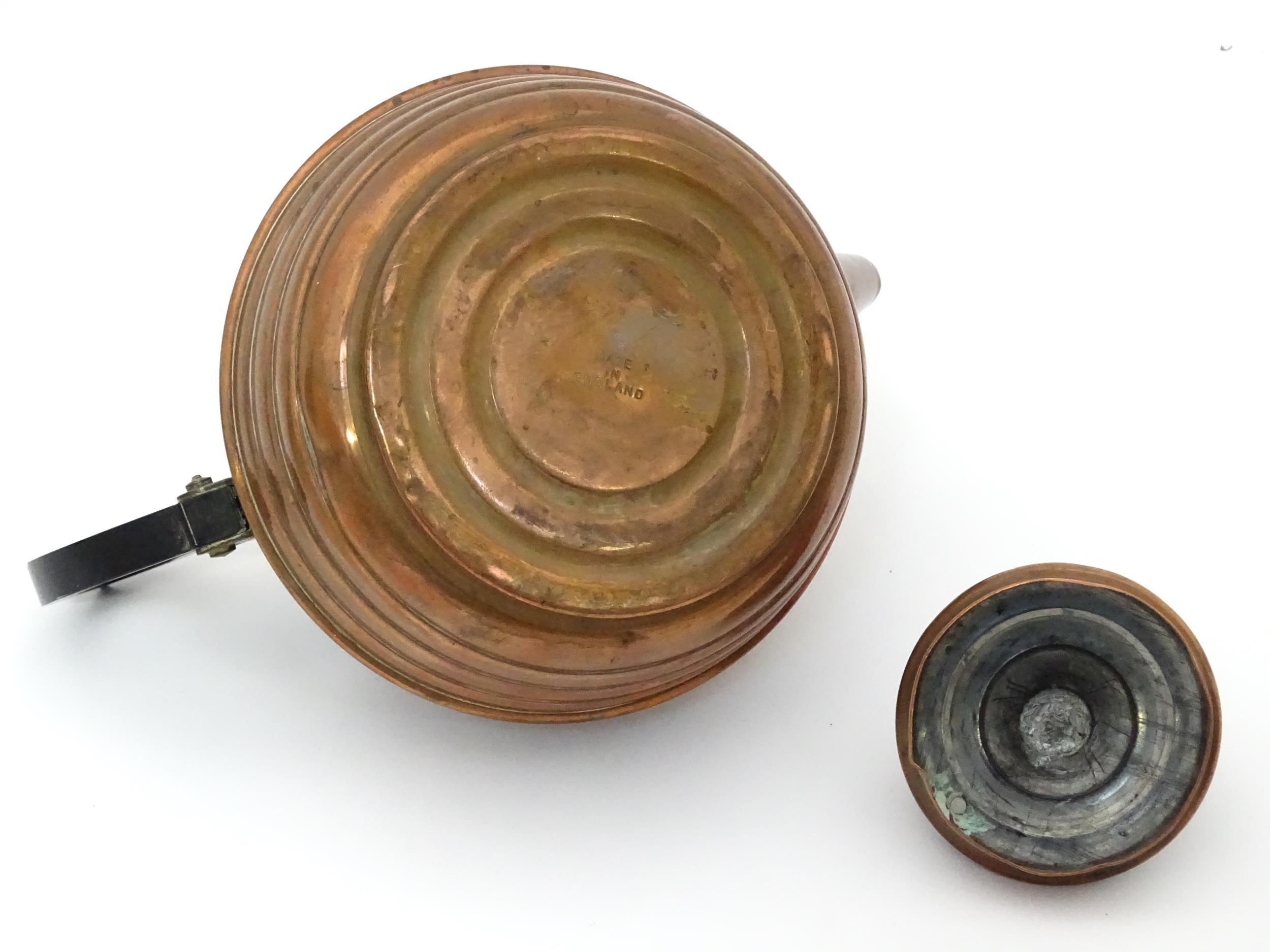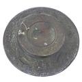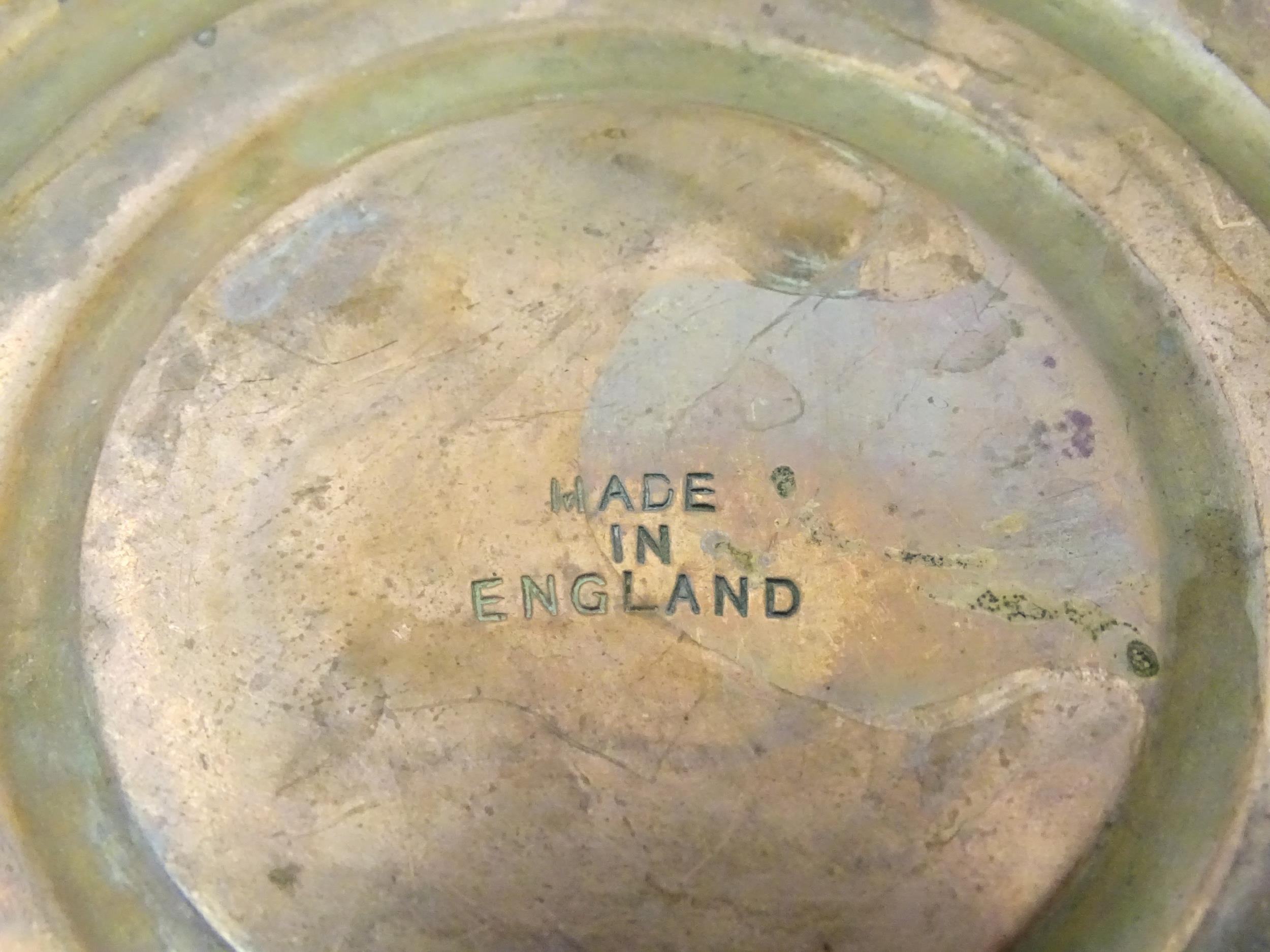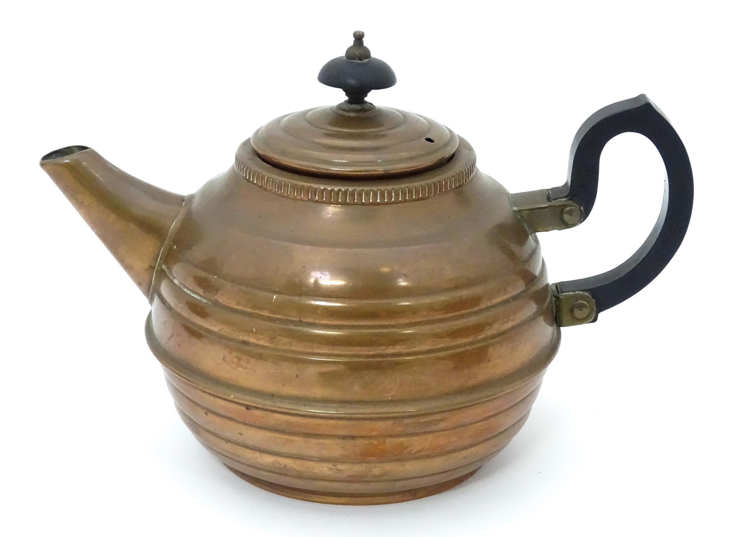 A quantity of brass and copper to include a copper kettle, teapot and jug together with a large brass charger, the largest approx 24" in diameter (4)
