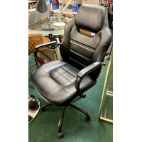 DORMEO TWO/TONE LEATHER OFFICE/GAMING CHAIR WITH RISE AND FALL ARMS - SLIGHT WEARING TO ARMS