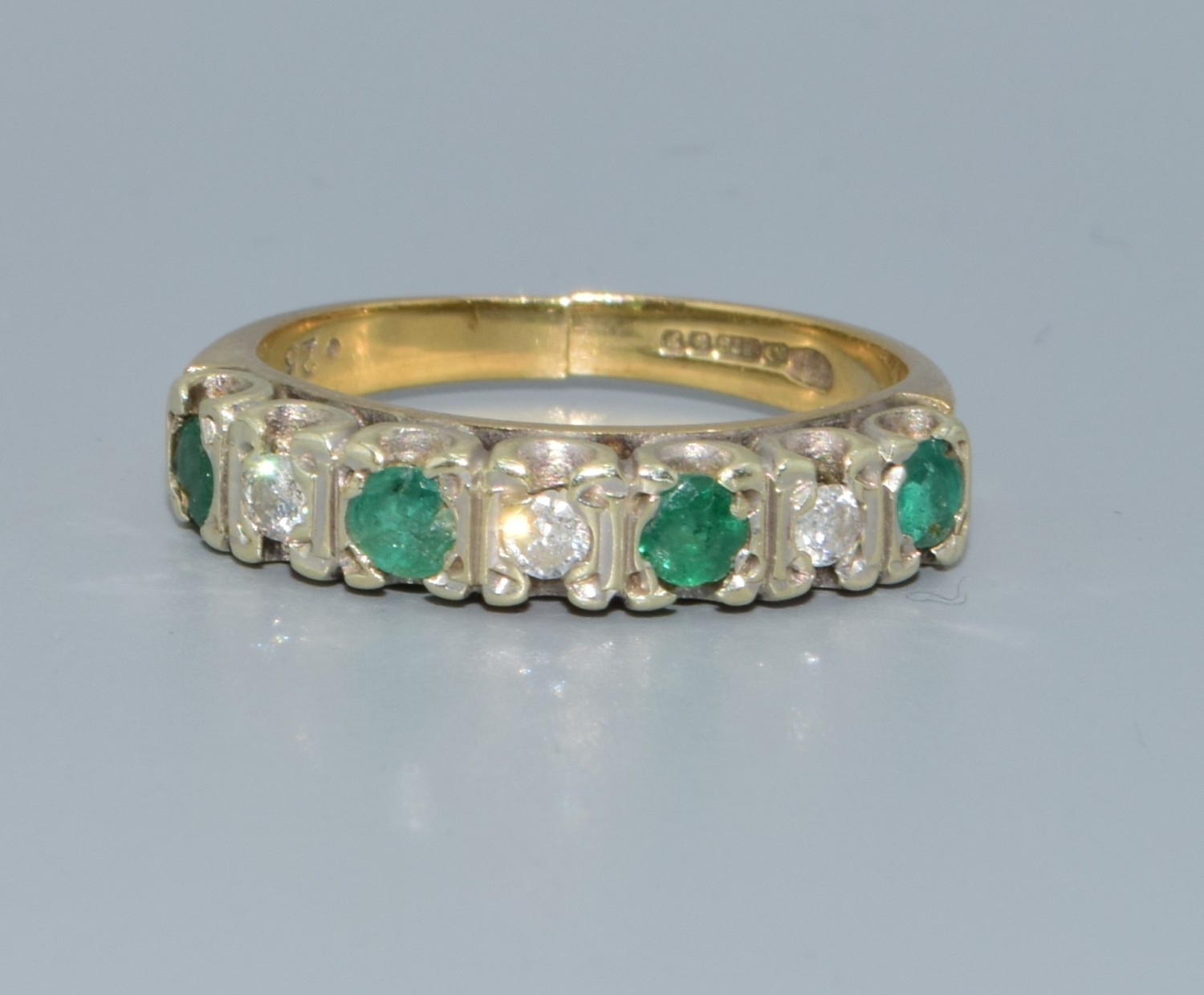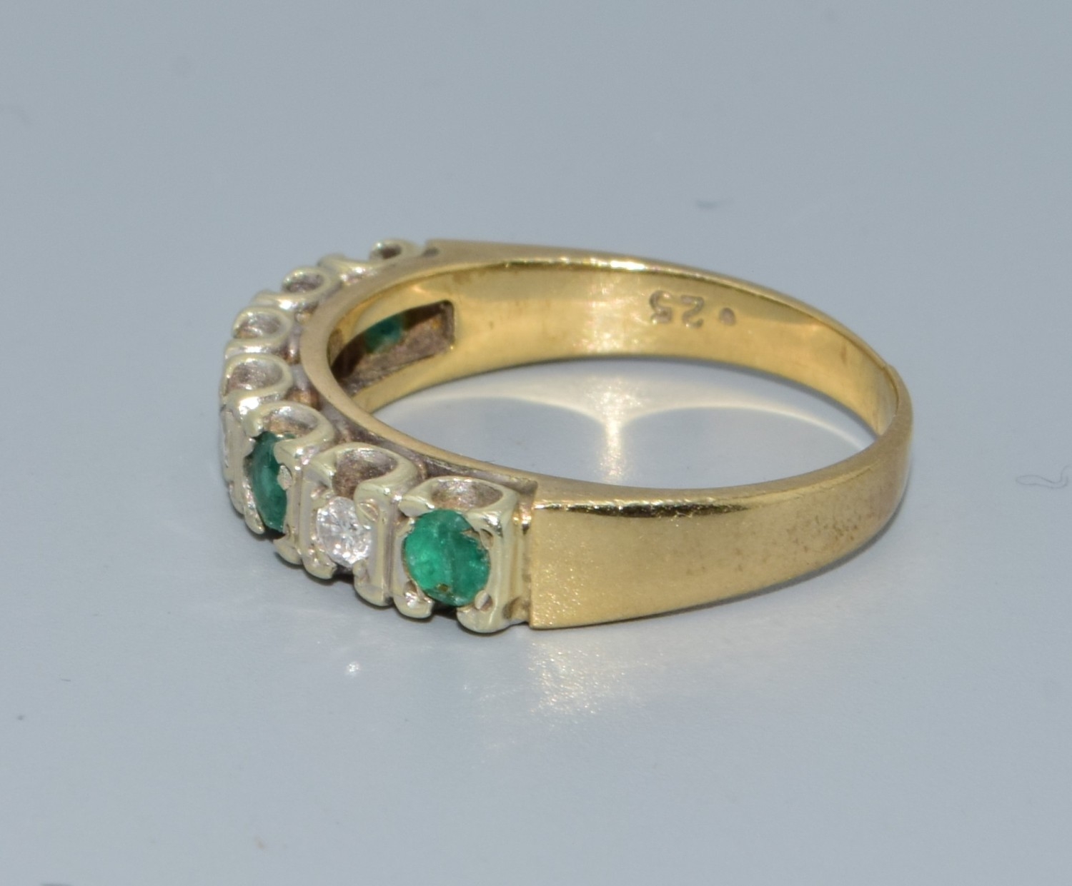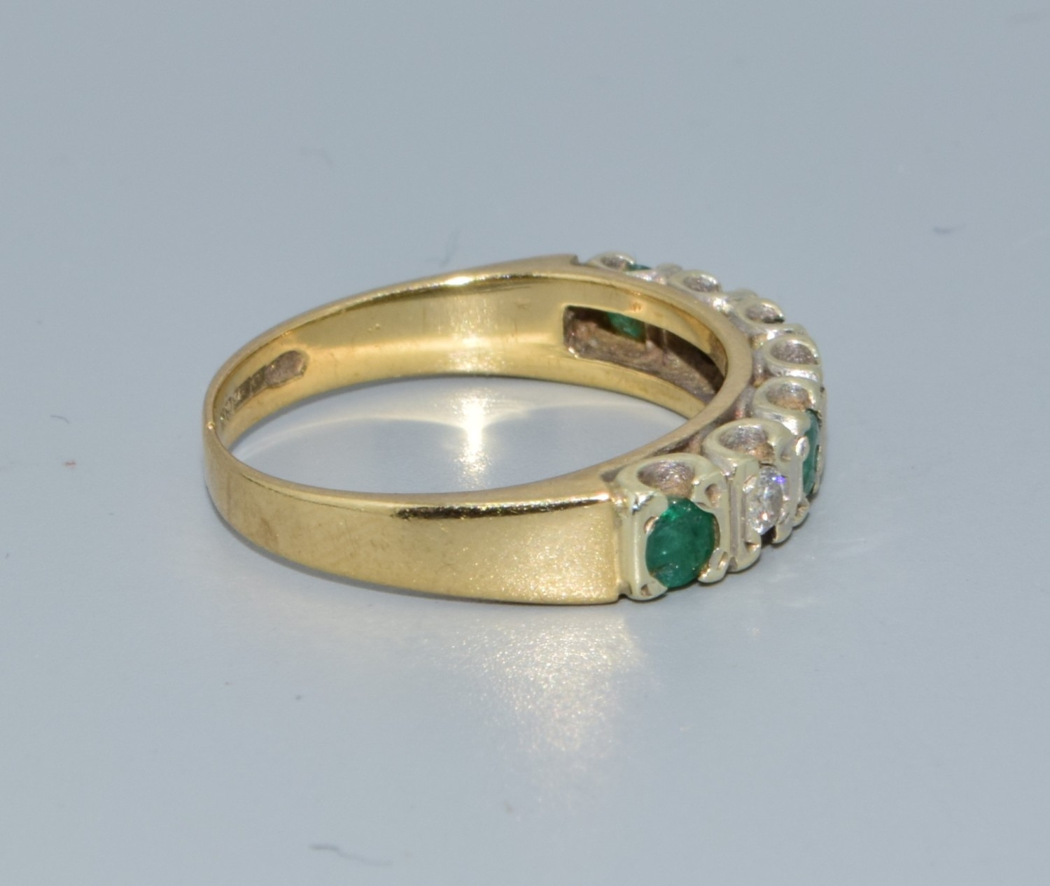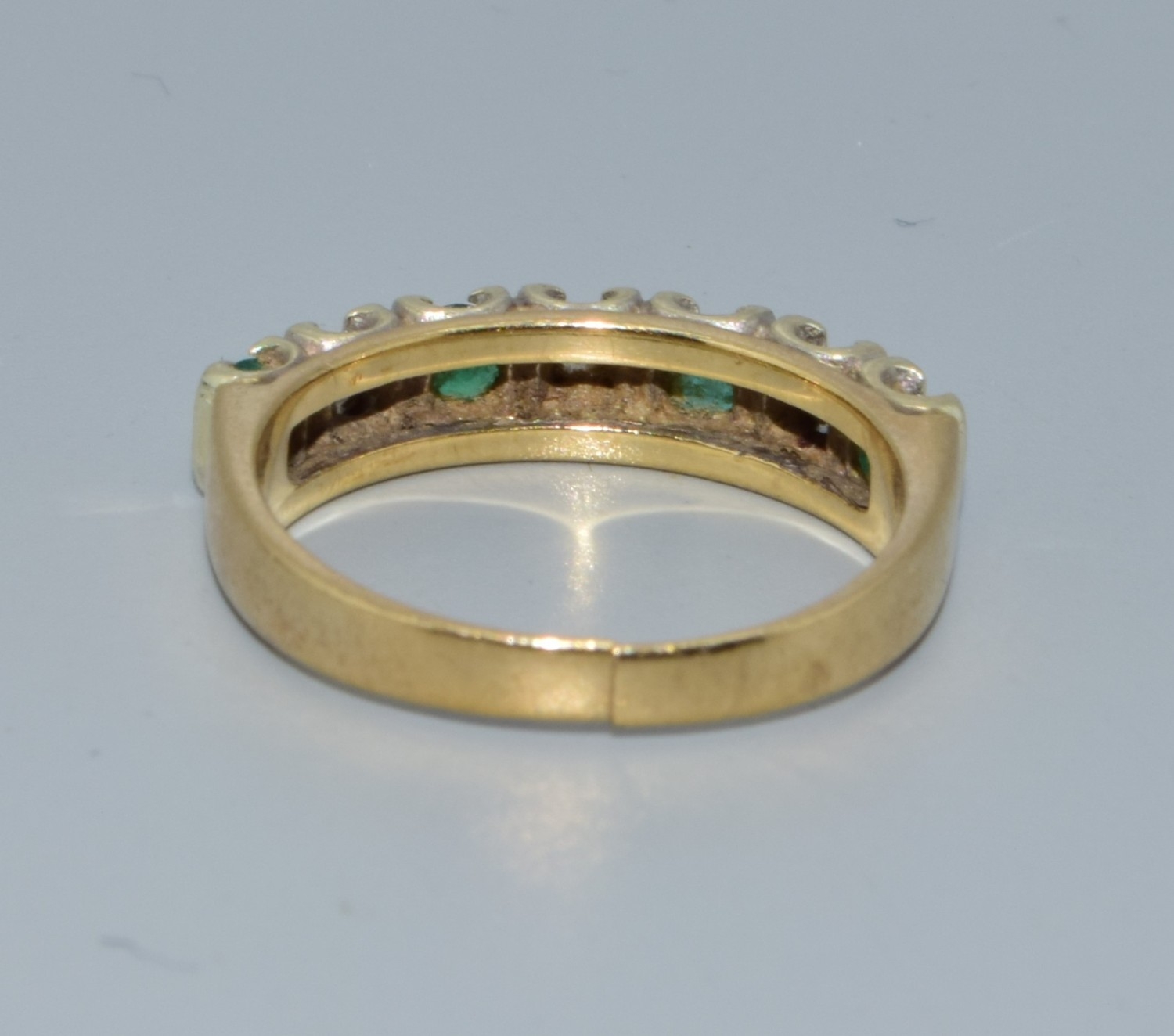 9ct gold ladies Diamond and Emerald 1/2 eternity ring hallmarked as 0.25ct size L
