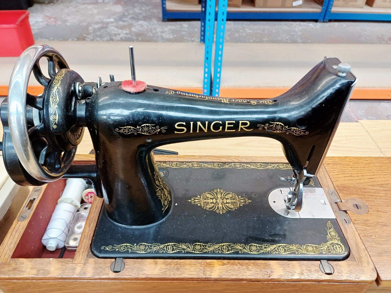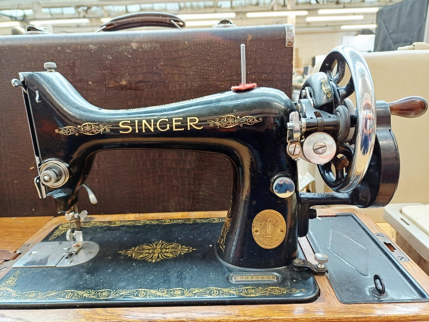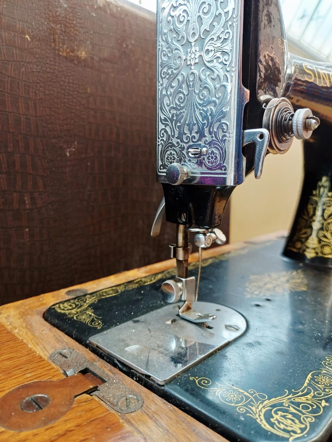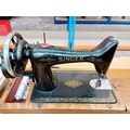 A cased 1938 Singer 99K hand-crank sewing machine with accessories