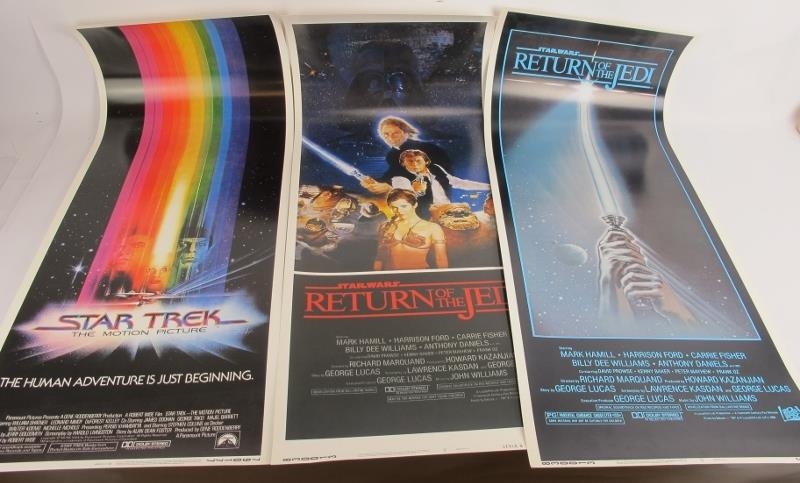 Two Star Wars Return of the Jedi cinema foyer posters, 830013 1983, each 36cm x 92cm and a Star Trek foyer poster, 790177 1979, 36cm x 92cm. (3).