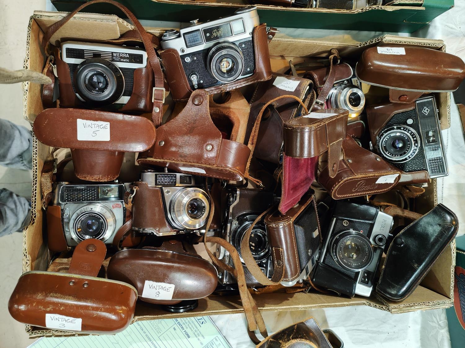 Ten vintage cameras