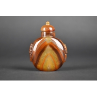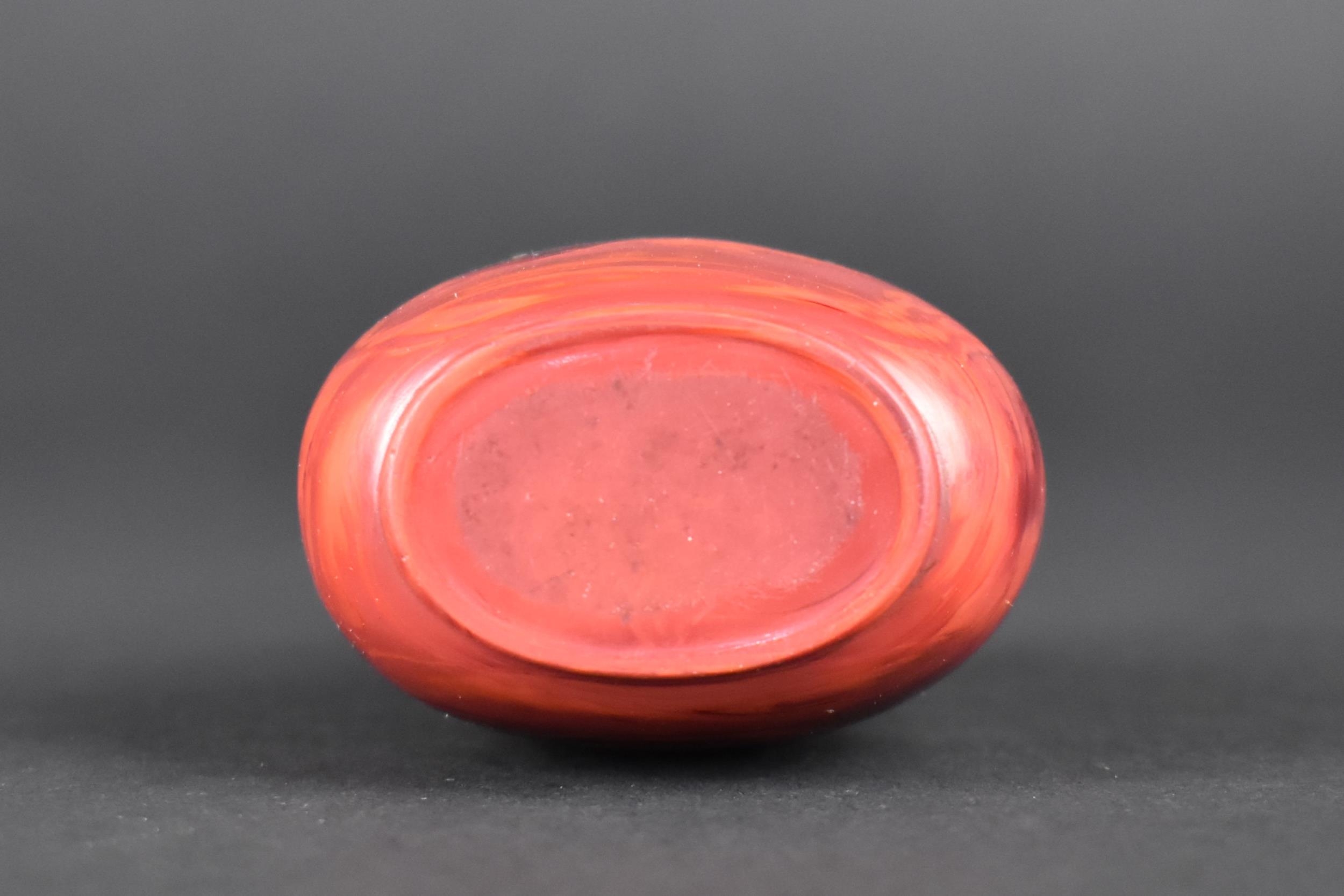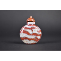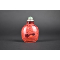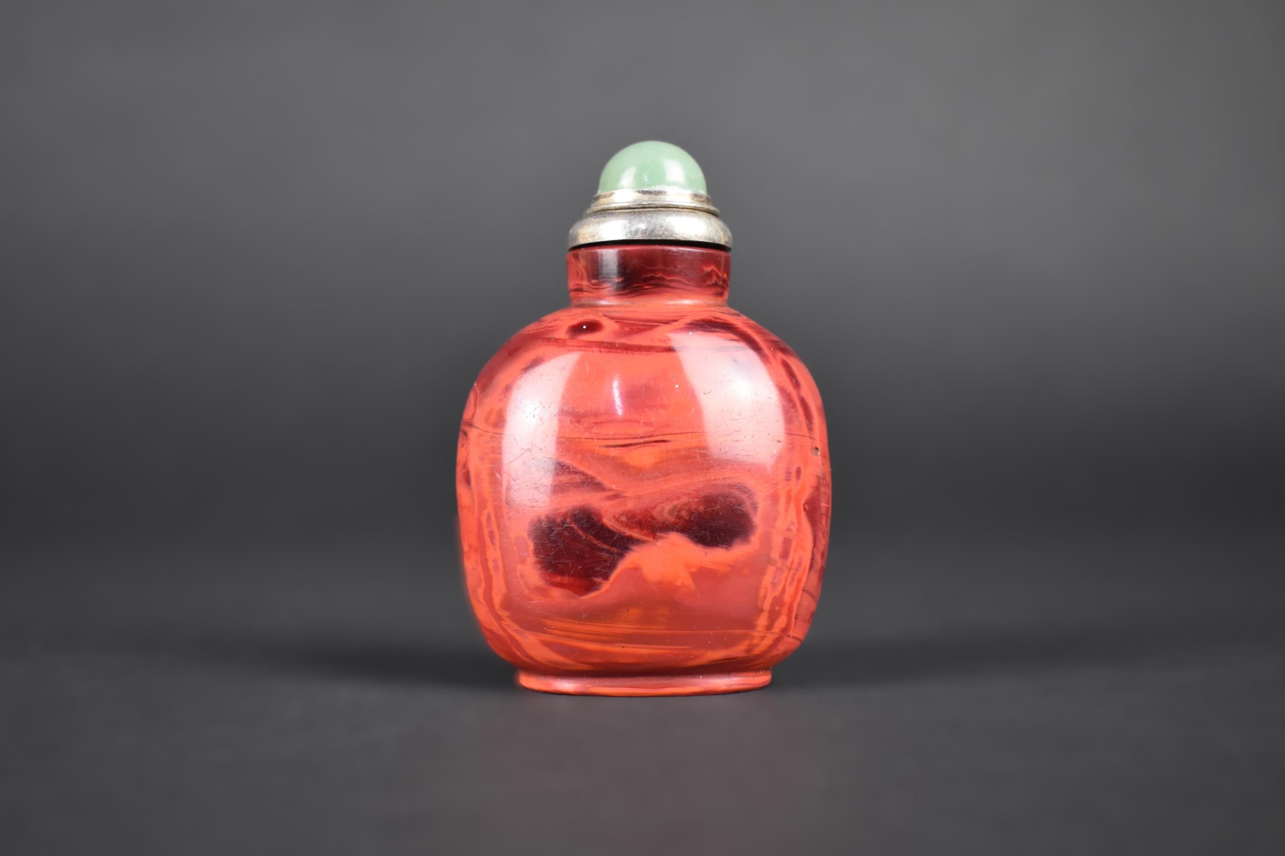 A Chinese Red Hardstone Snuff Bottle with White Metal and Jade Stopper, 7.5cm High