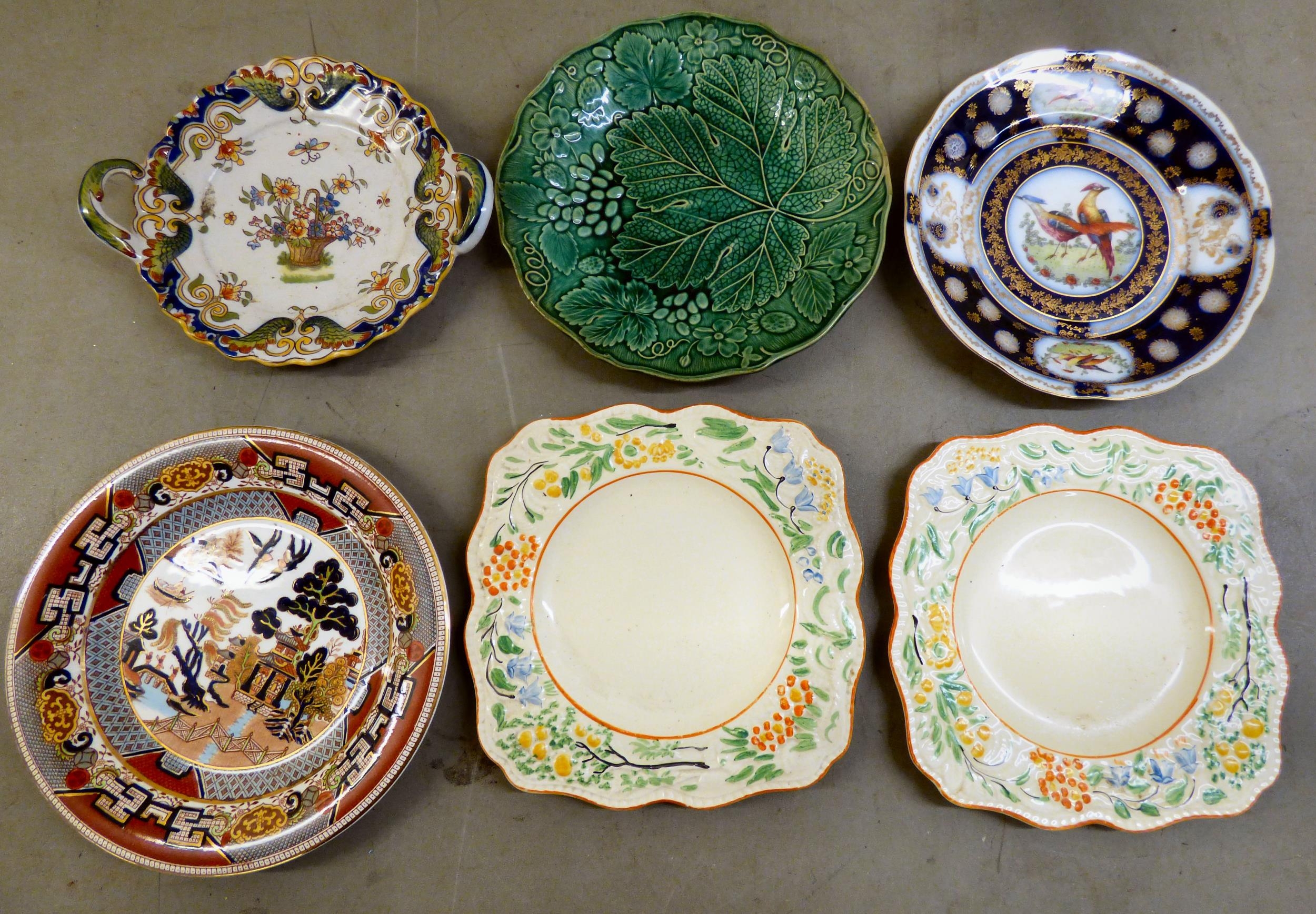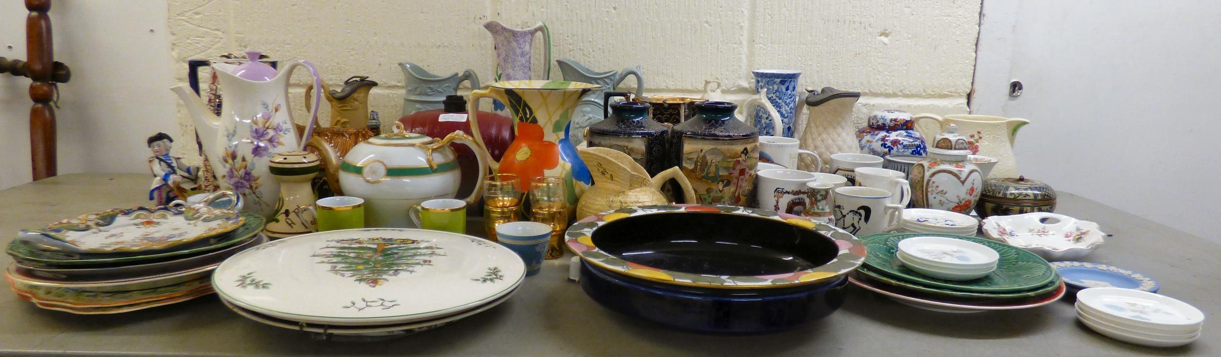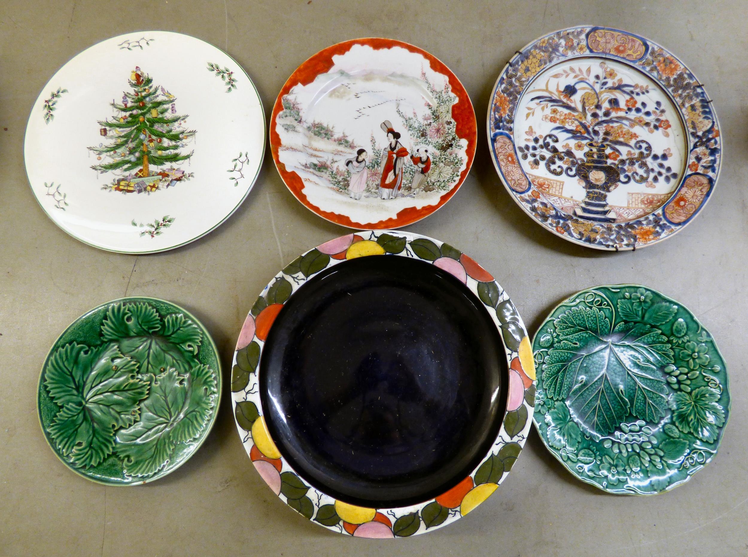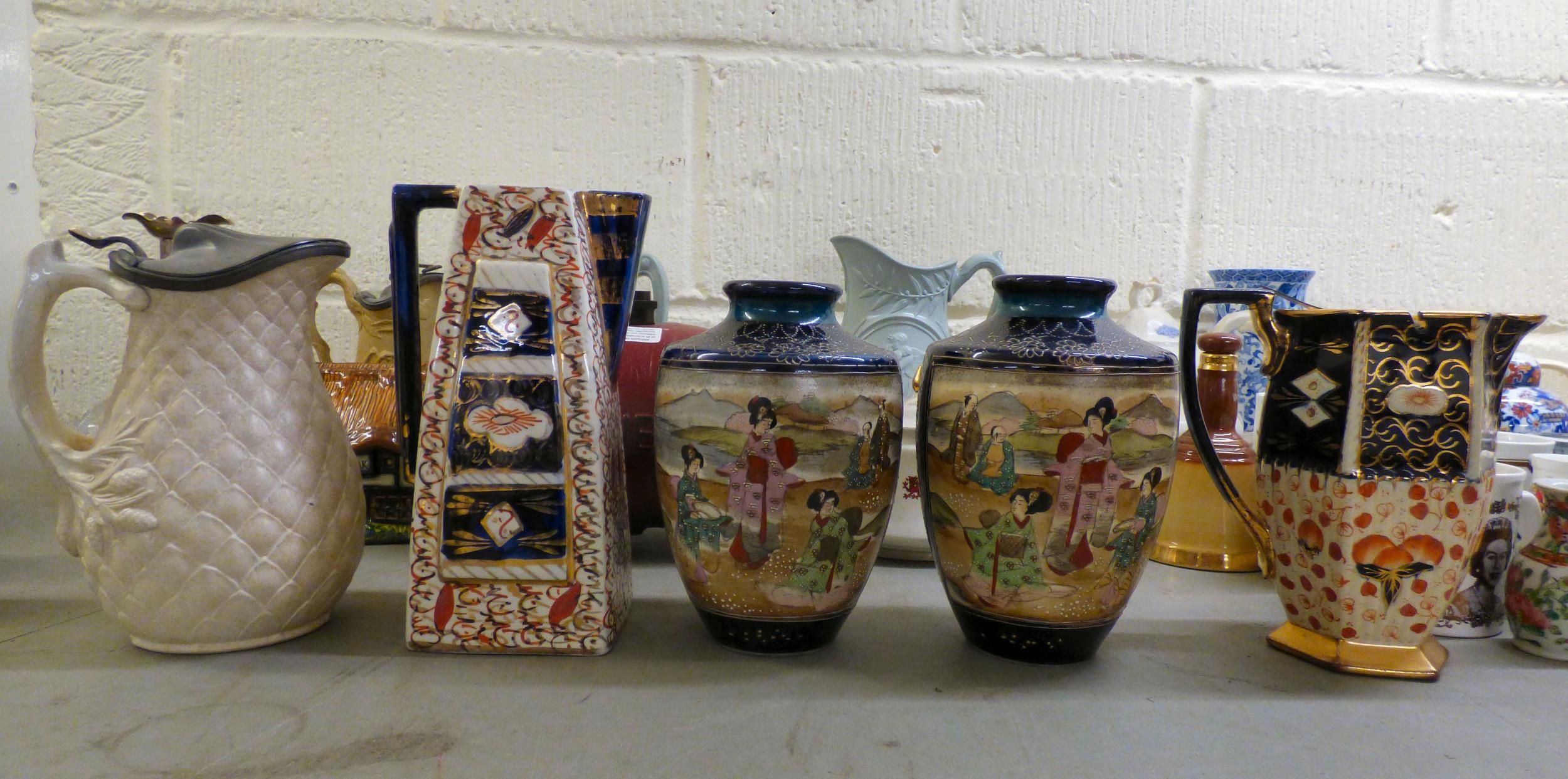 19th and 20thC decorative ceramics: to include a green cabbage leaf pattern china plate 7"dia; Oriental vases; plates and Victorian jugs