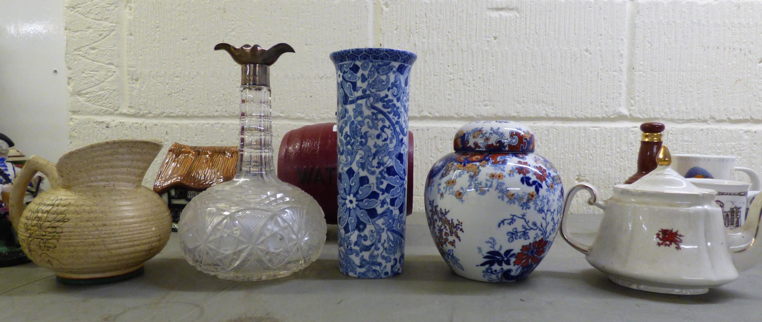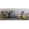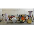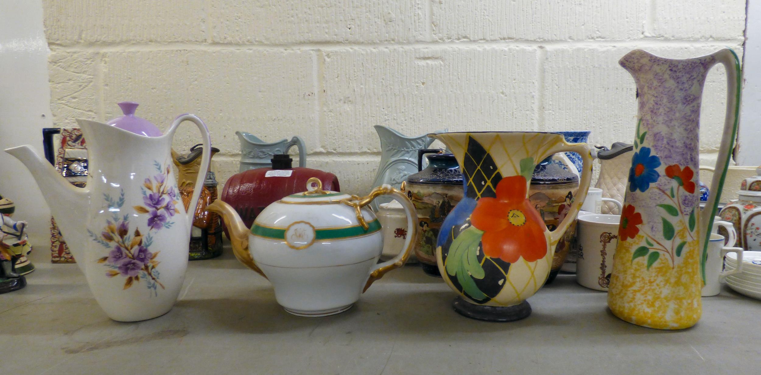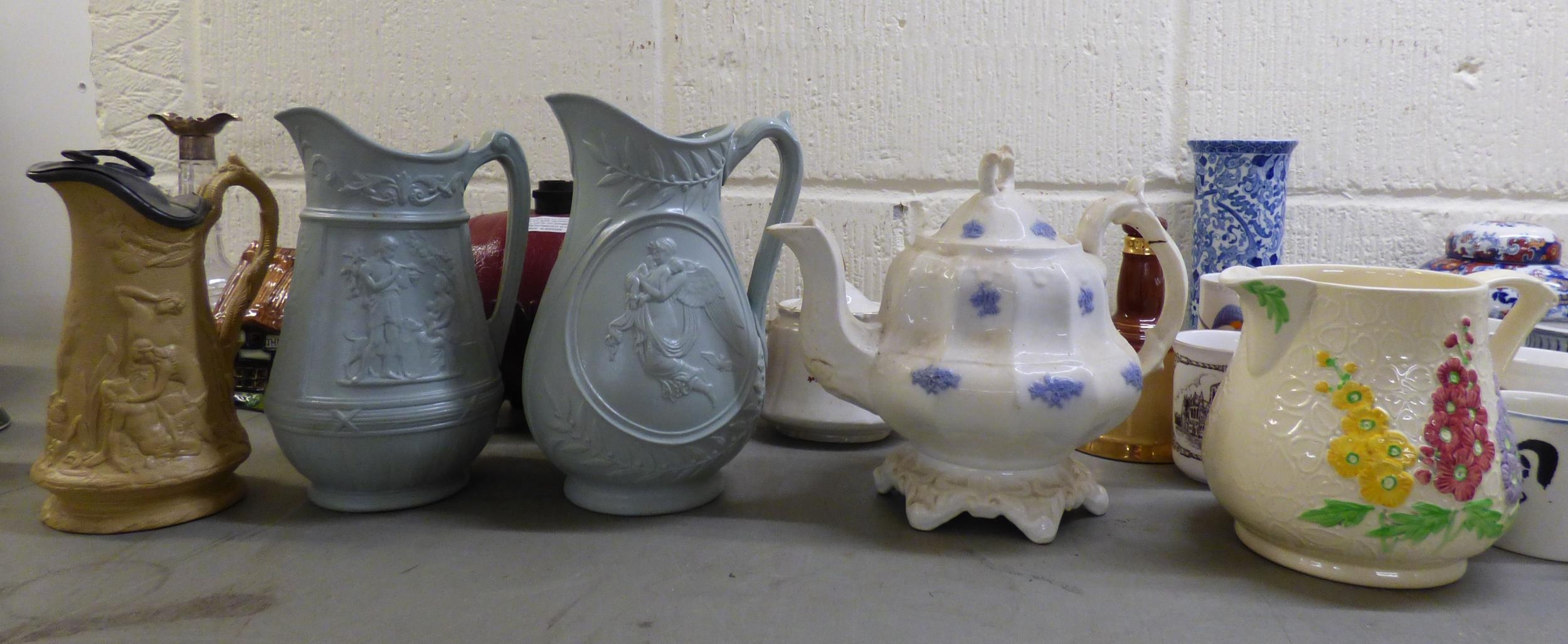 19th and 20thC decorative ceramics: to include a green cabbage leaf pattern china plate 7"dia; Oriental vases; plates and Victorian jugs