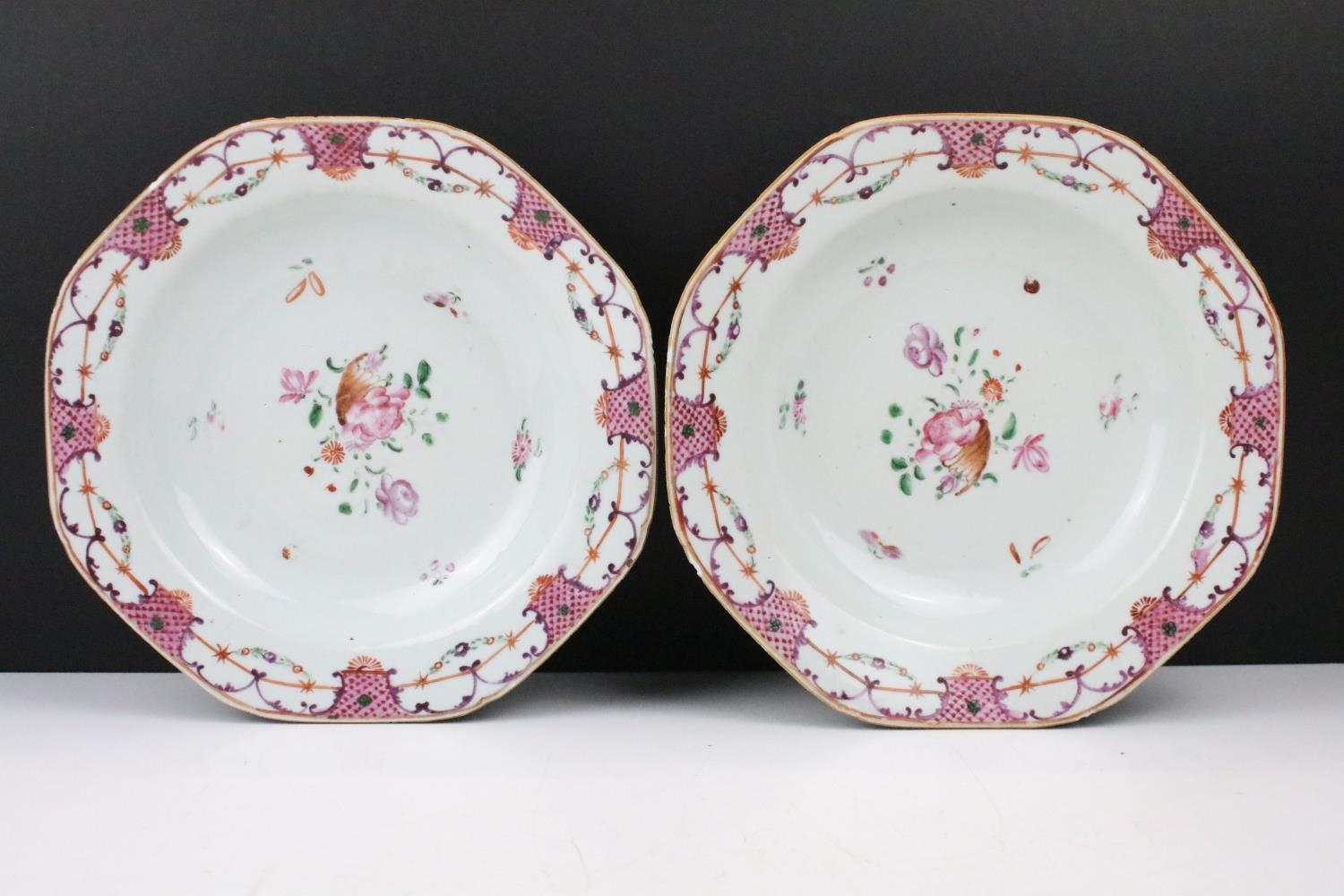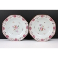 Pair of early 19th century porcelain plates in the manner of Samson, with hand painted floral detail, approx 22cm diameter