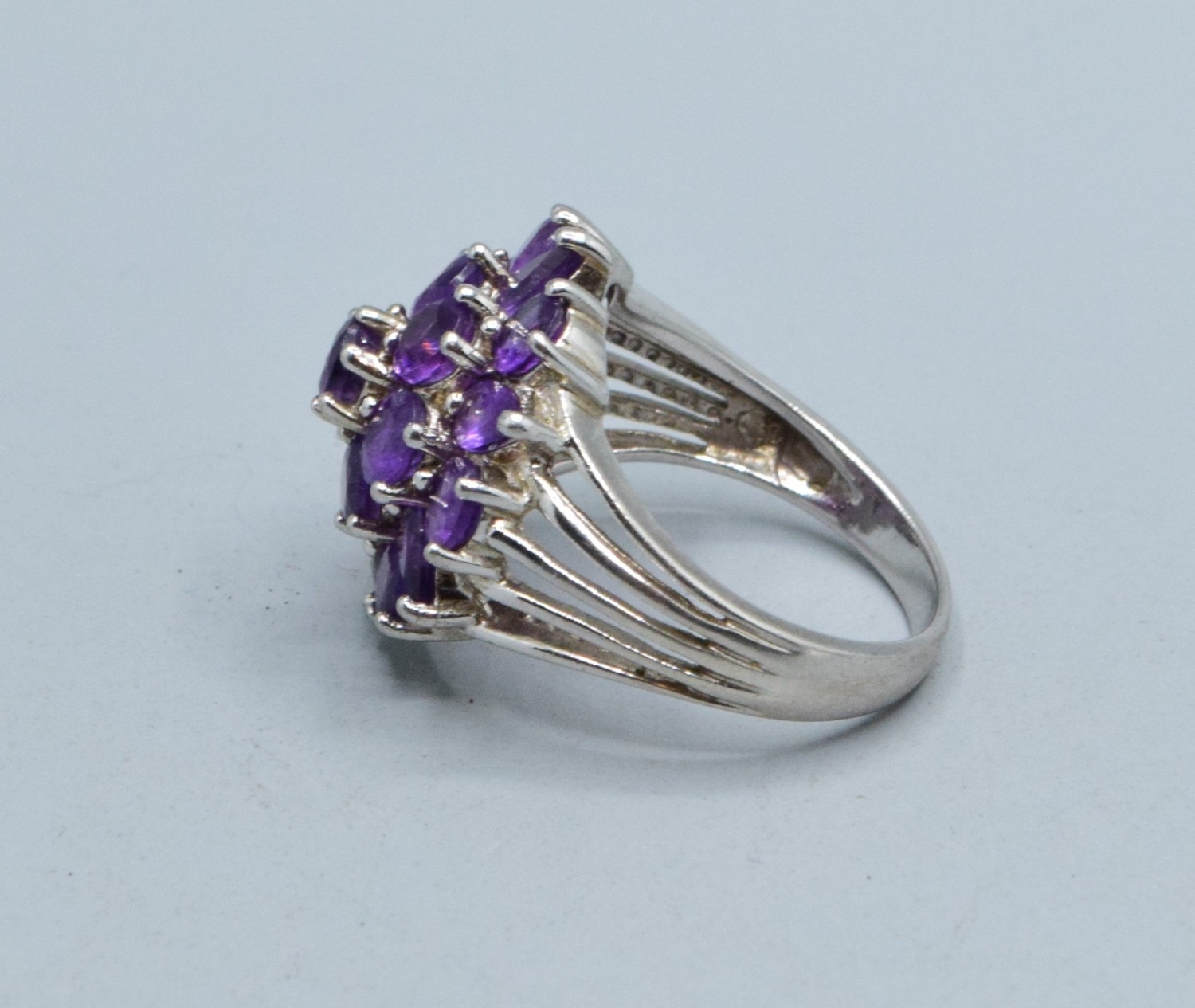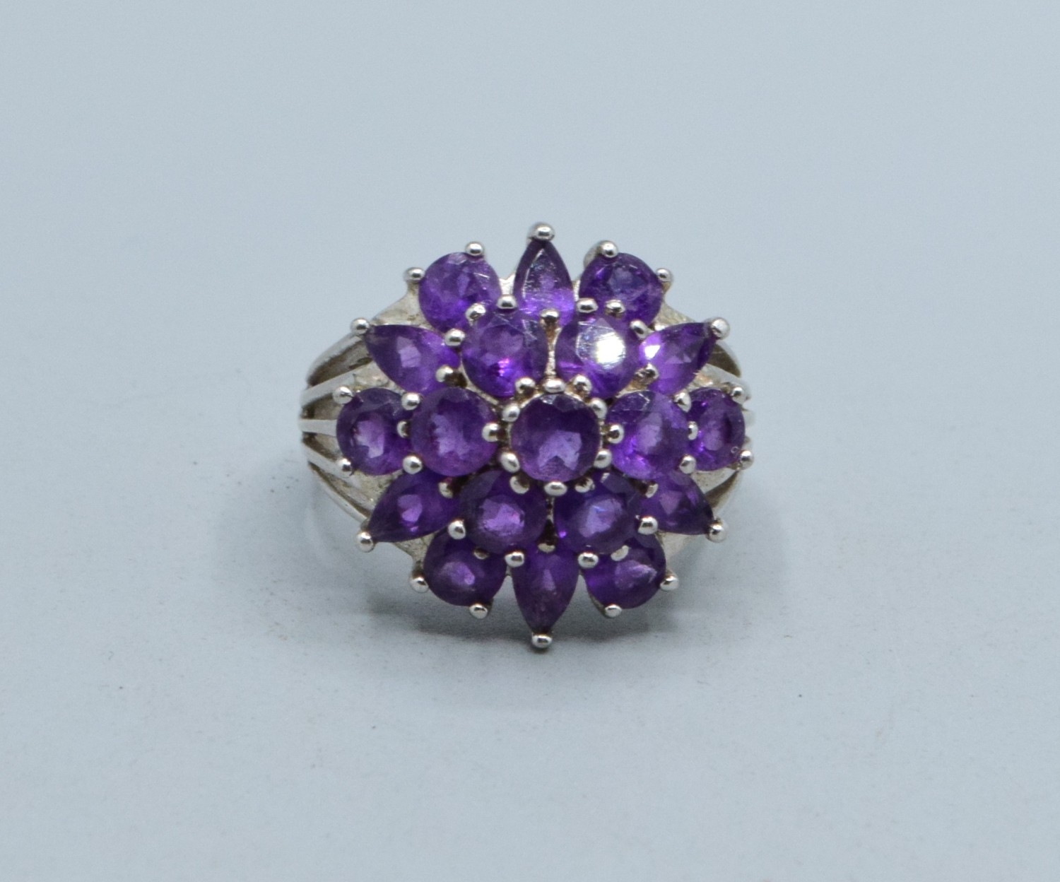 925 silver ladies Raspberry Amethyst design ring with the head measuring 18mm diameter size P