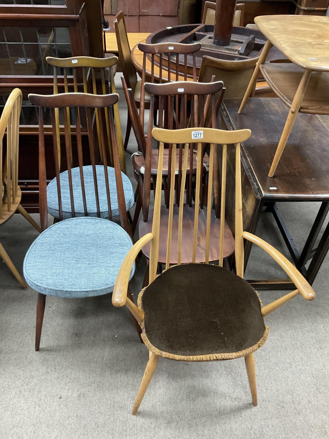 6 Mixed Ercole Windsor Goldsmith design dining chairs including 1 Blonde example.
