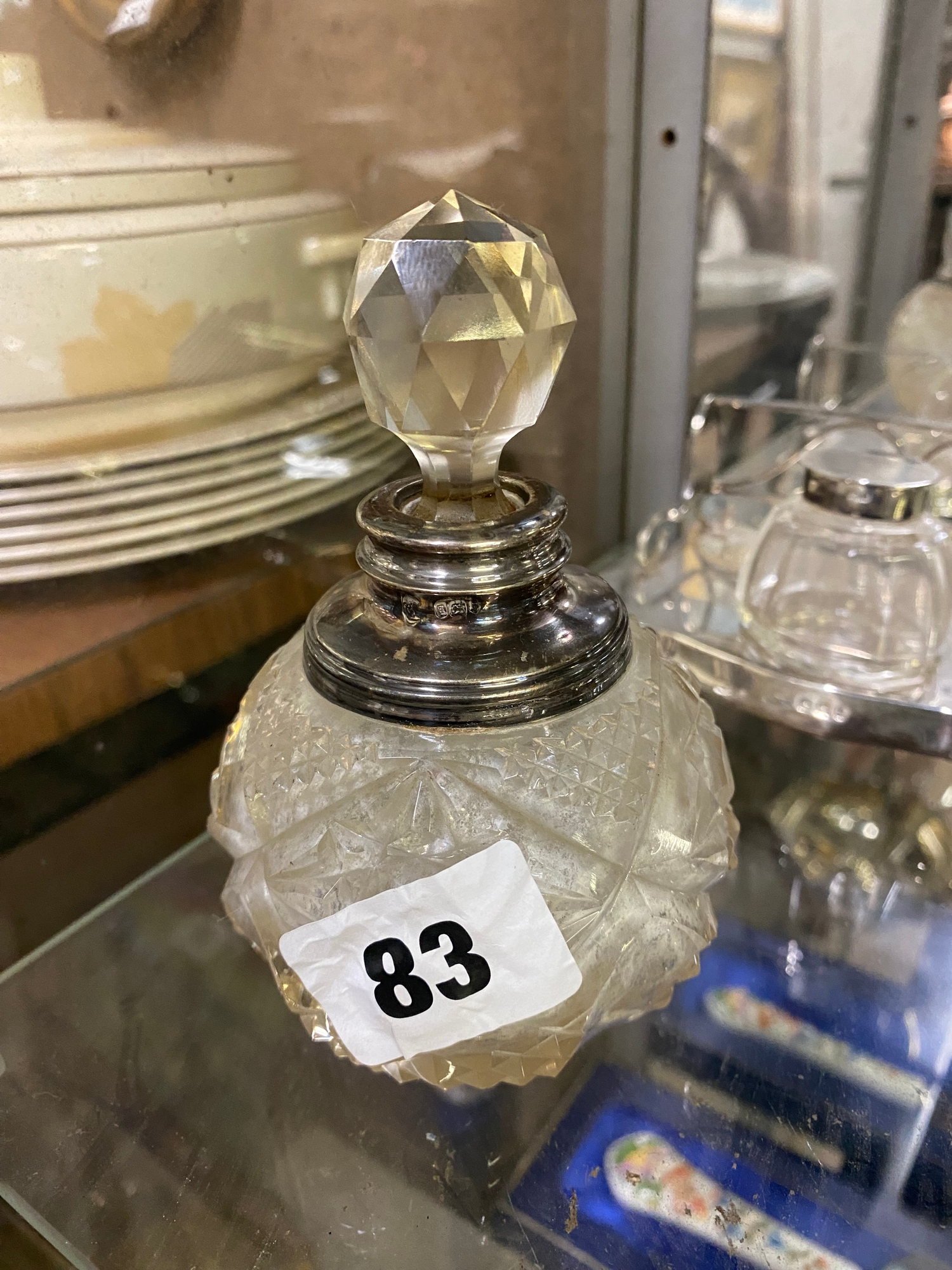 Silver rimmed glass scent bottle