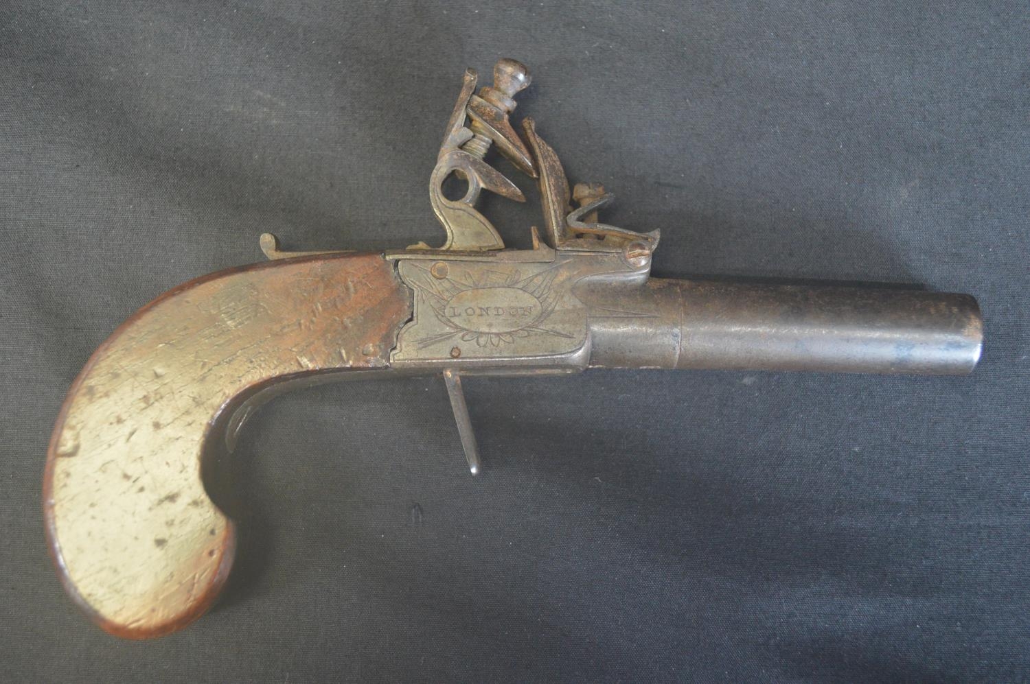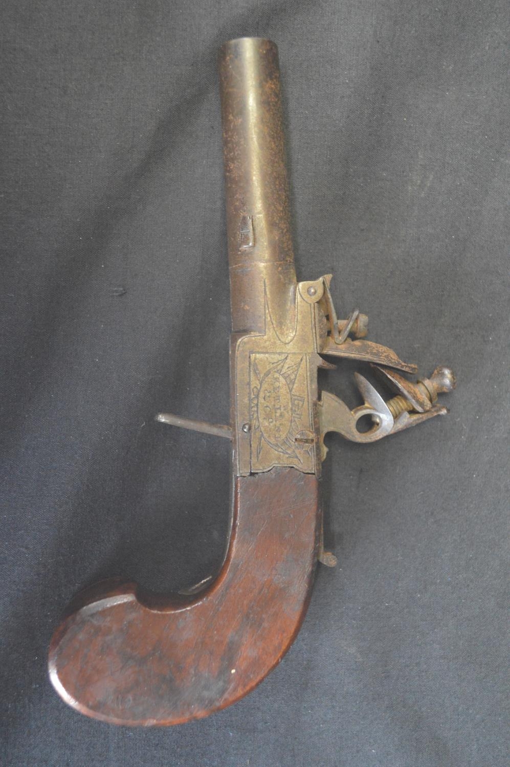 W Ketland & Co. flint box lock pistol - 17cm long