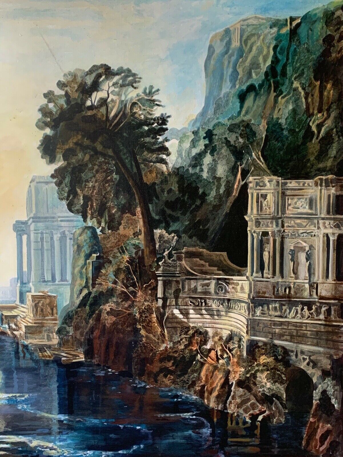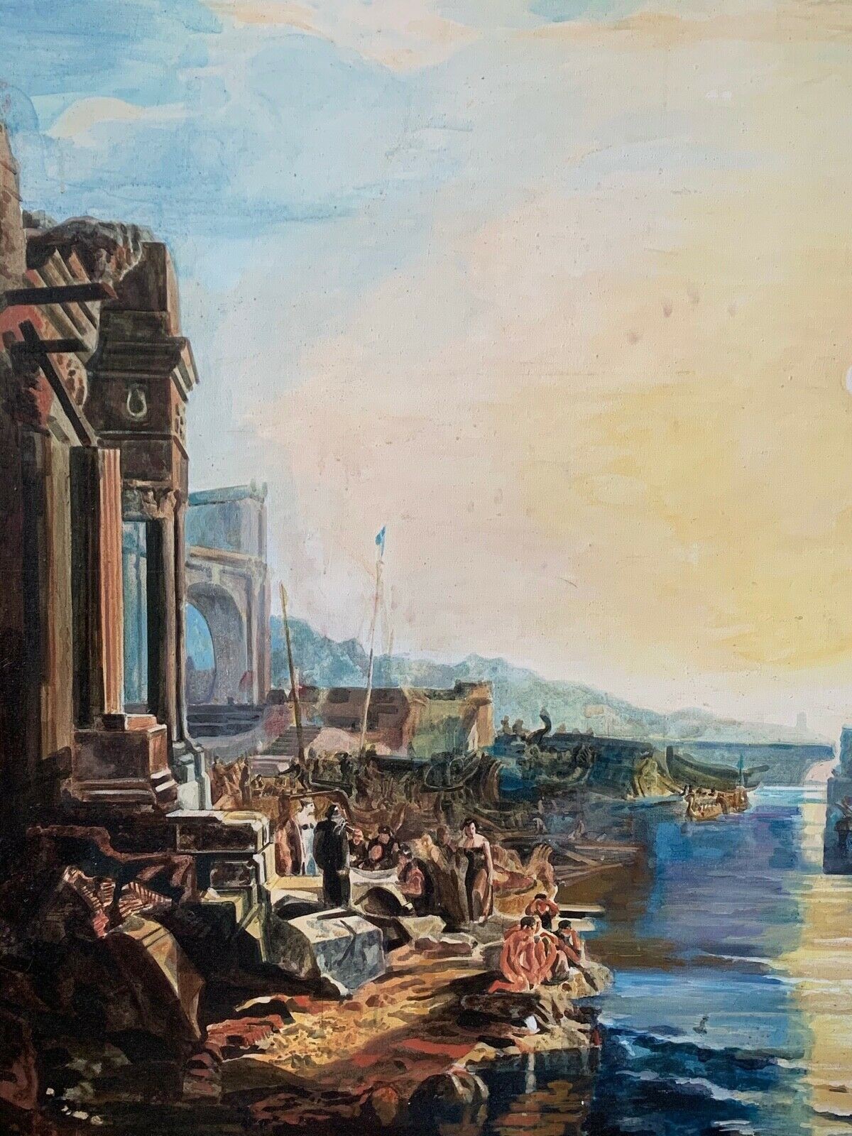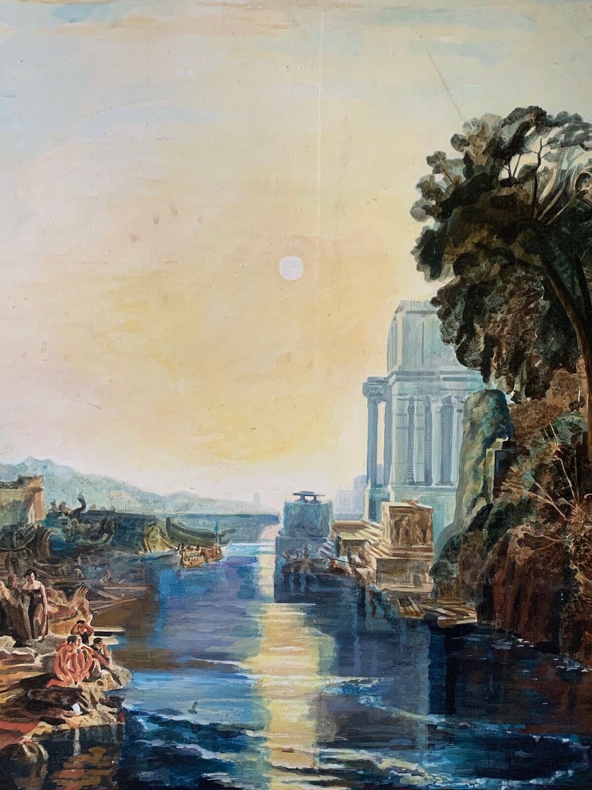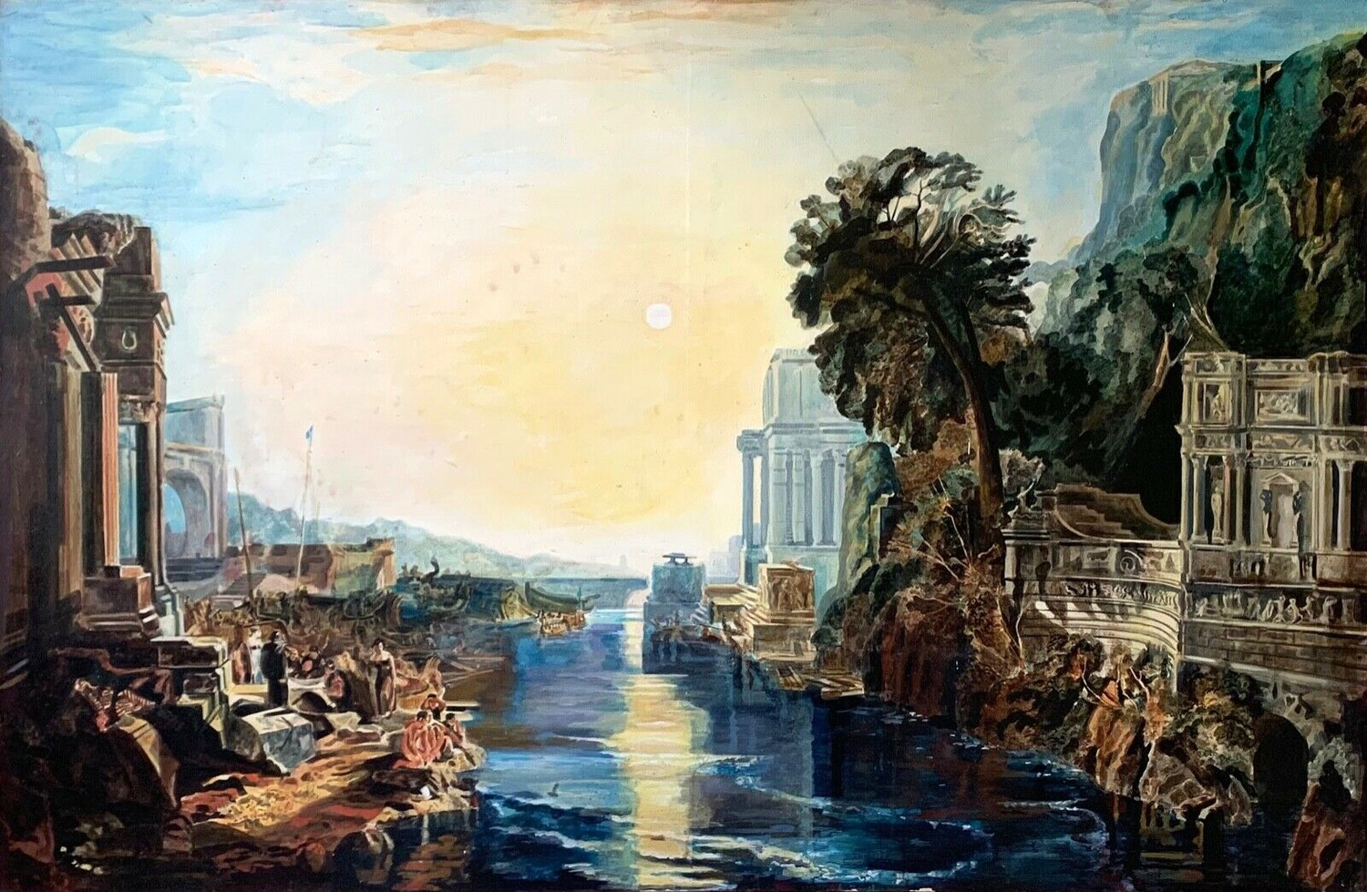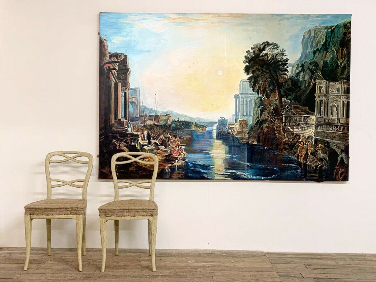 A LARGE LATE 20TH CENTURY CLASSICAL LANDSCAPE OIL ON CANVAS ‘DIDO BUILDING CARTHAGE’ AFTER J. M. W. TURNER.