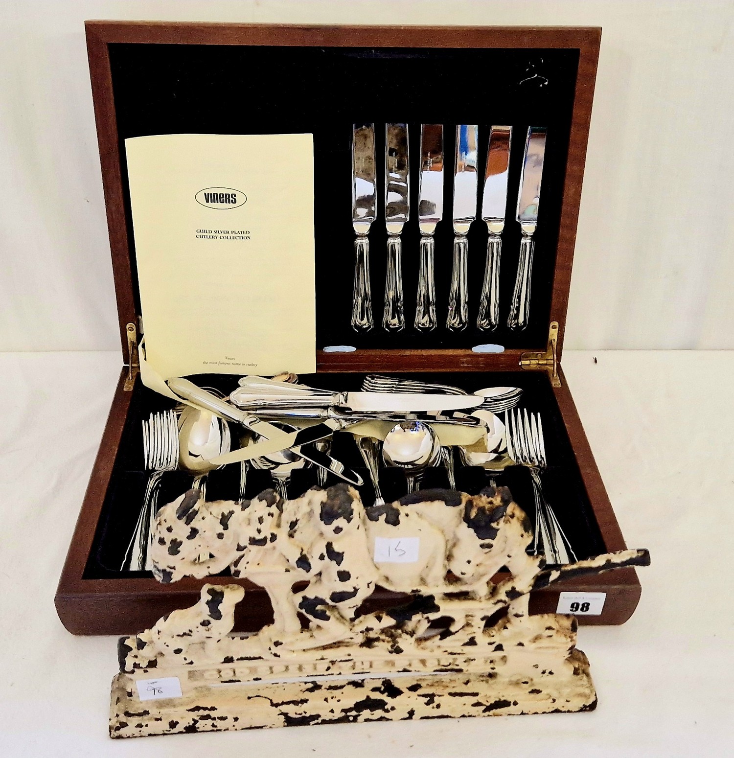 Godspeed the Plough cast door stop and canteen of Viners EPNS cutlery