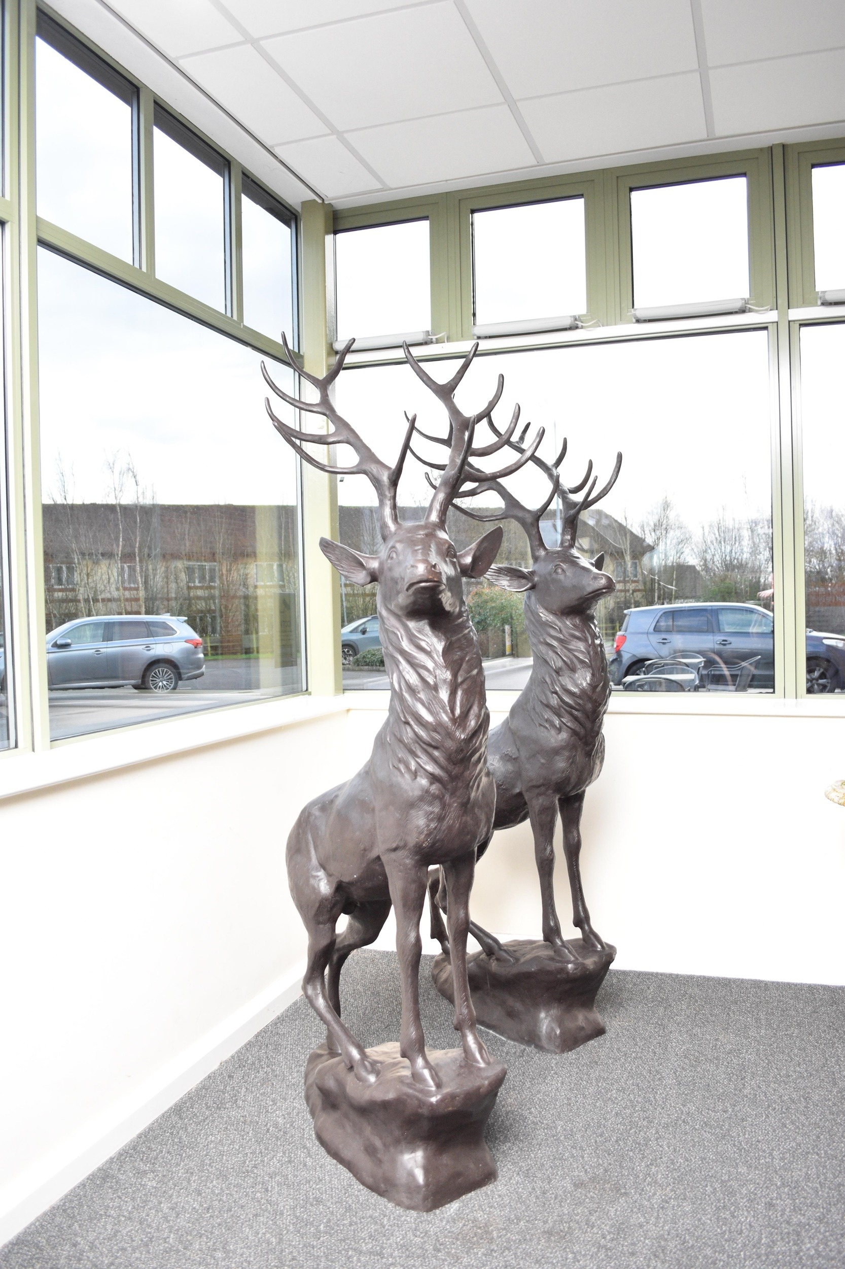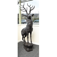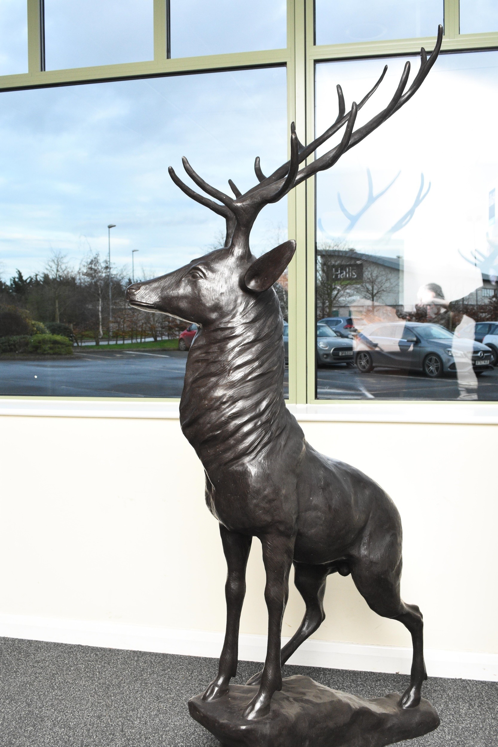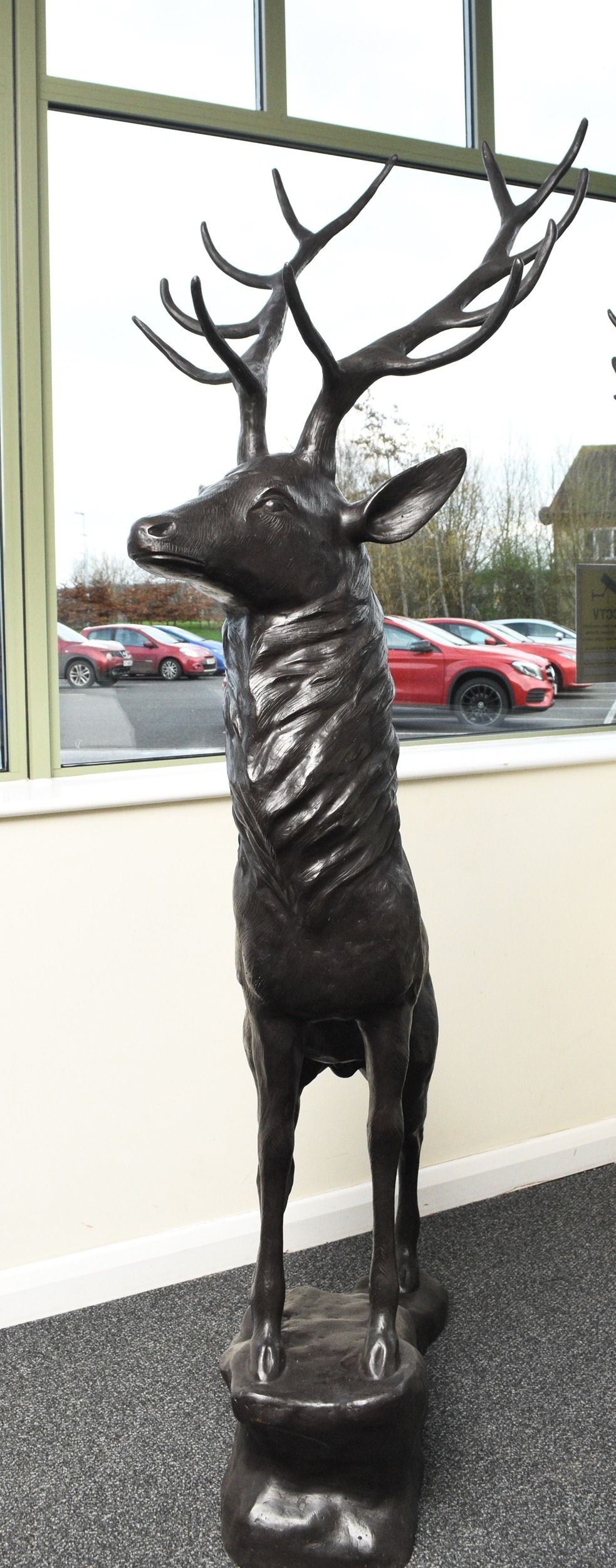 A bronze garden statue of a stag Modern, modelled standing four square on a rocky outcrop. 204cm high Condition:Good.
