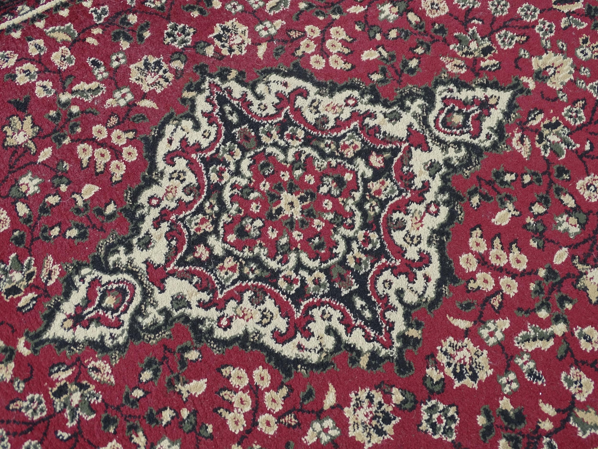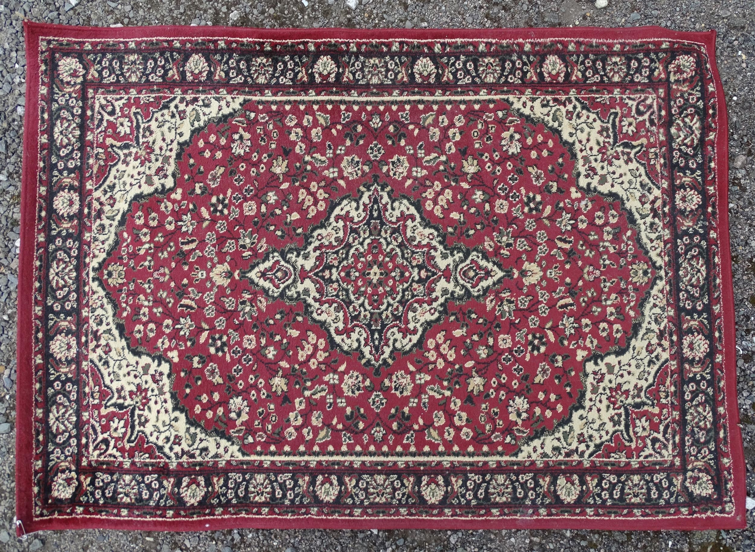 Carpet / Rug : A red ground rug with floral and foliate detail. Approx 66" x 47 1/2"