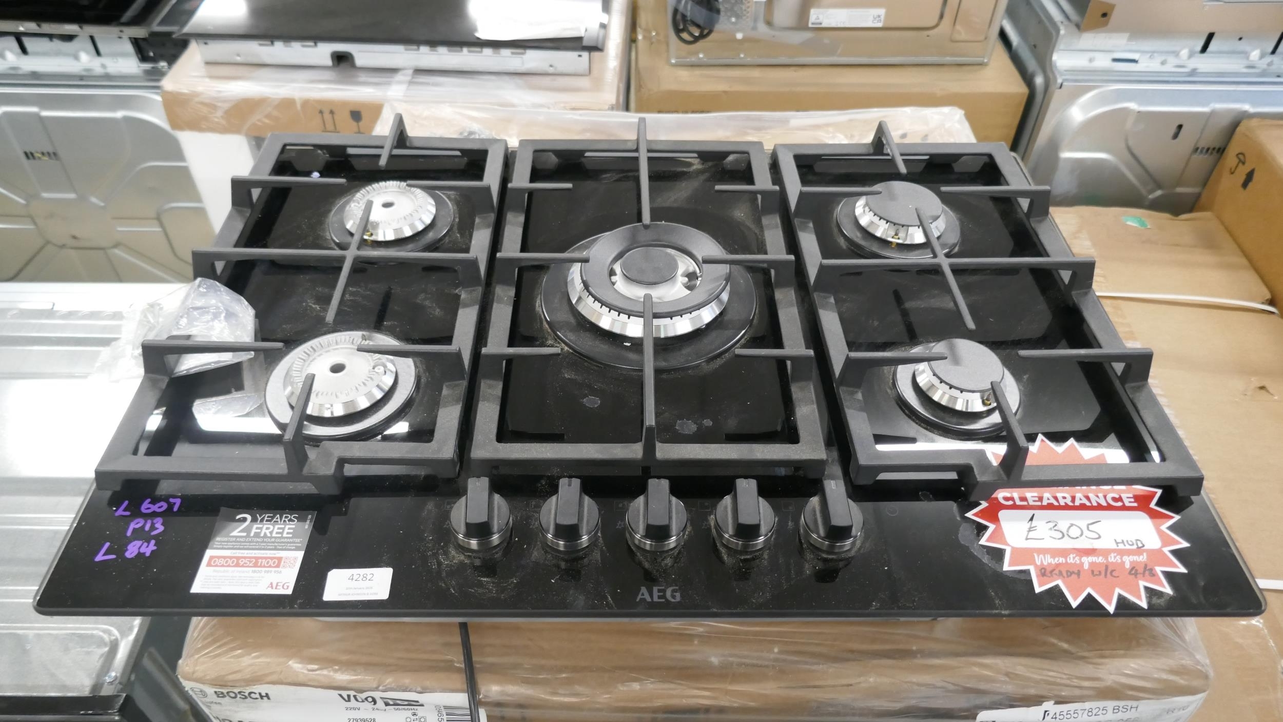 An AEG 5 burner gas on glass hob (607-84)(missing Burner plates) *This lot is subject to VAT