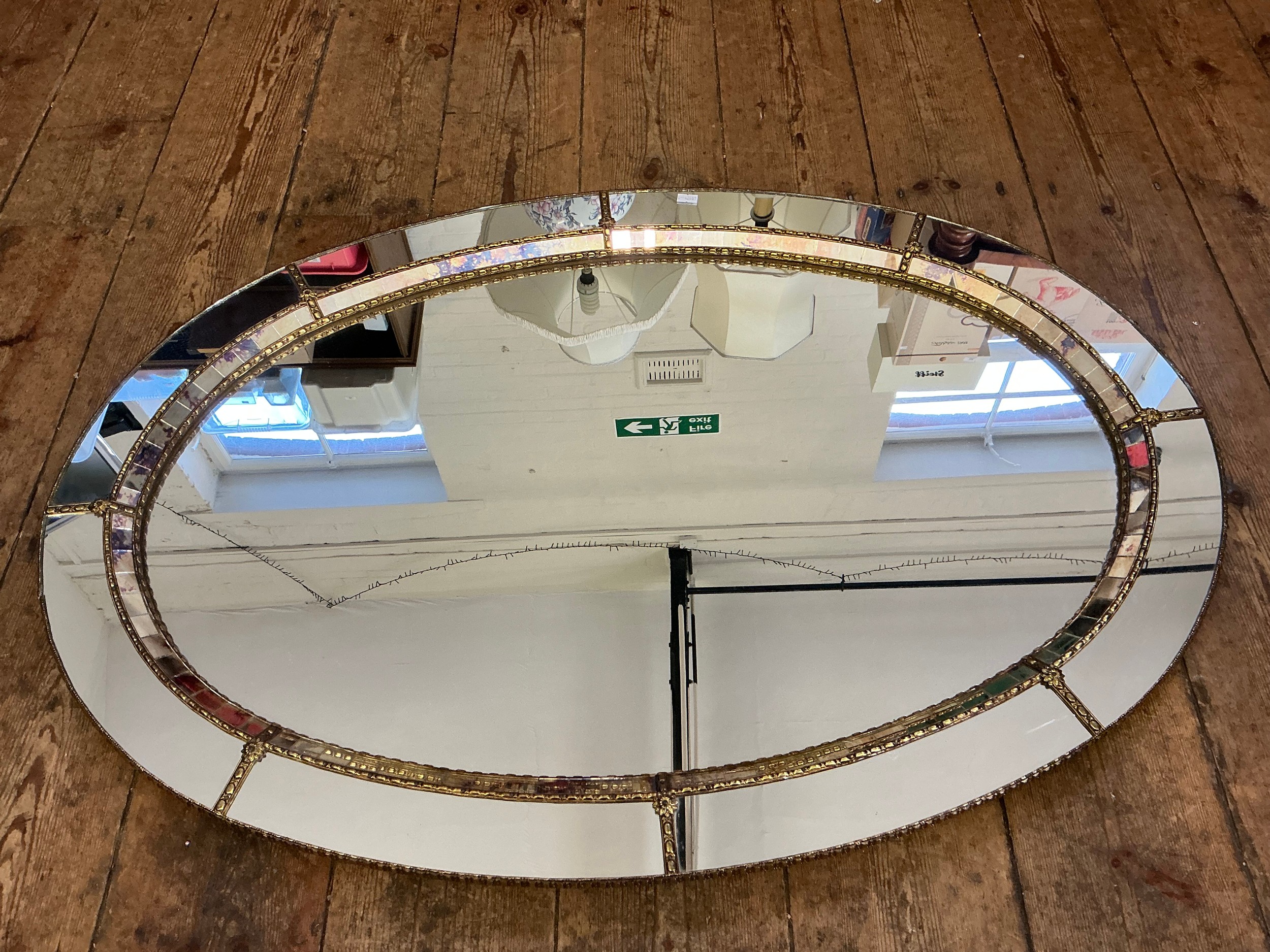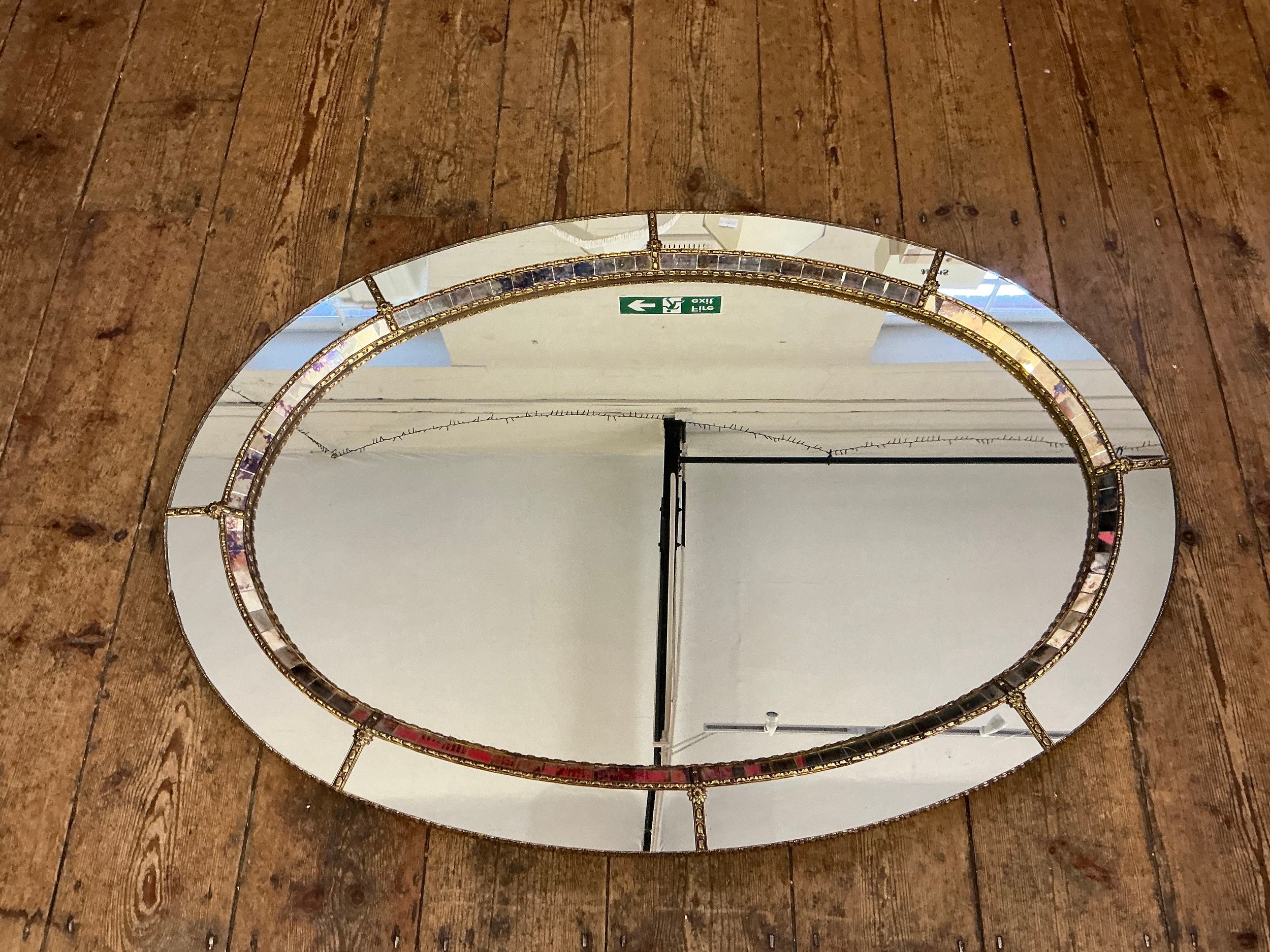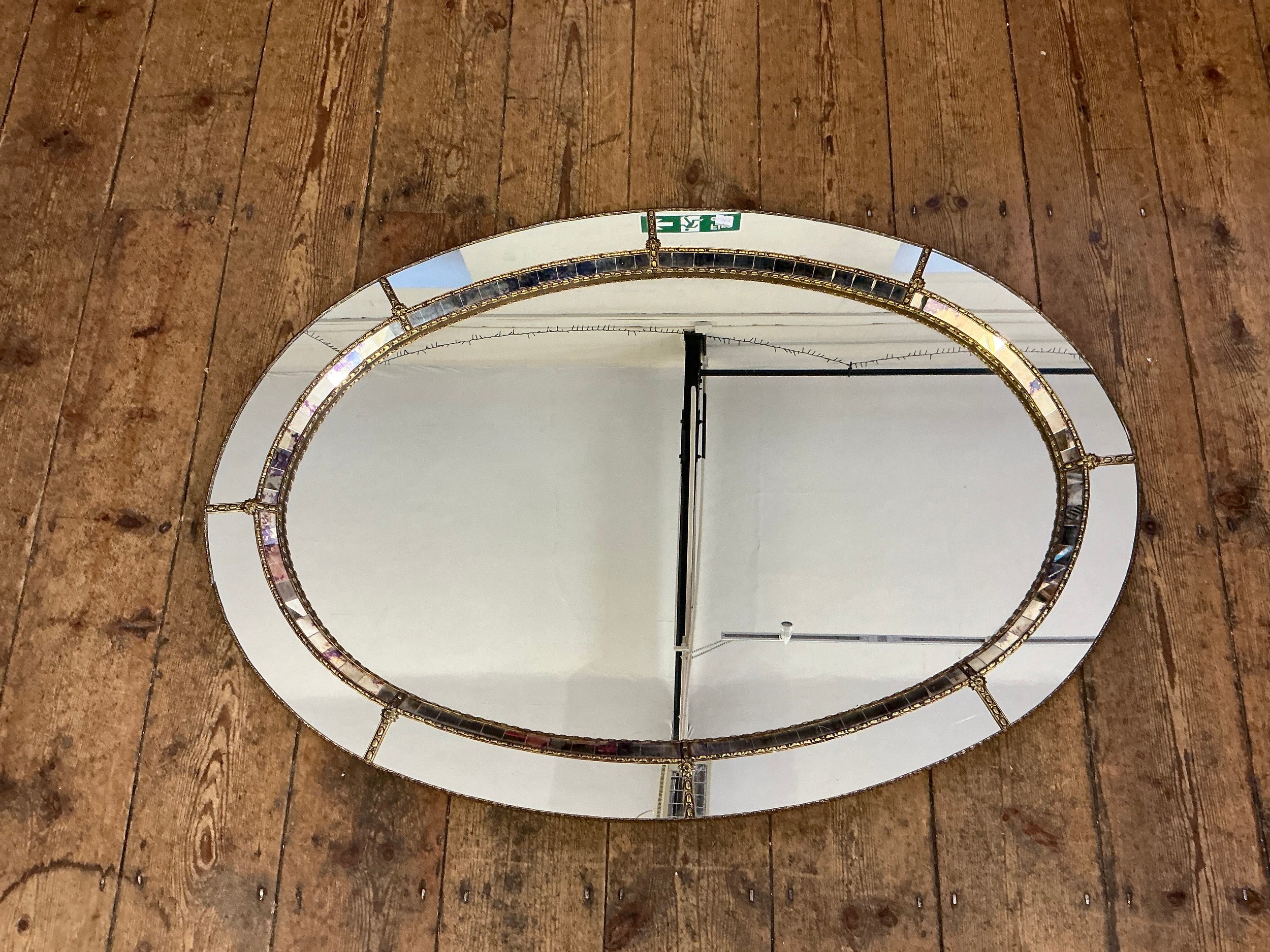 A Metal Effect Oval Wall Mirror with inset Central Looking Glass. Measuring: 103cms.