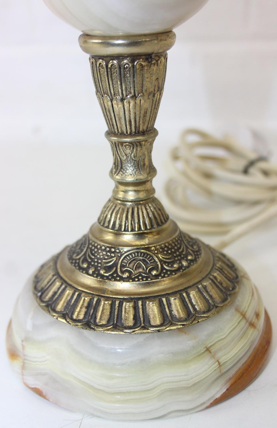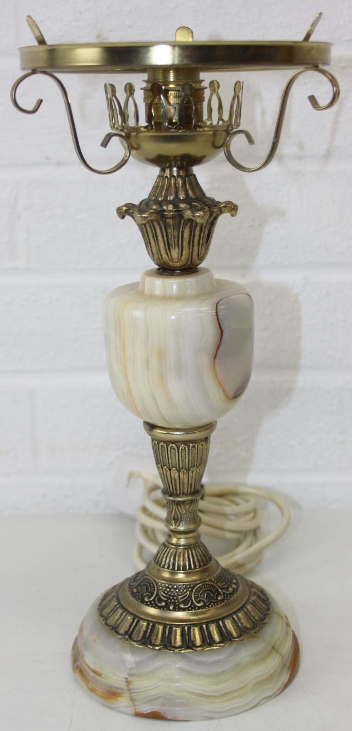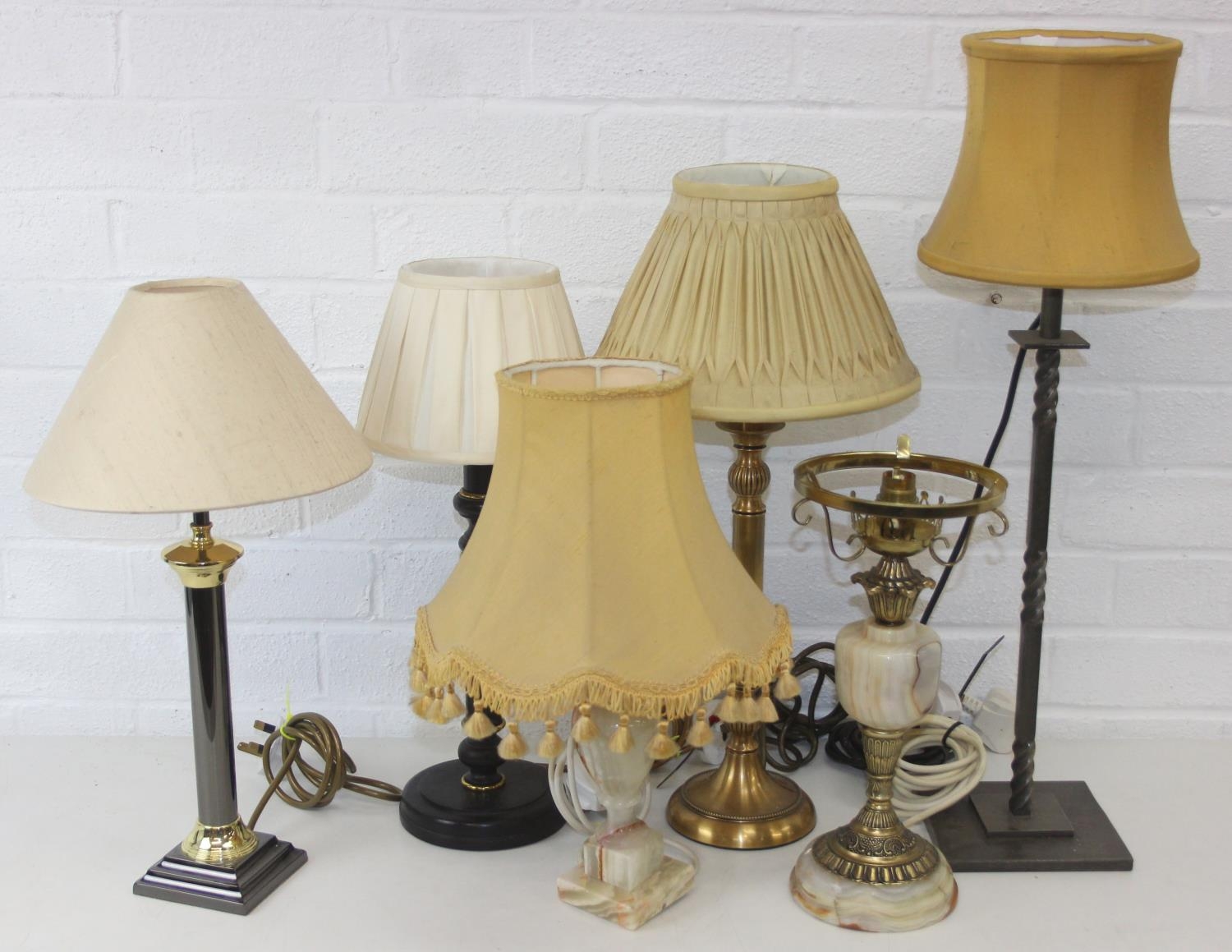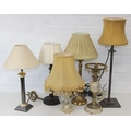 Six assorted tables lamps of various forms, bases to inc wooden, metal and alabaster, five with shades, the largest 64cm [6]