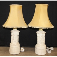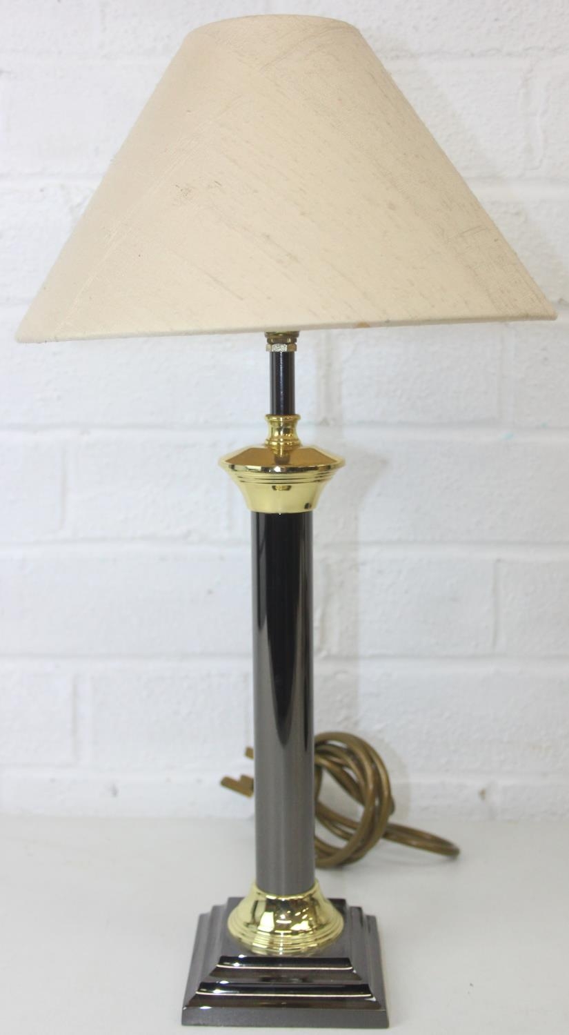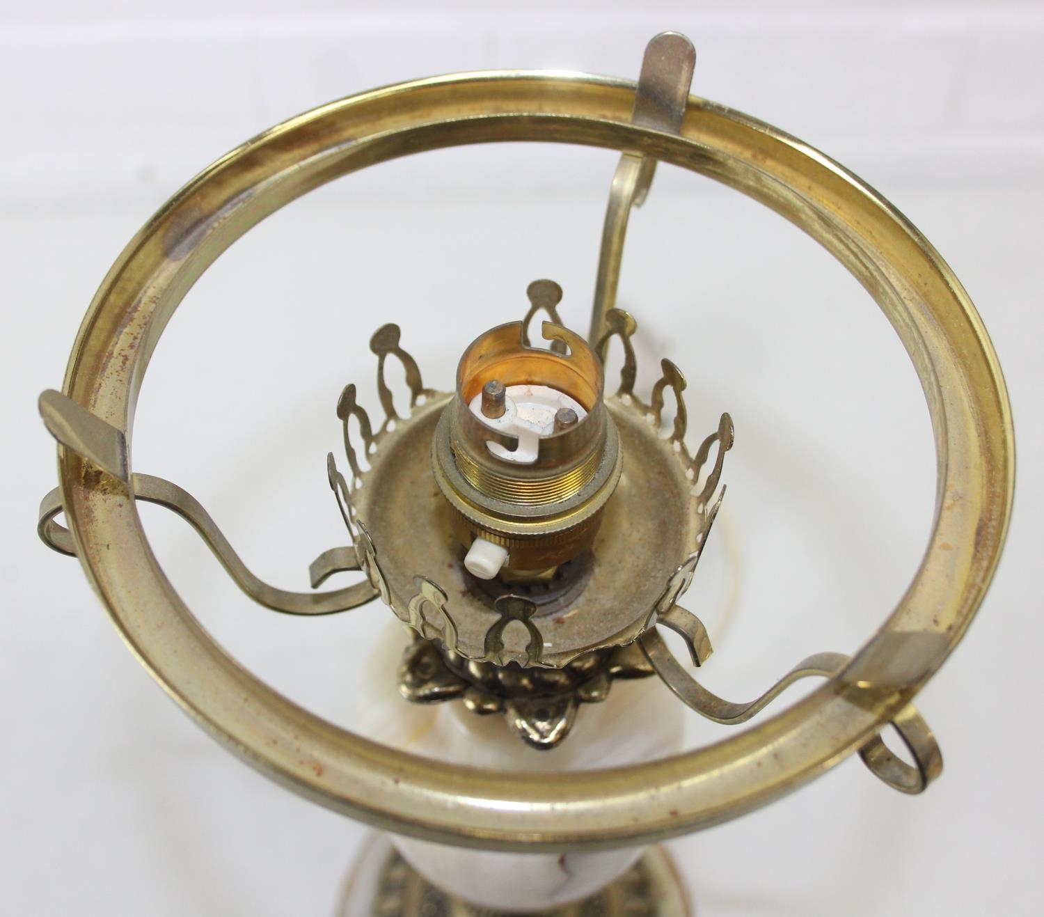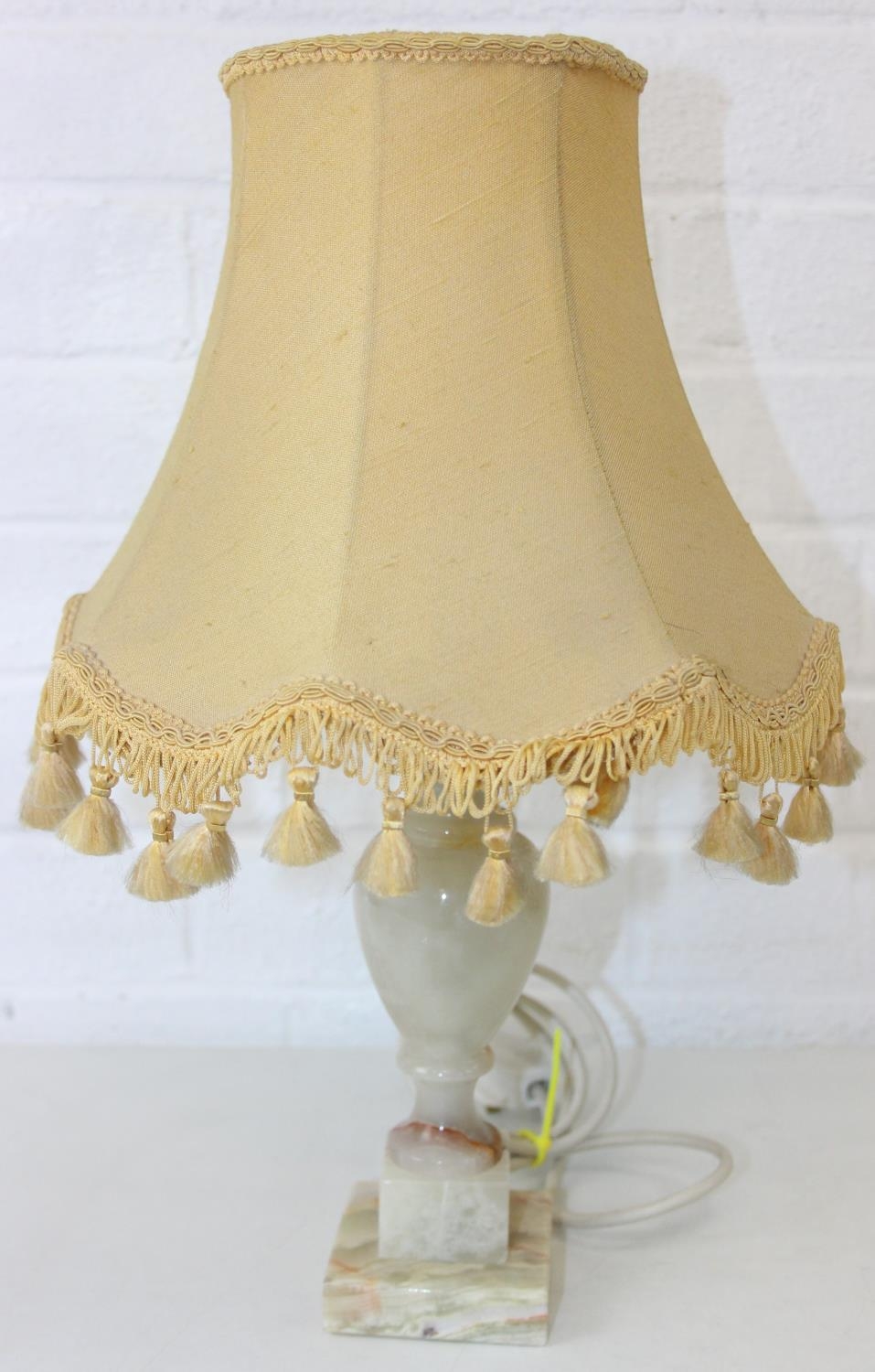 Six assorted tables lamps of various forms, bases to inc wooden, metal and alabaster, five with shades, the largest 64cm [6]