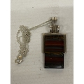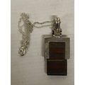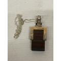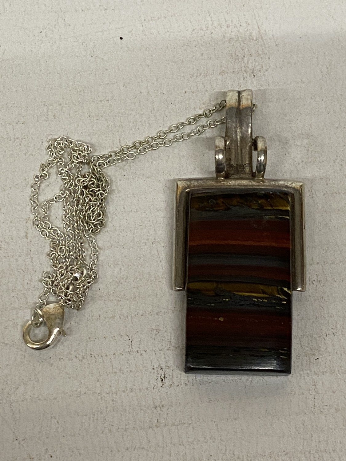 A SILVER NECKLACE WITH OBLONG STONE PENDANT IN A PRESENTATION BOX