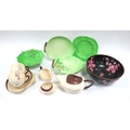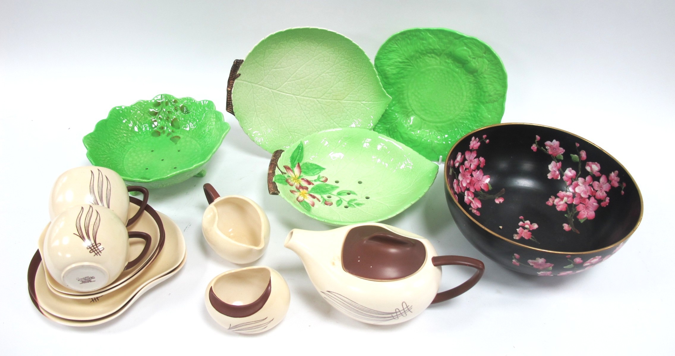 A Carlton Ware 'Australian' Tea For Two Set, in cream and brown, a Carlton ware leaf moulded salad dish and stand, another by Crown Devon and a W & R Carlton ware bowl decorated with blossom:- One Tray.