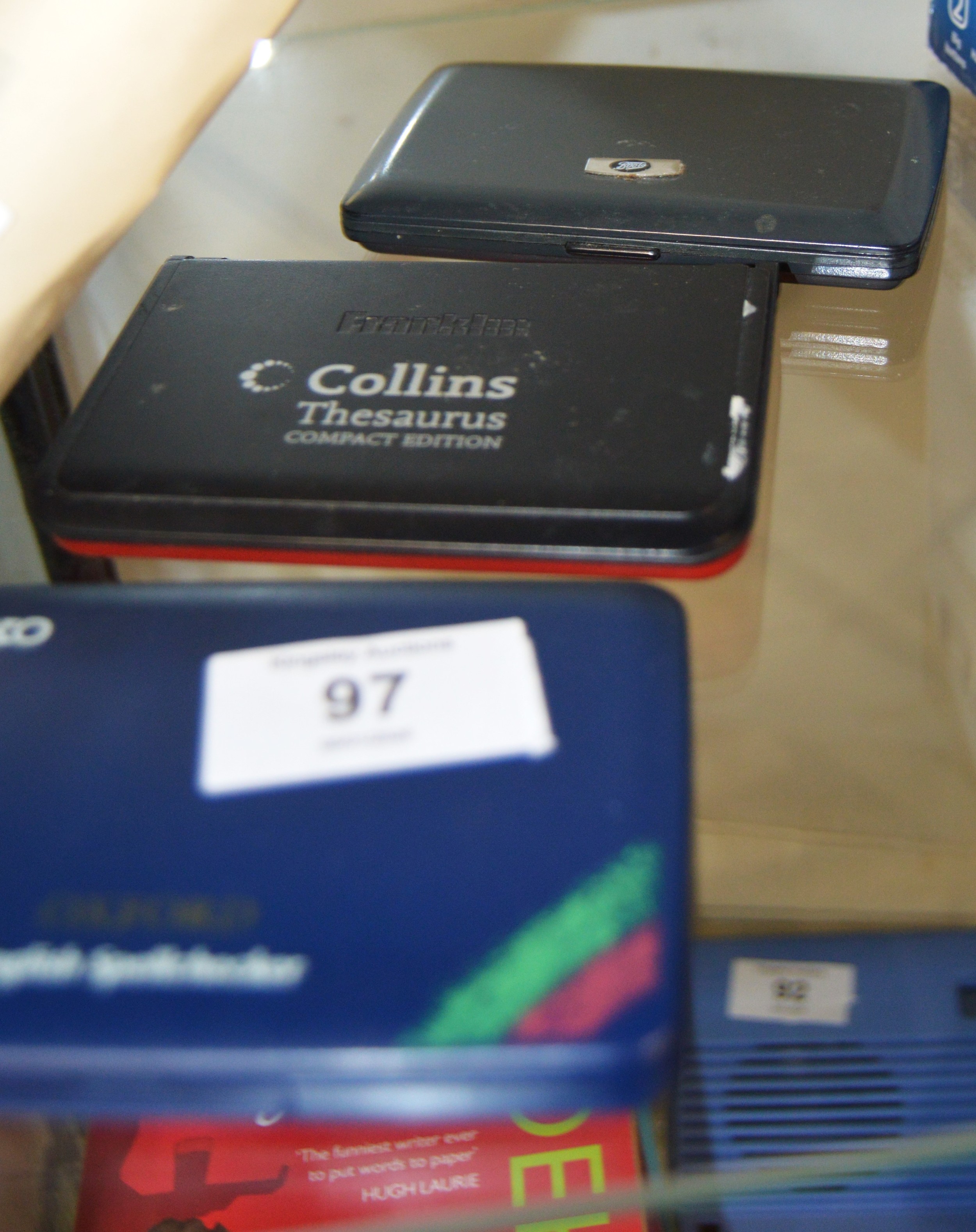 Three Pocket Compact Electronic Devices - Collins Thesaurus, Oxford English Spell-Checker by Seiko, and a Boots Crossword Solver