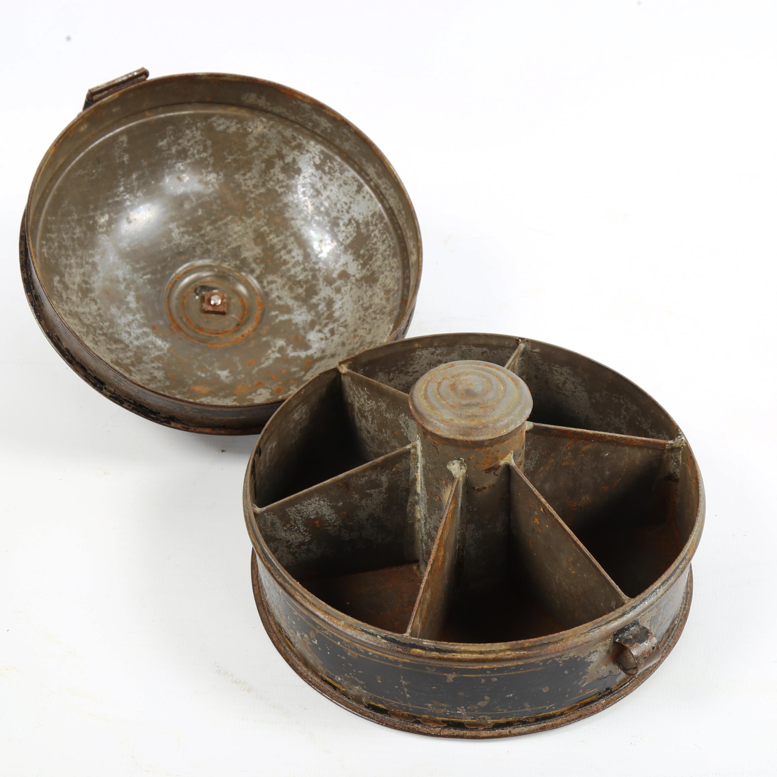 A Victorian dome-top spice box, with brass handle and integral grater, diameter 16cm