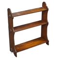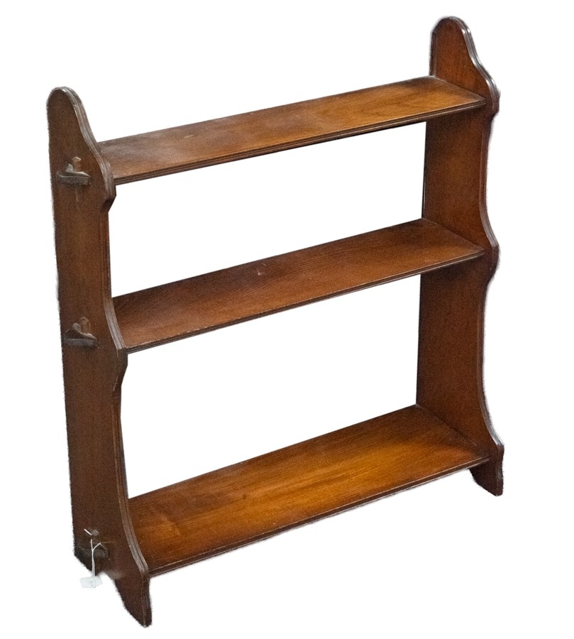 WALNUT THREE TIER OPEN WALL SHELVES, with graduated shelves and pegged joints, 28 ½” (72.3cm) high, 25” x 8 ¼” (63.5cm x 21cm)
